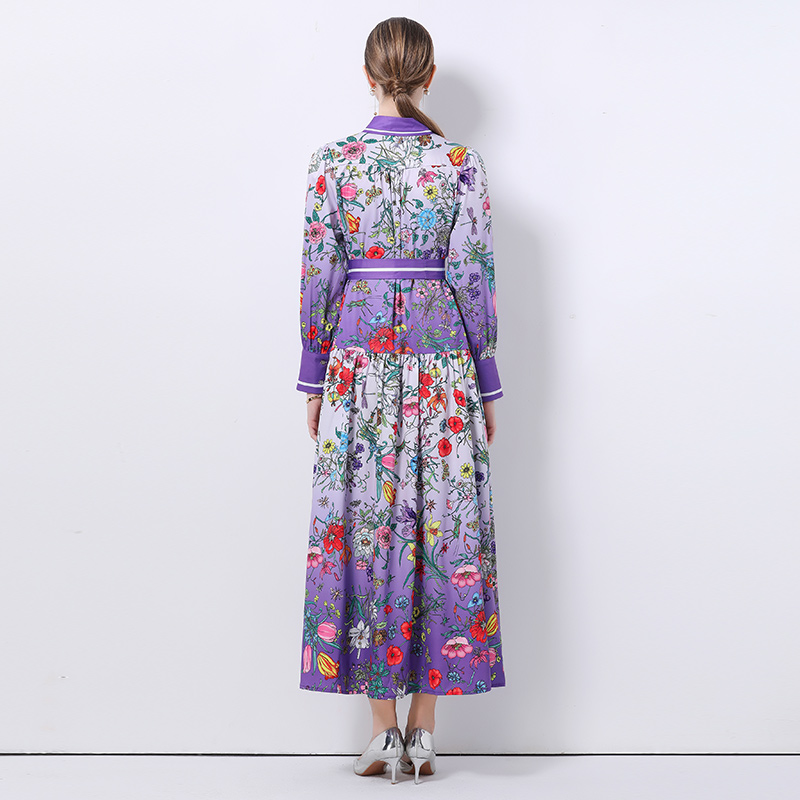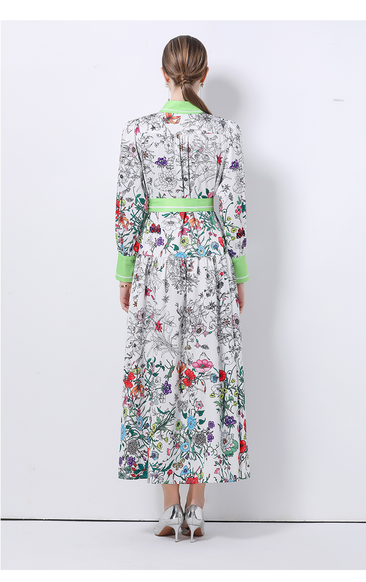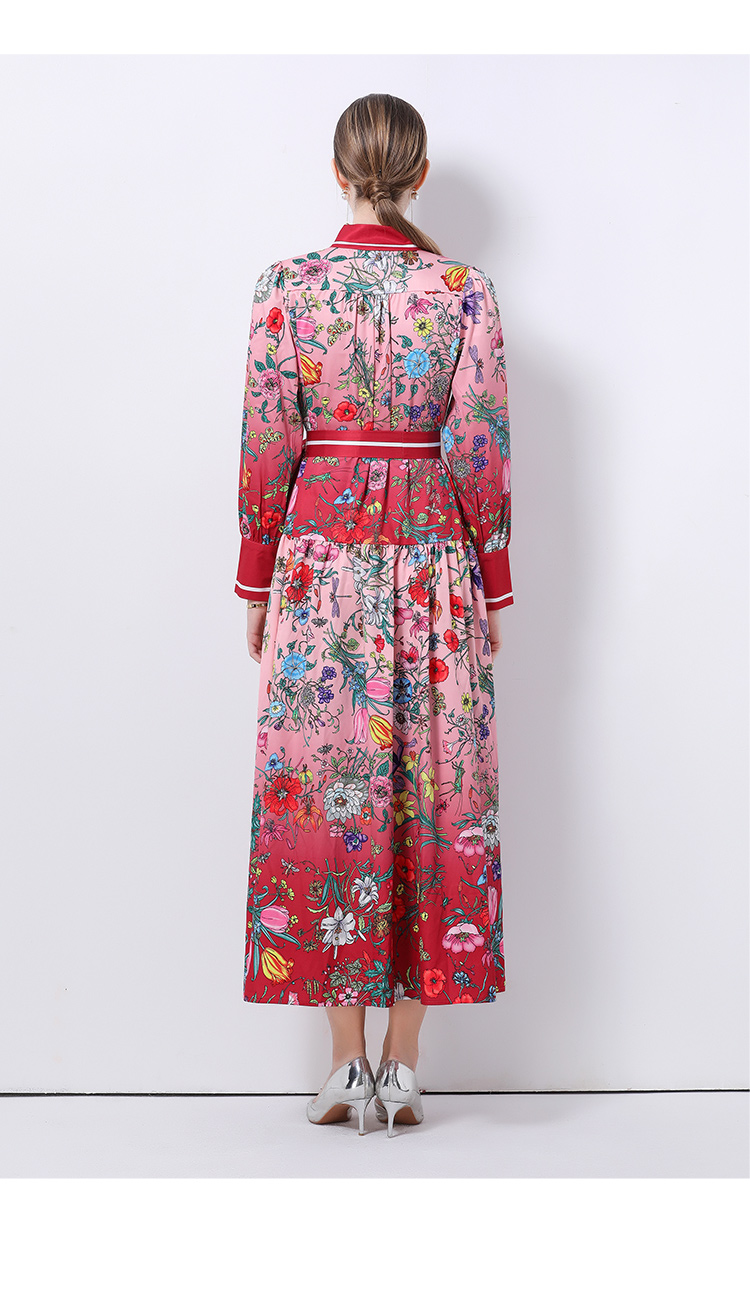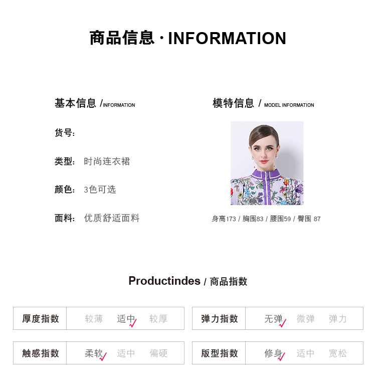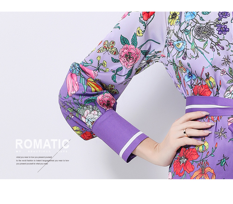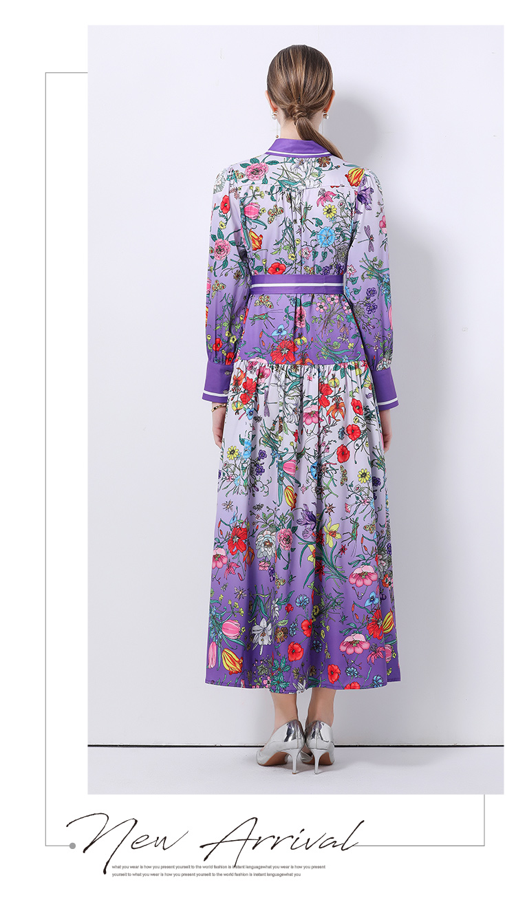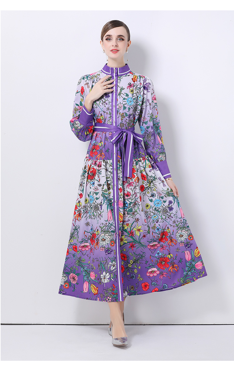 MY14894# 欧美时尚宫廷风立领单排扣印花连衣裙女裝貨源服裝批發