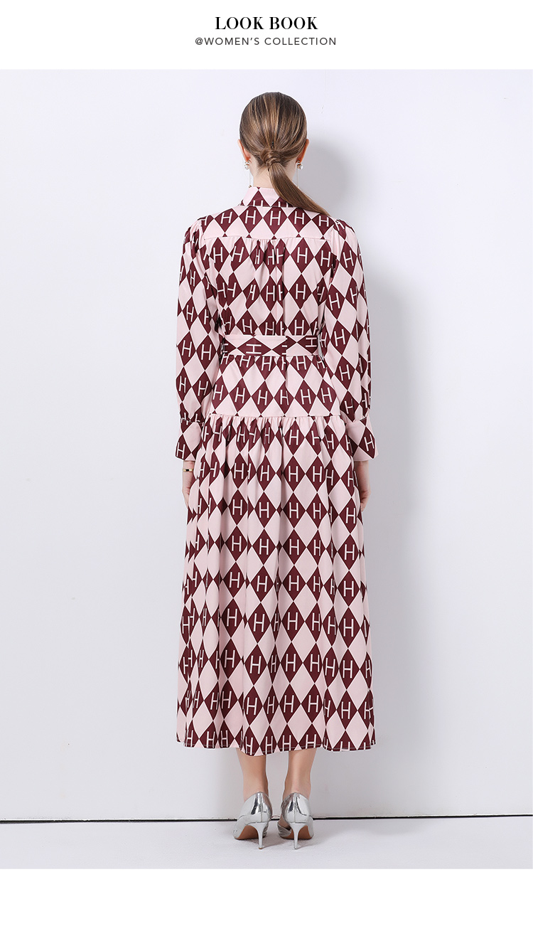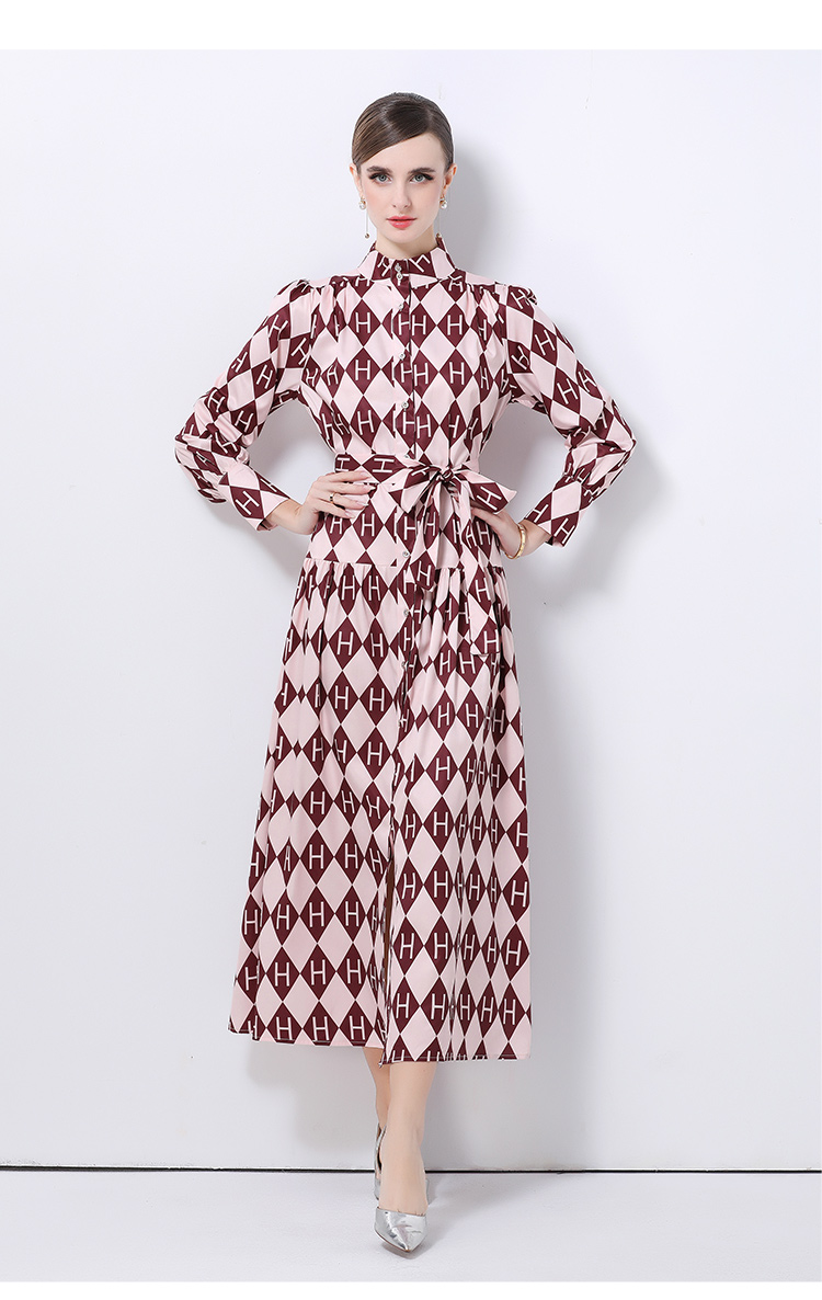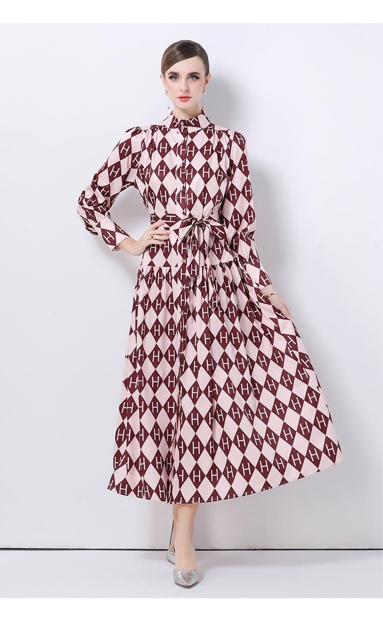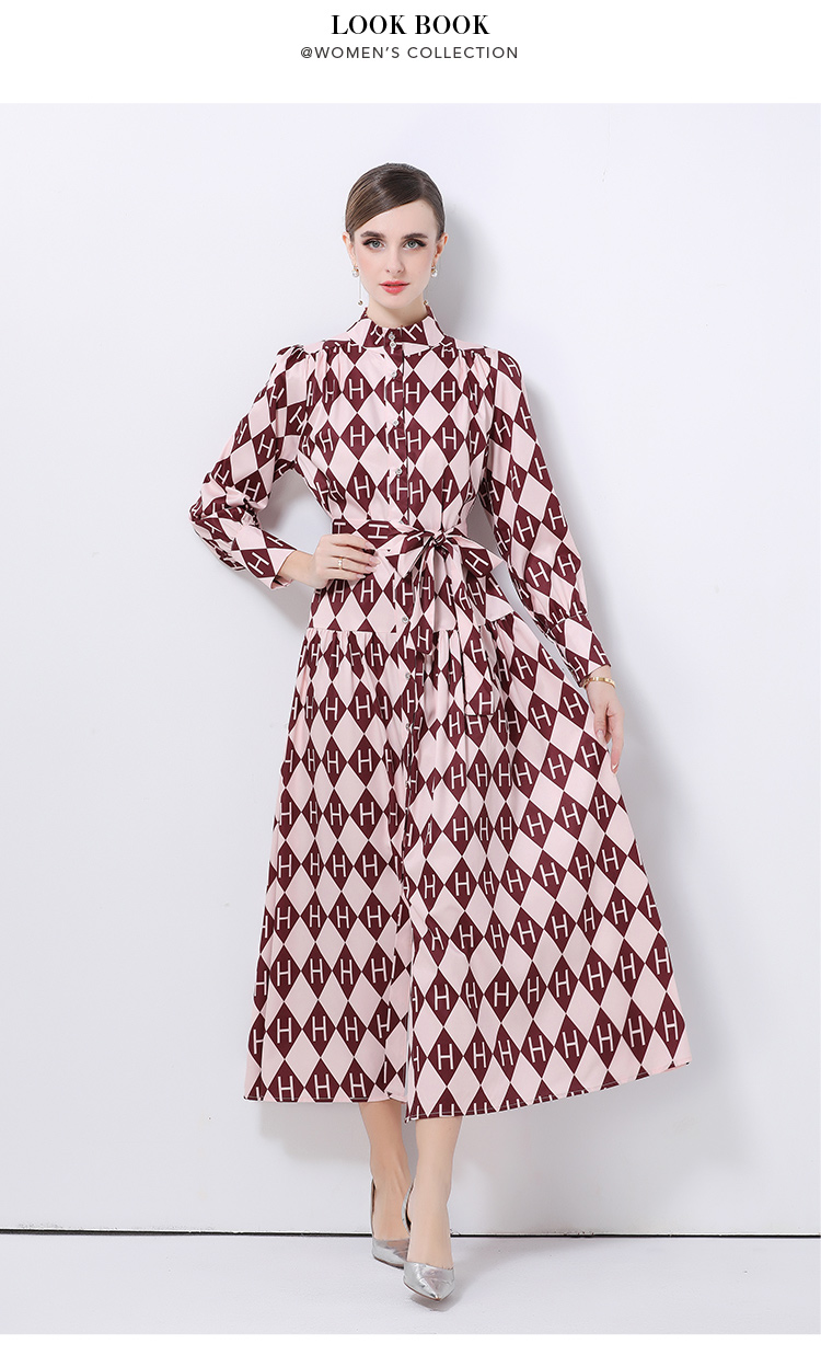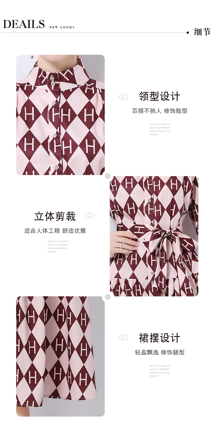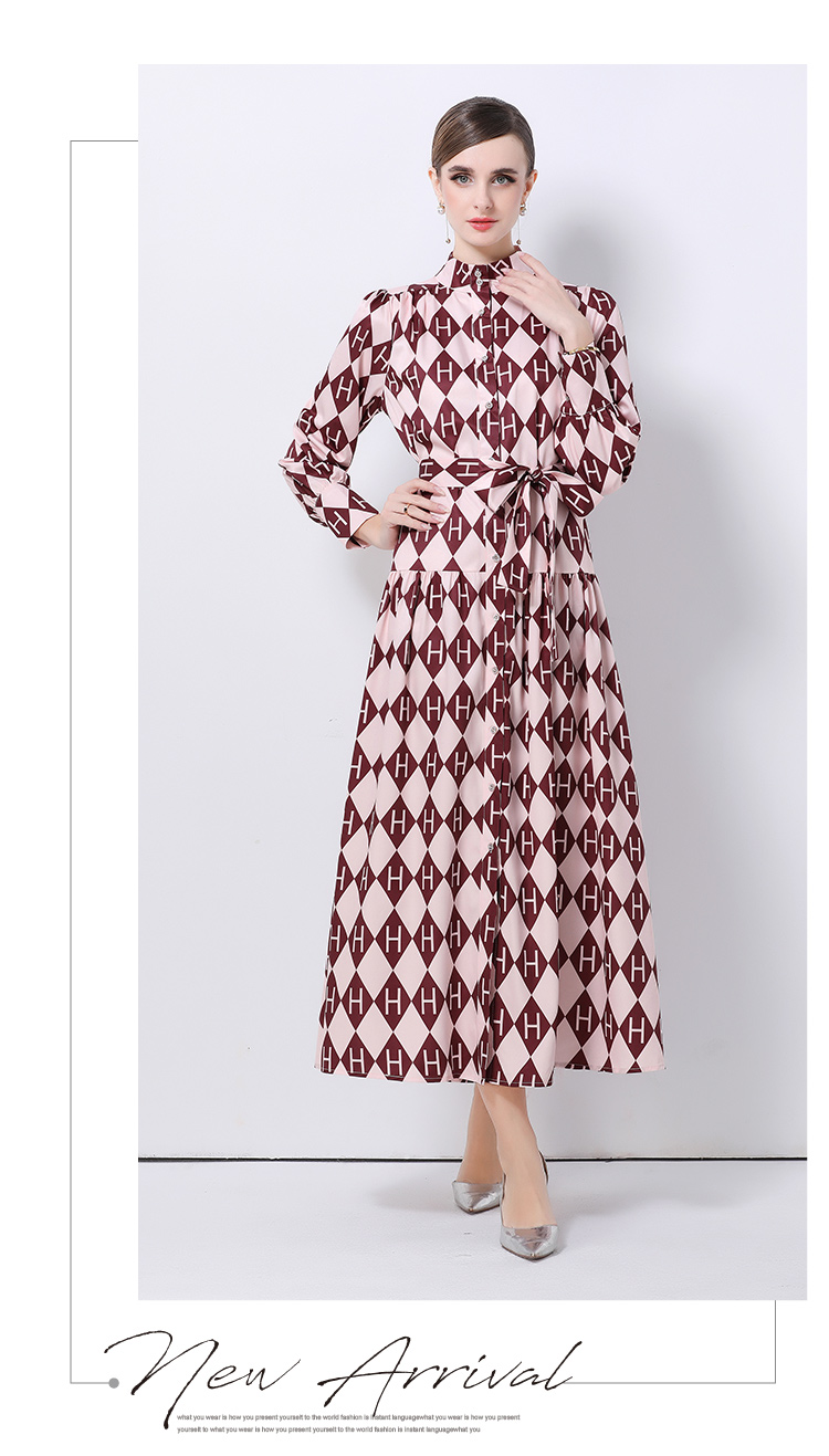MY14895# 欧美时尚宫廷风立领单排扣印花连衣裙女裝貨源服裝批發