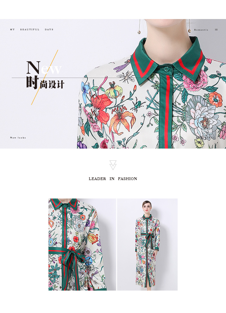 MY14901# 欧美时尚百搭开衫长衬衣定位印花连衣裙女裝貨源服裝批發