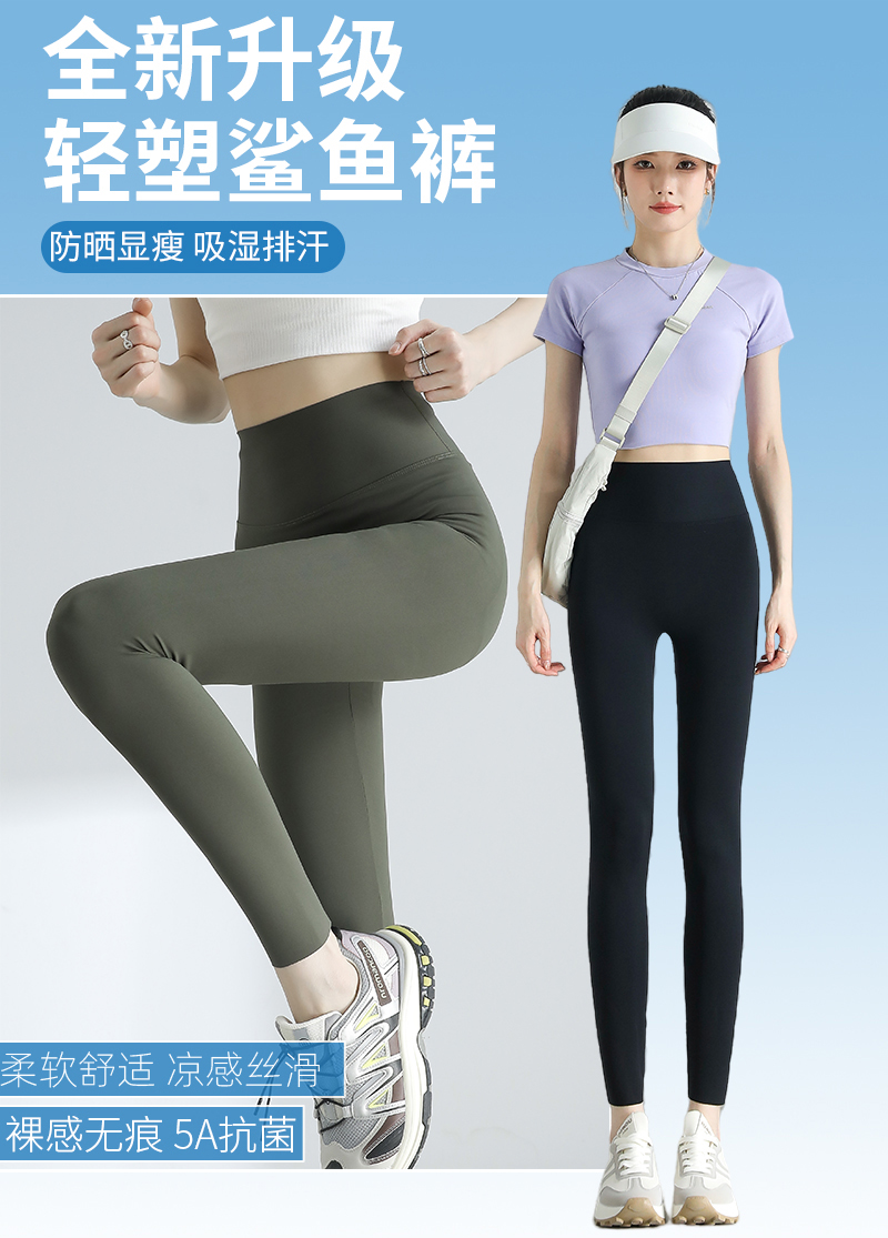 BY9178#液体打底裤女秋季高腰收腹提臀鲨鱼裤女可外穿瑜伽紧身裤