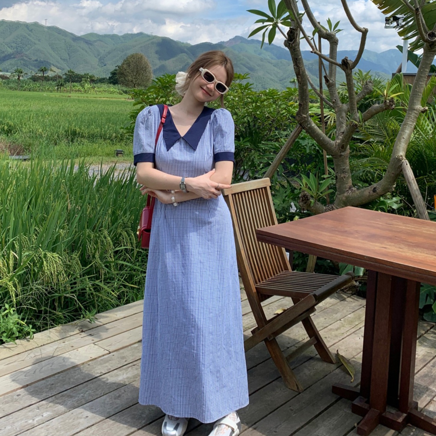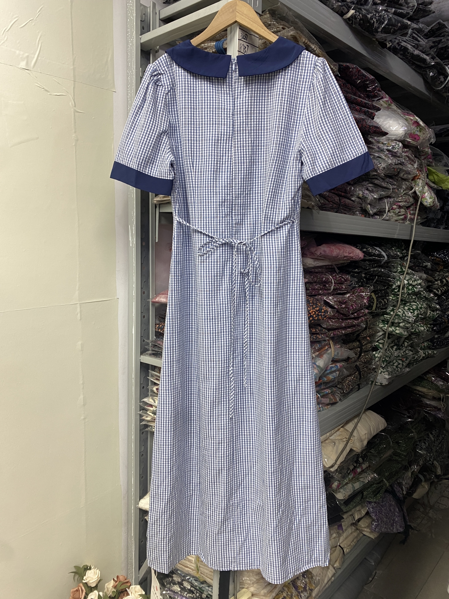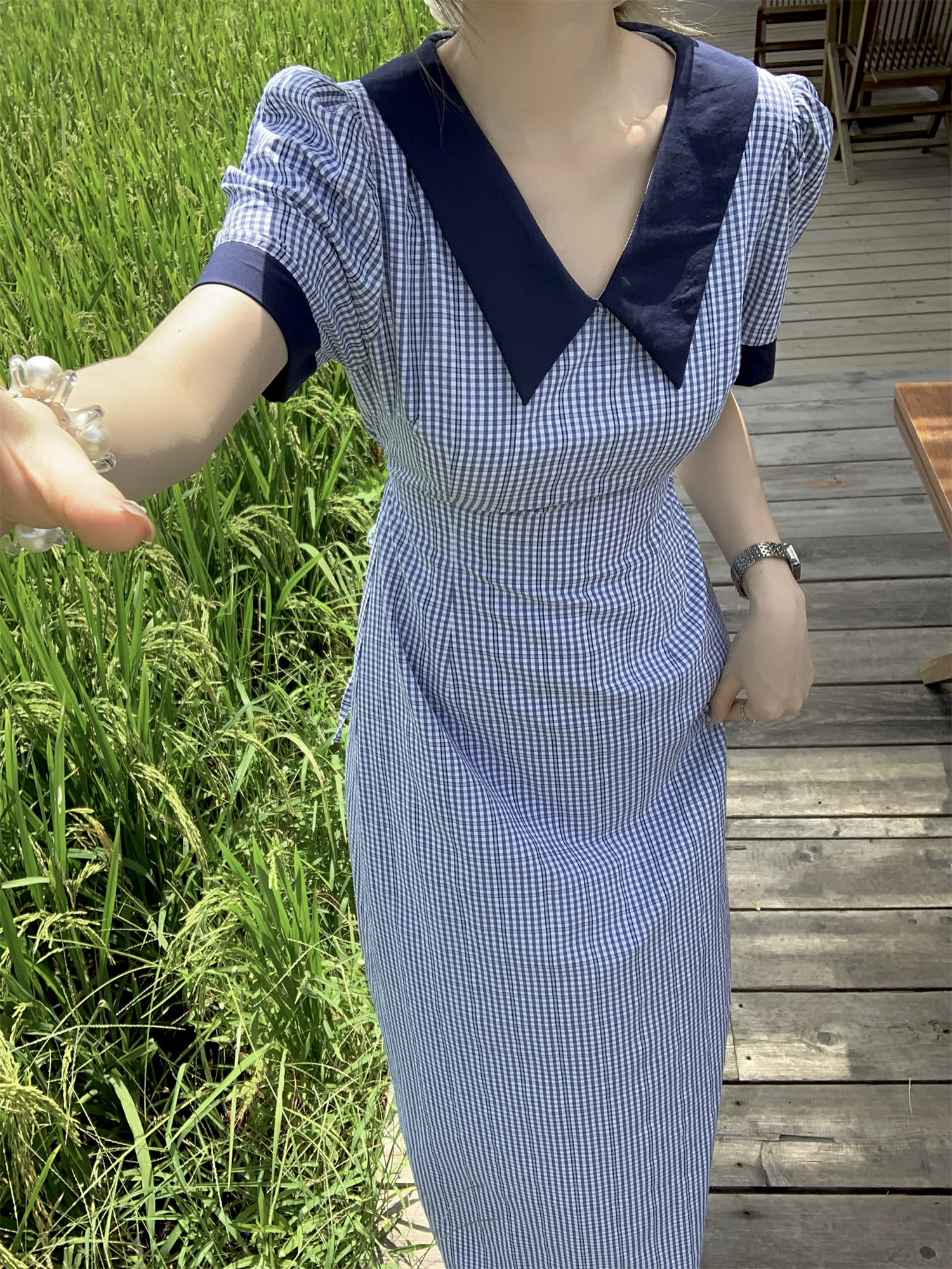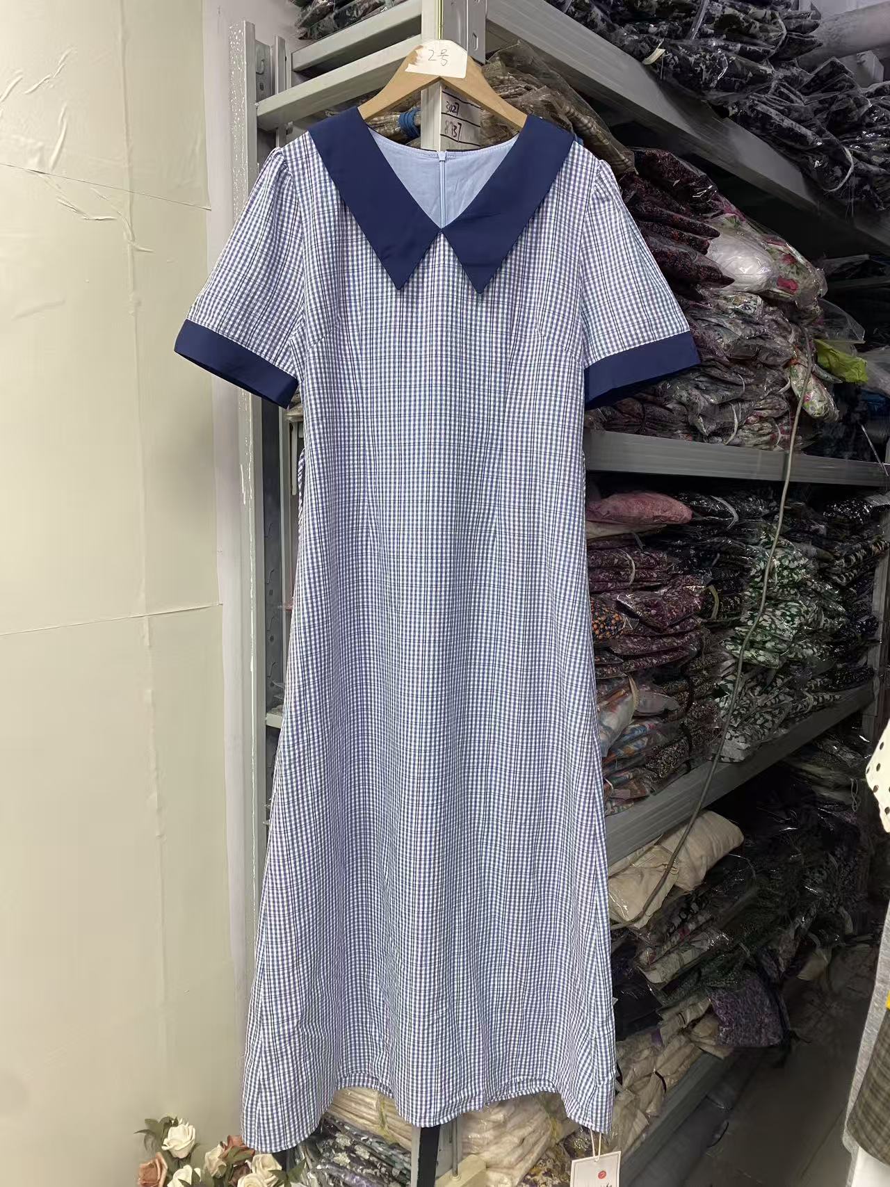 3373蓝色格子连衣裙