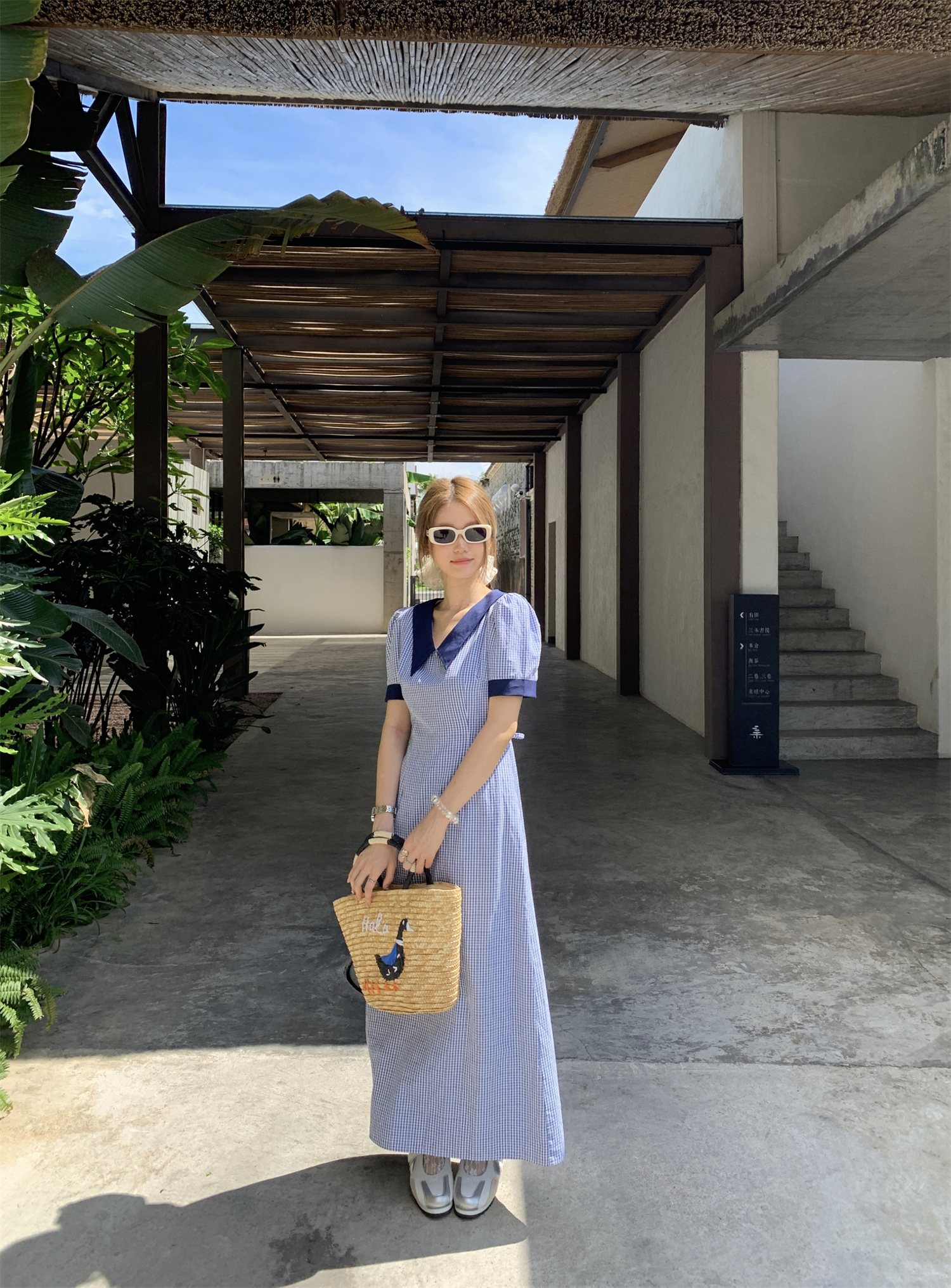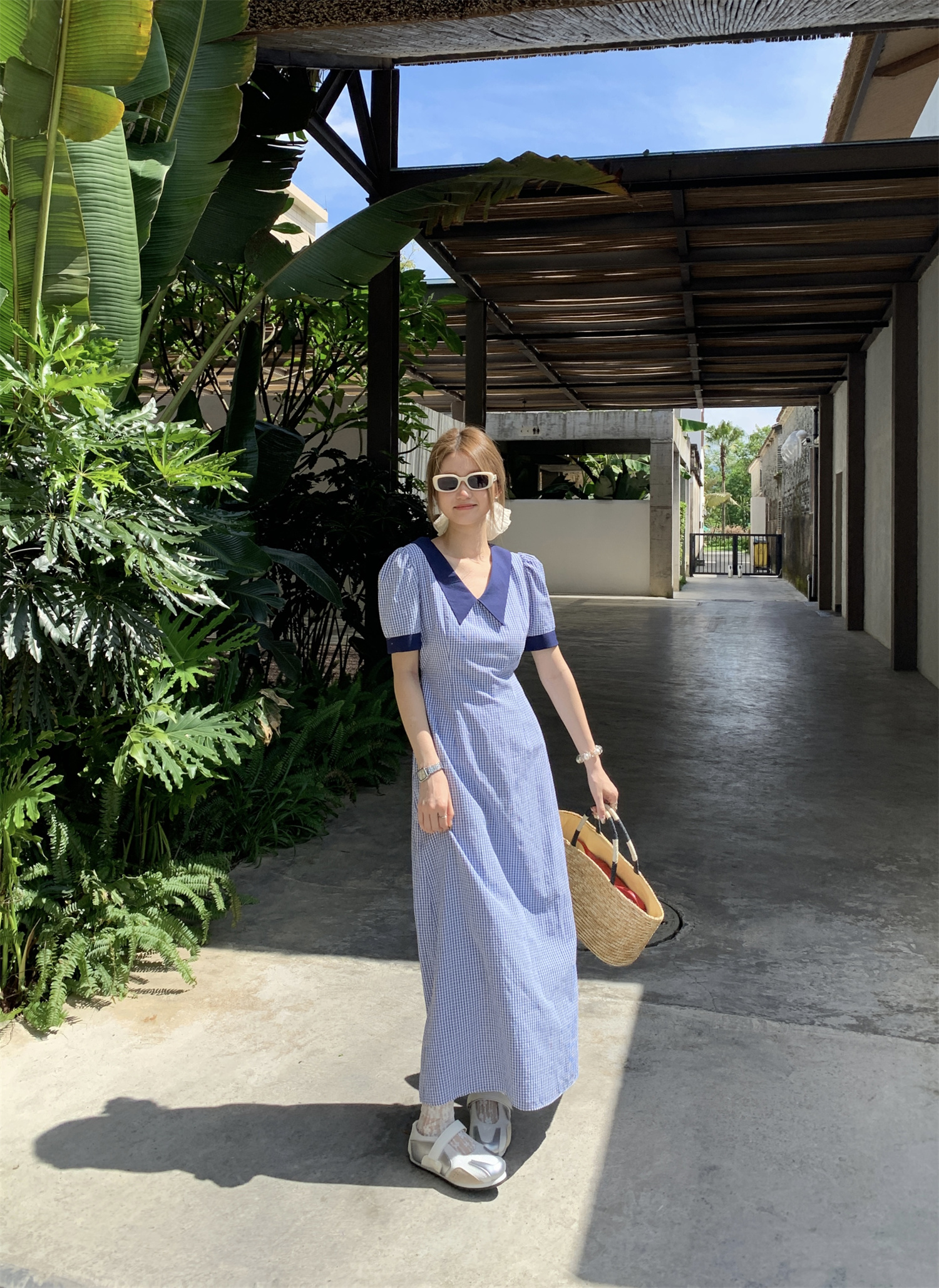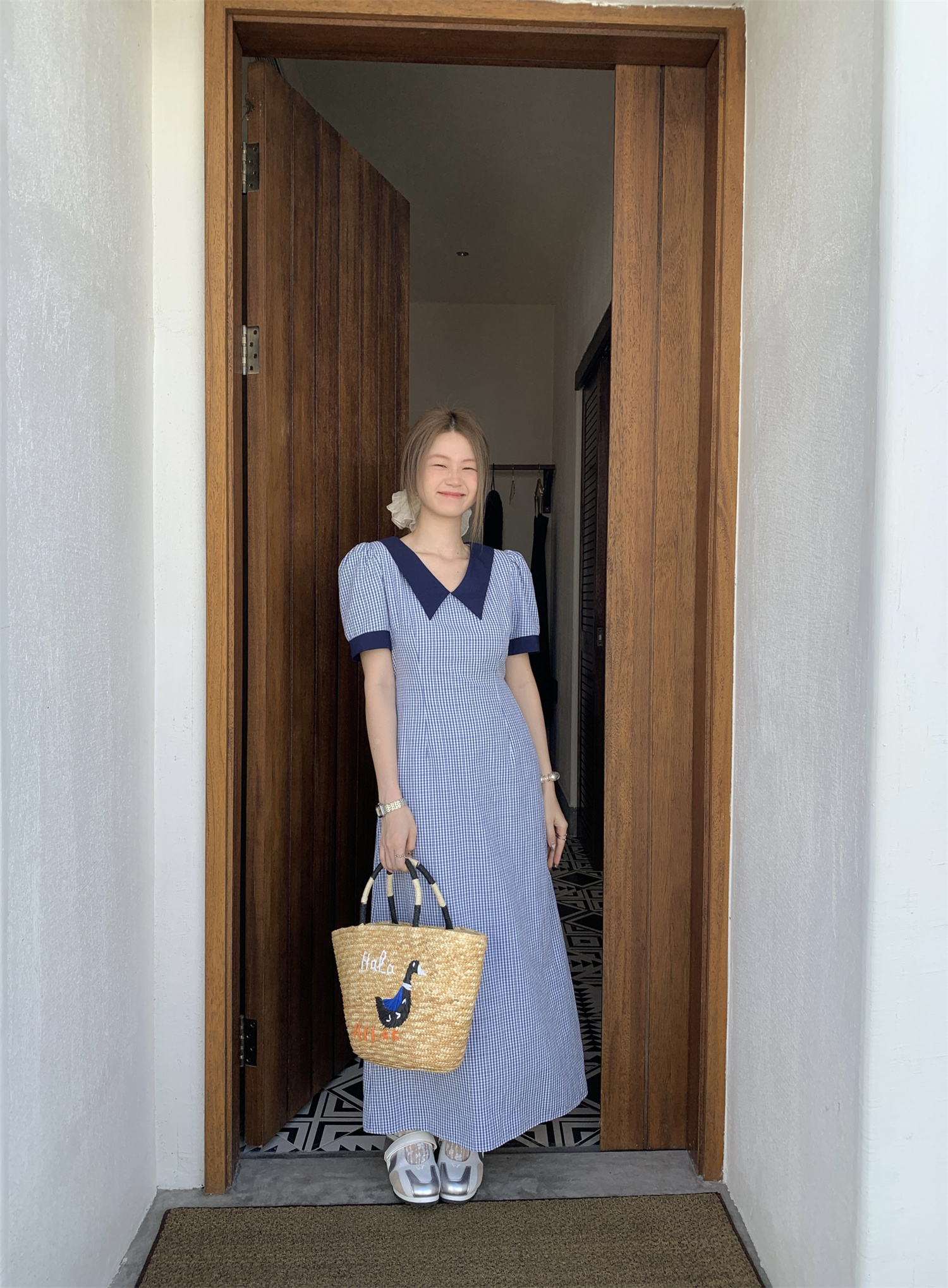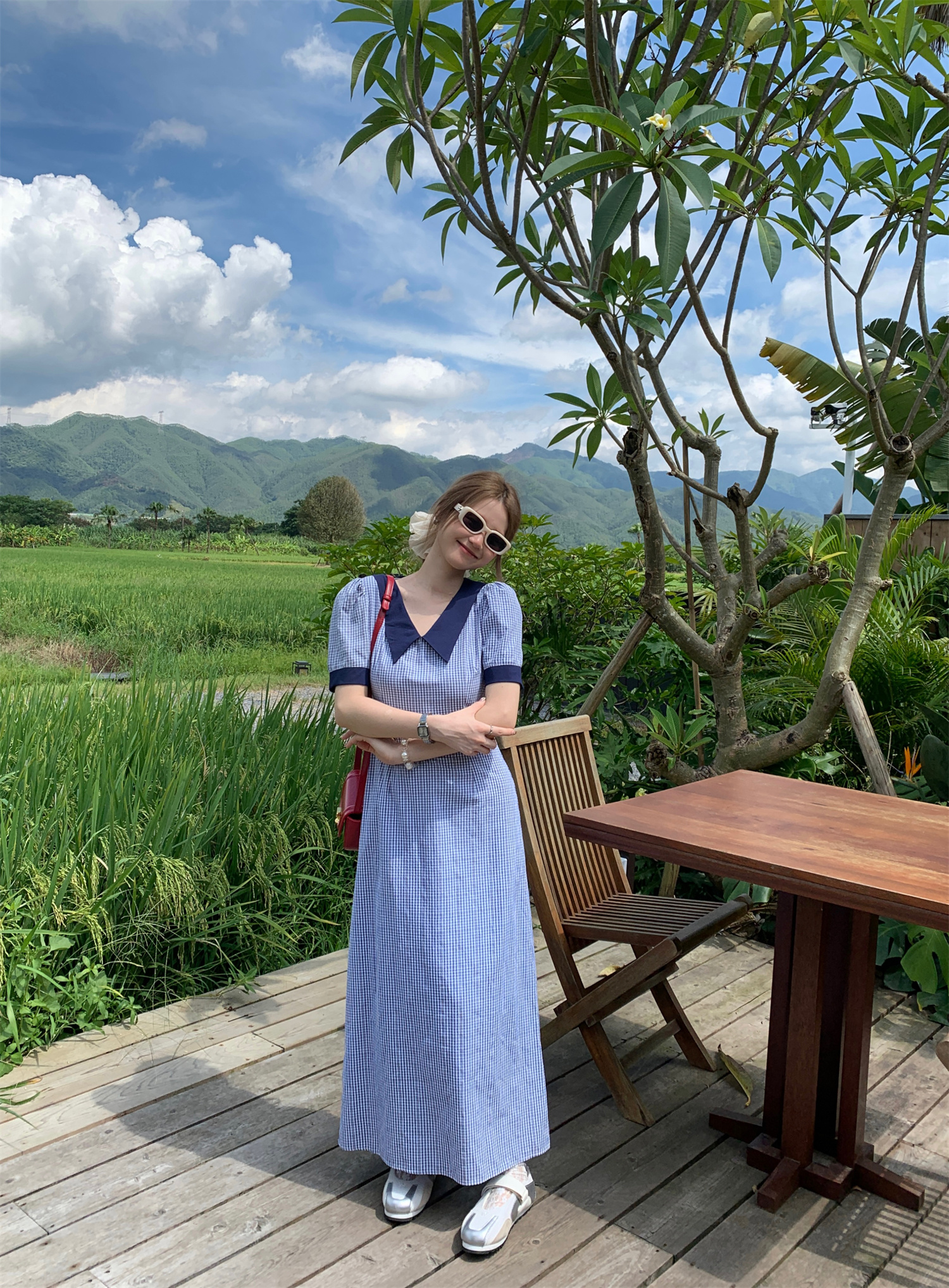 3373蓝色格子连衣裙
