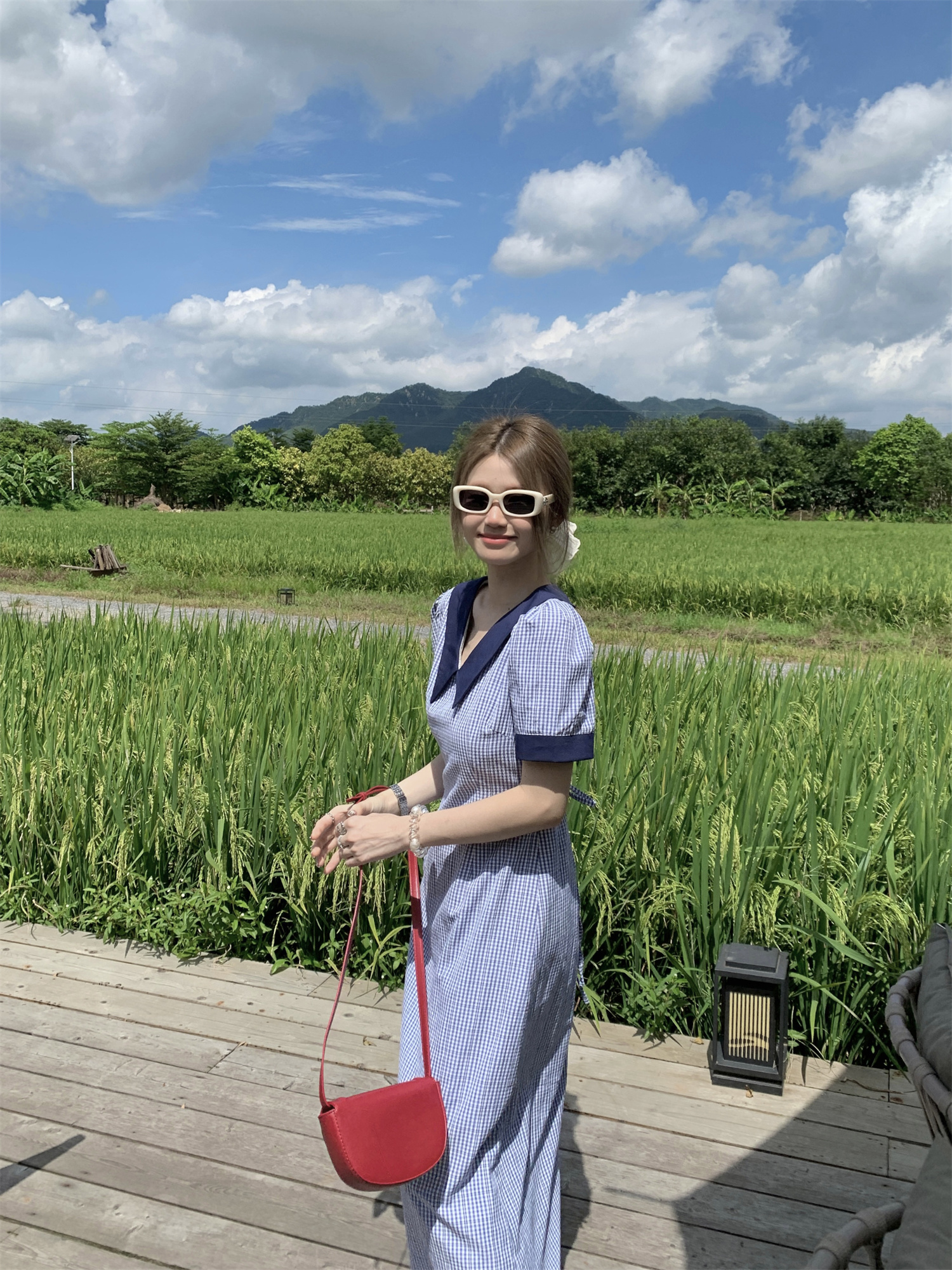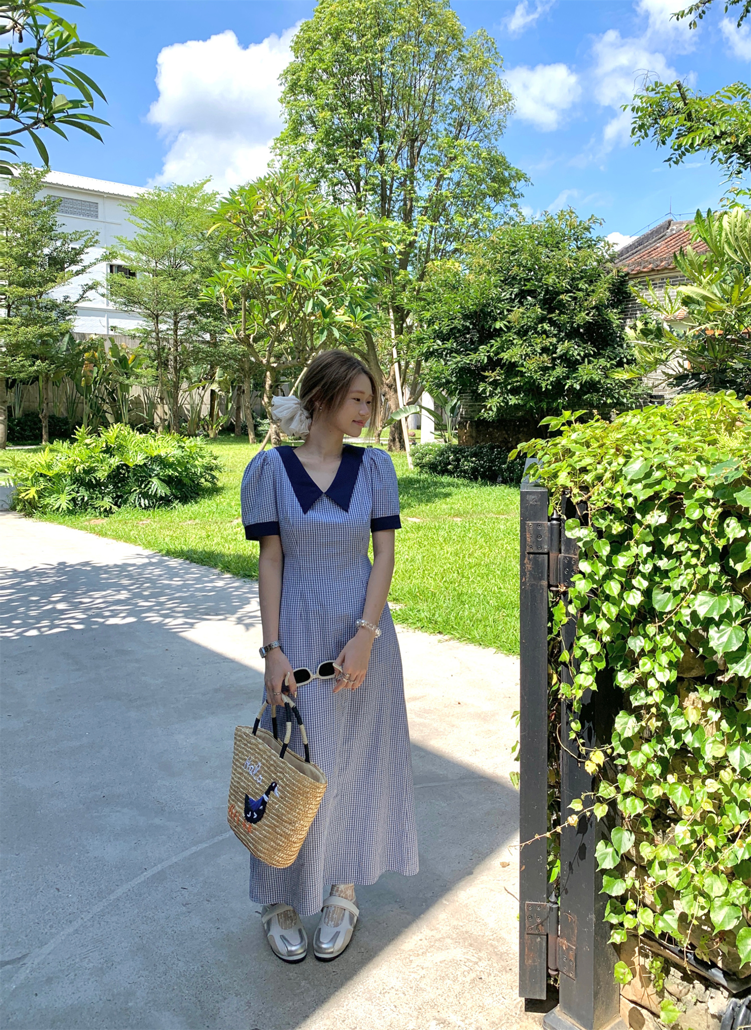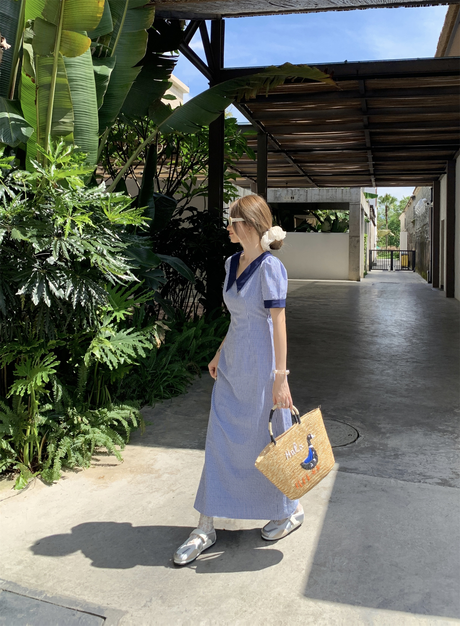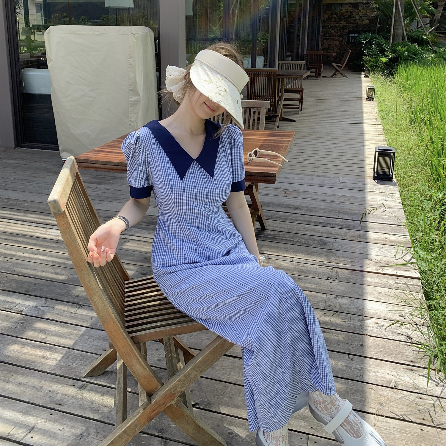 3373蓝色格子连衣裙