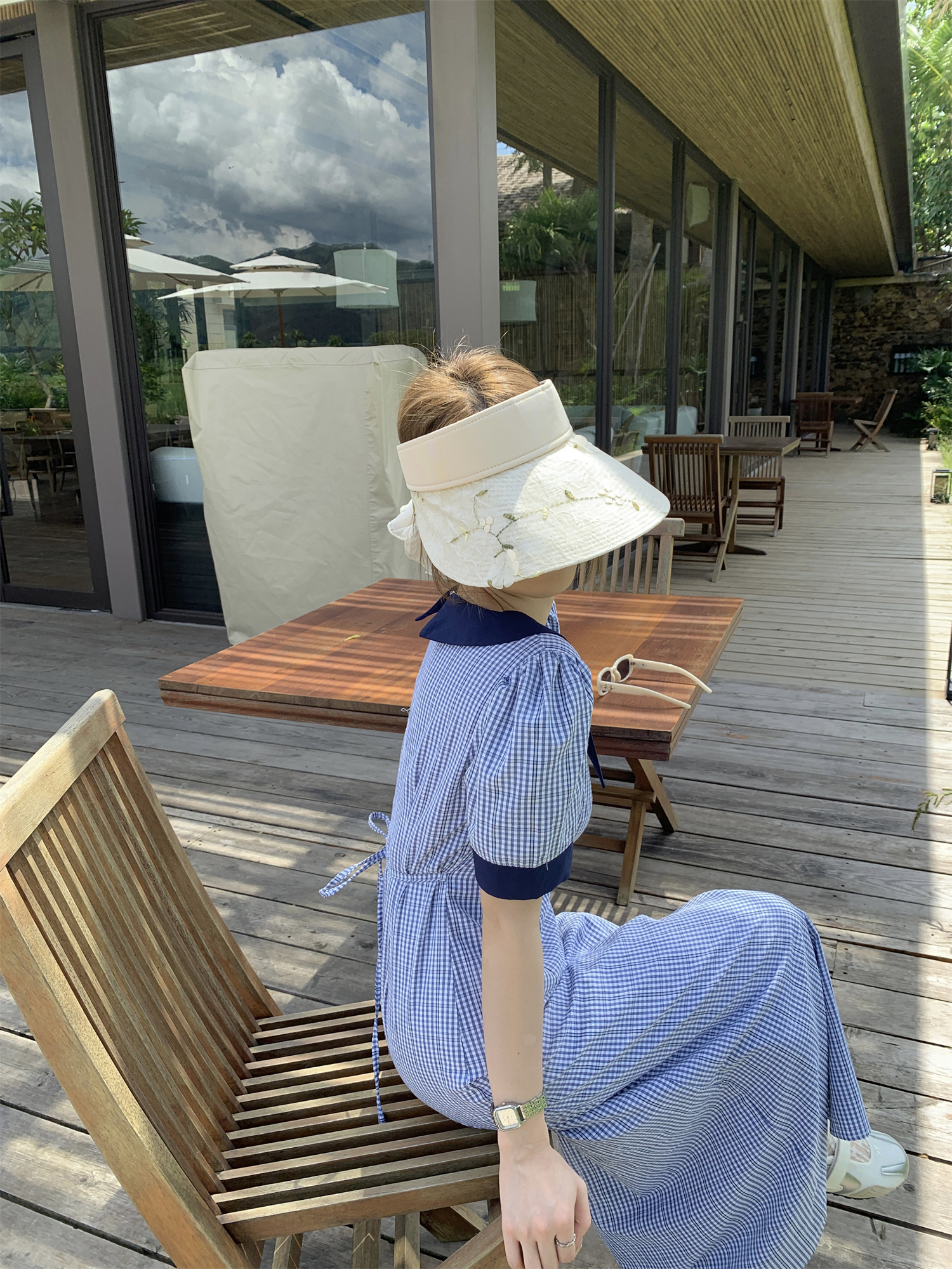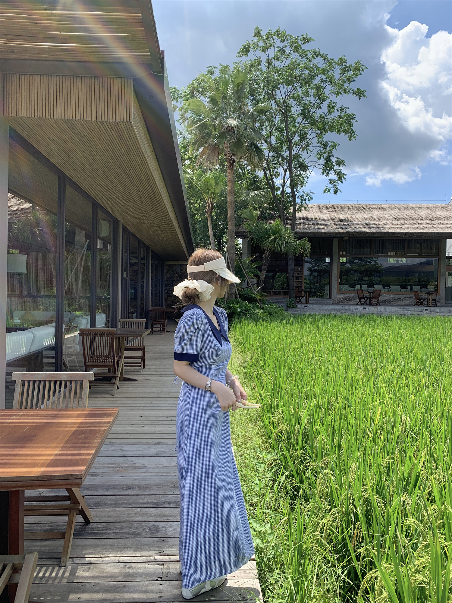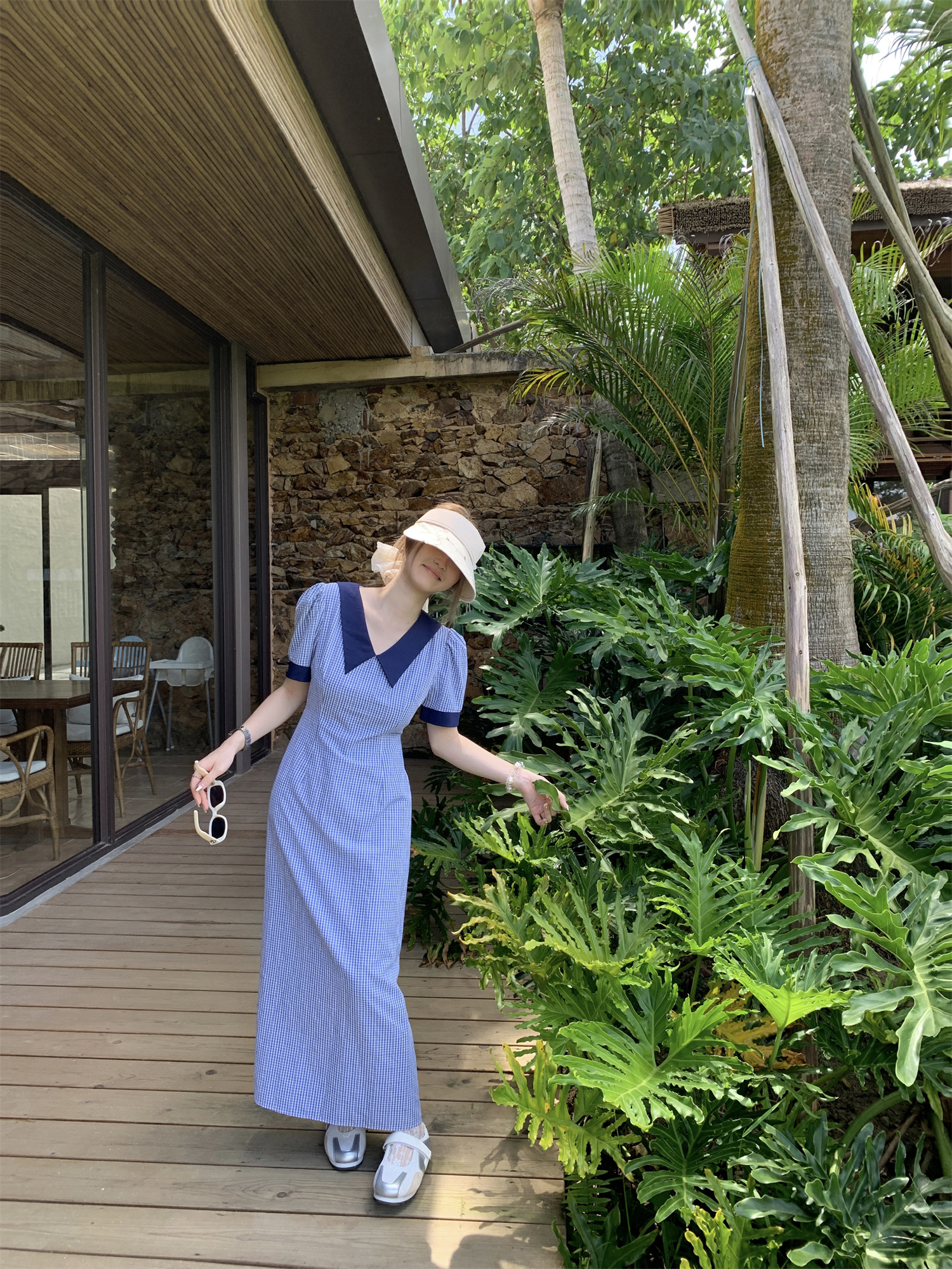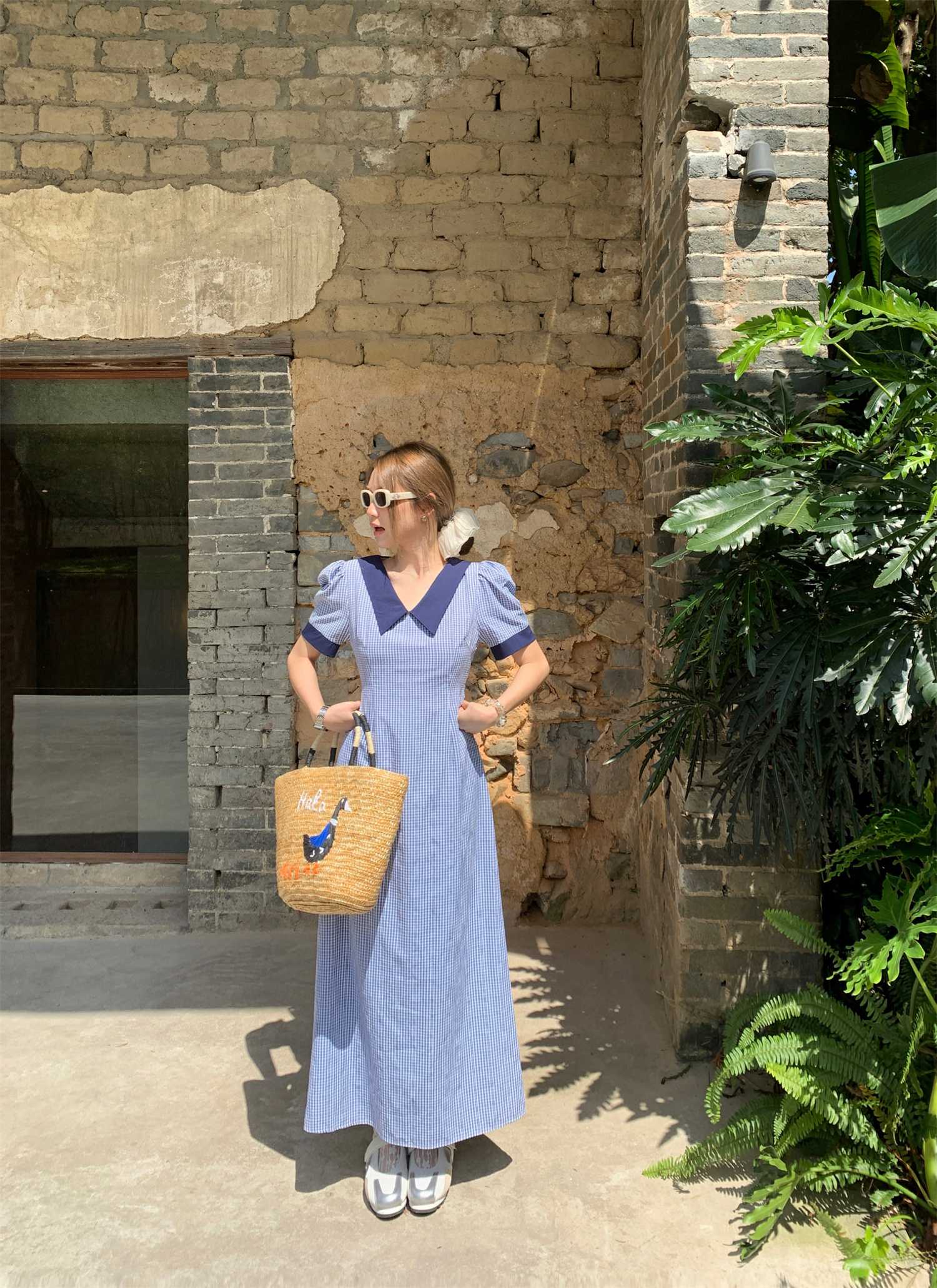3373蓝色格子连衣裙