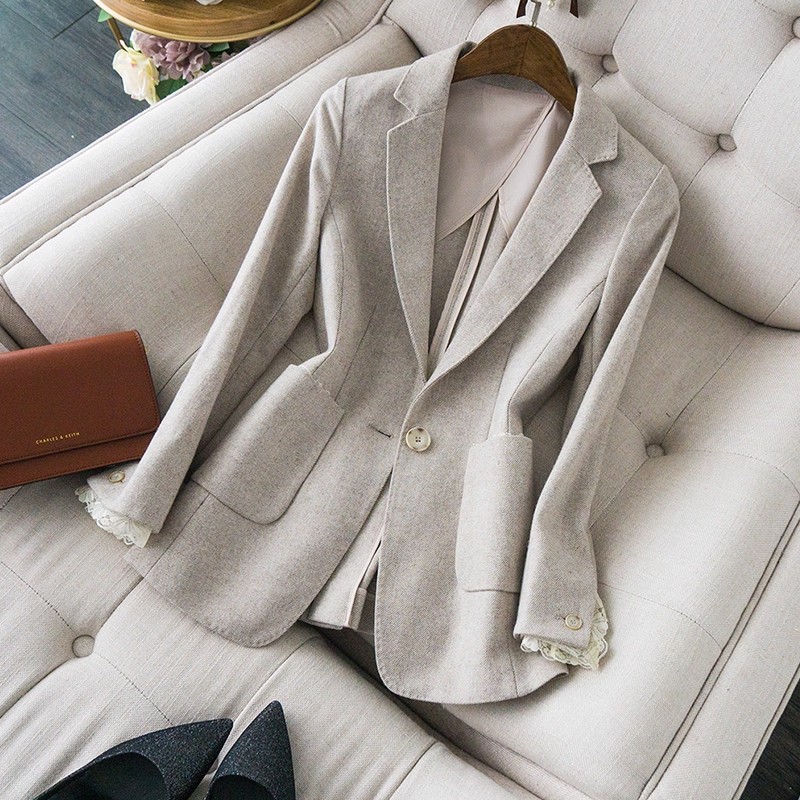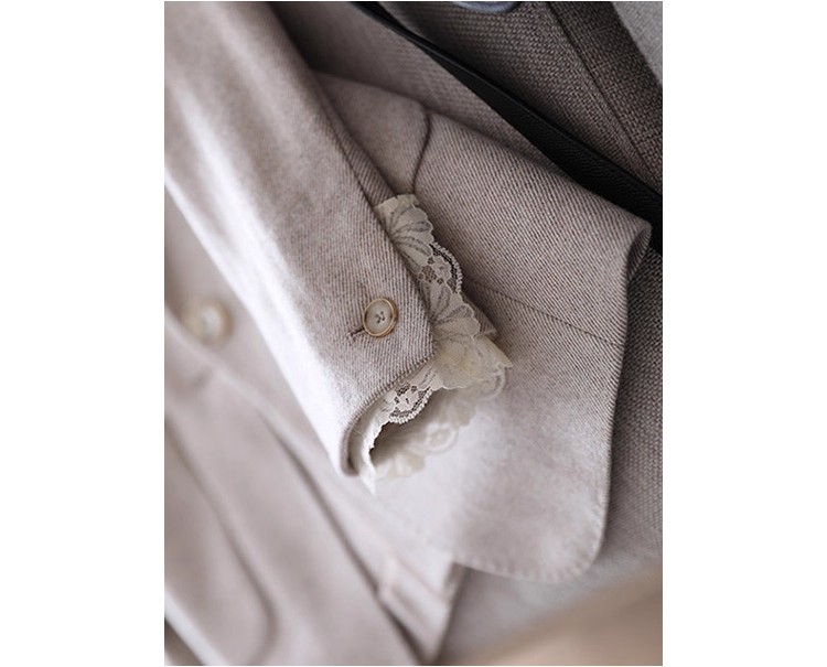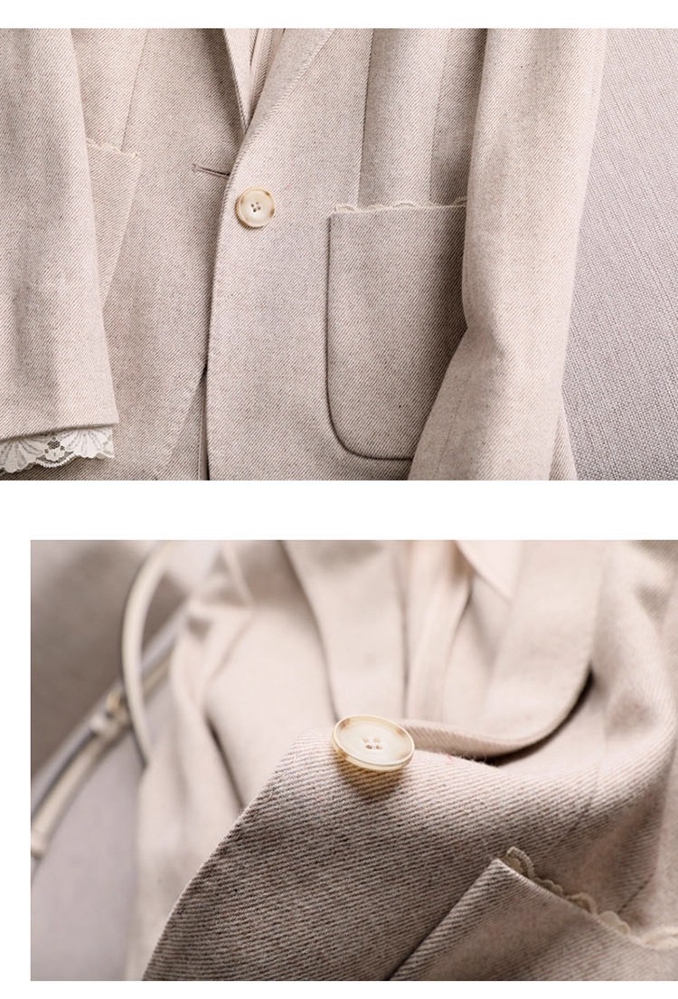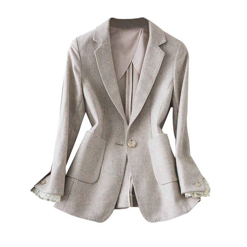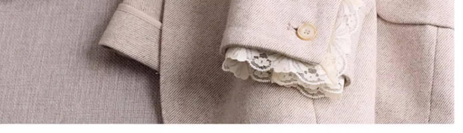 MY17275# 商务而温雅 高端定制修身蕾丝拼接西服女羊毛收腰休闲小西装外套女裝貨源服裝批發