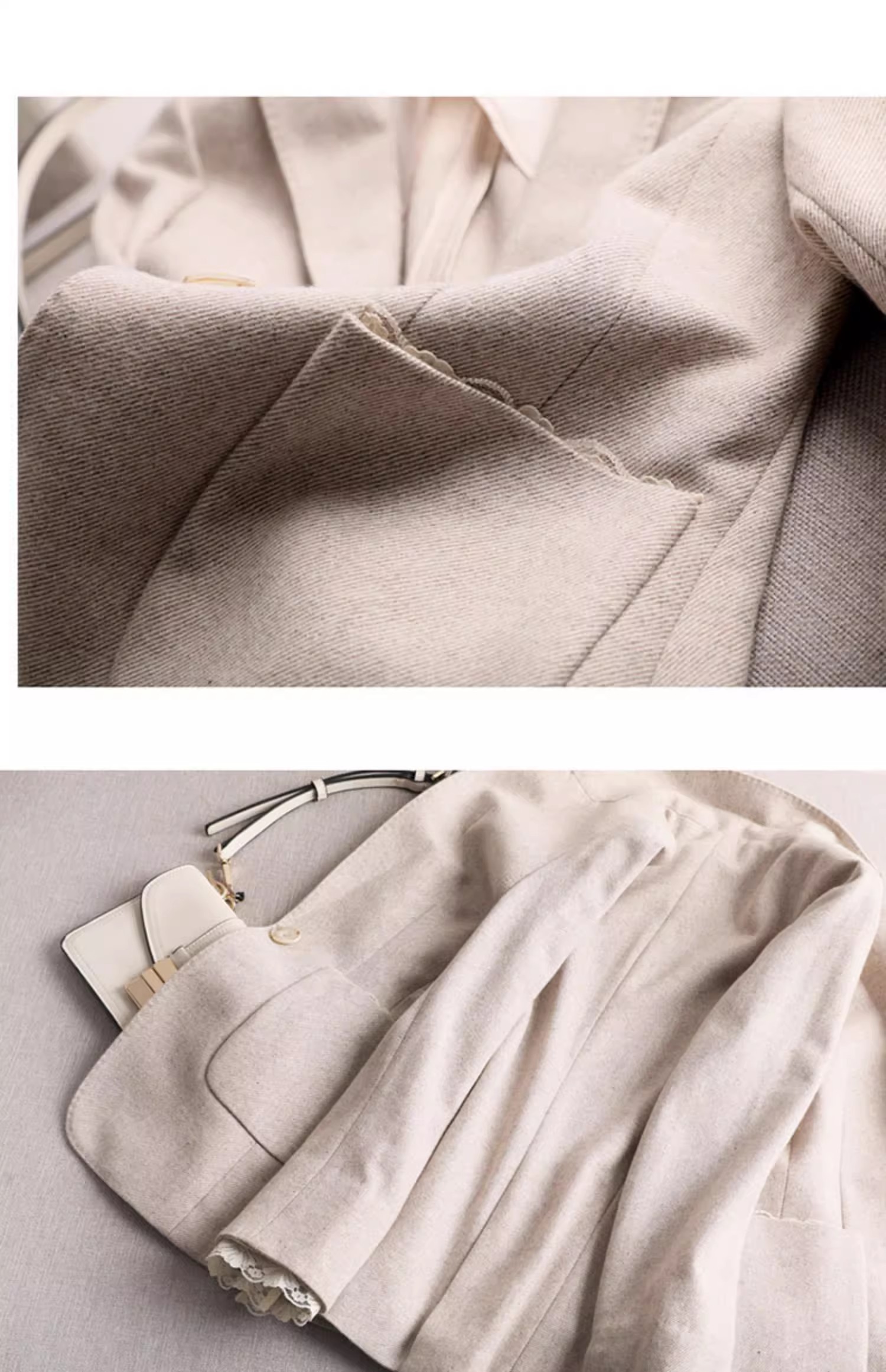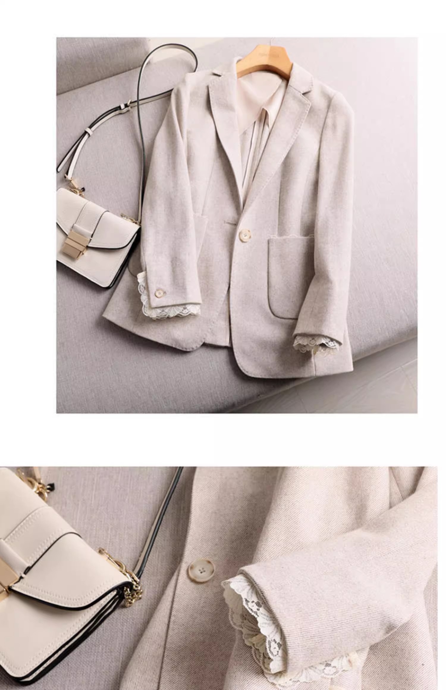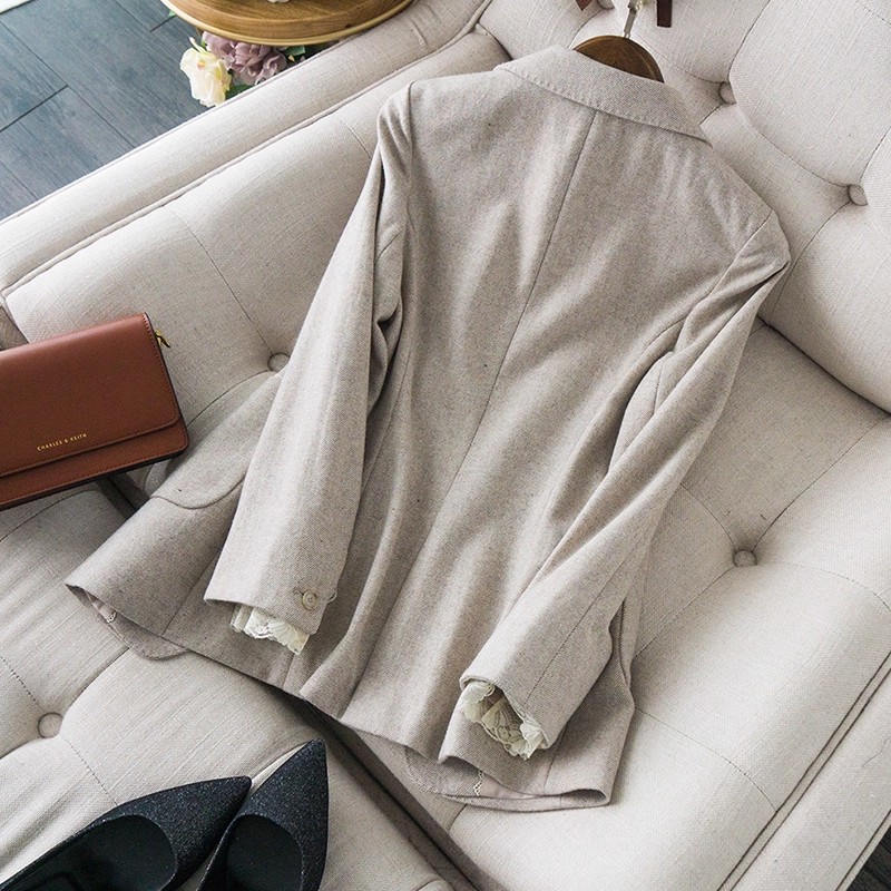 MY17275# 商务而温雅 高端定制修身蕾丝拼接西服女羊毛收腰休闲小西装外套女裝貨源服裝批發