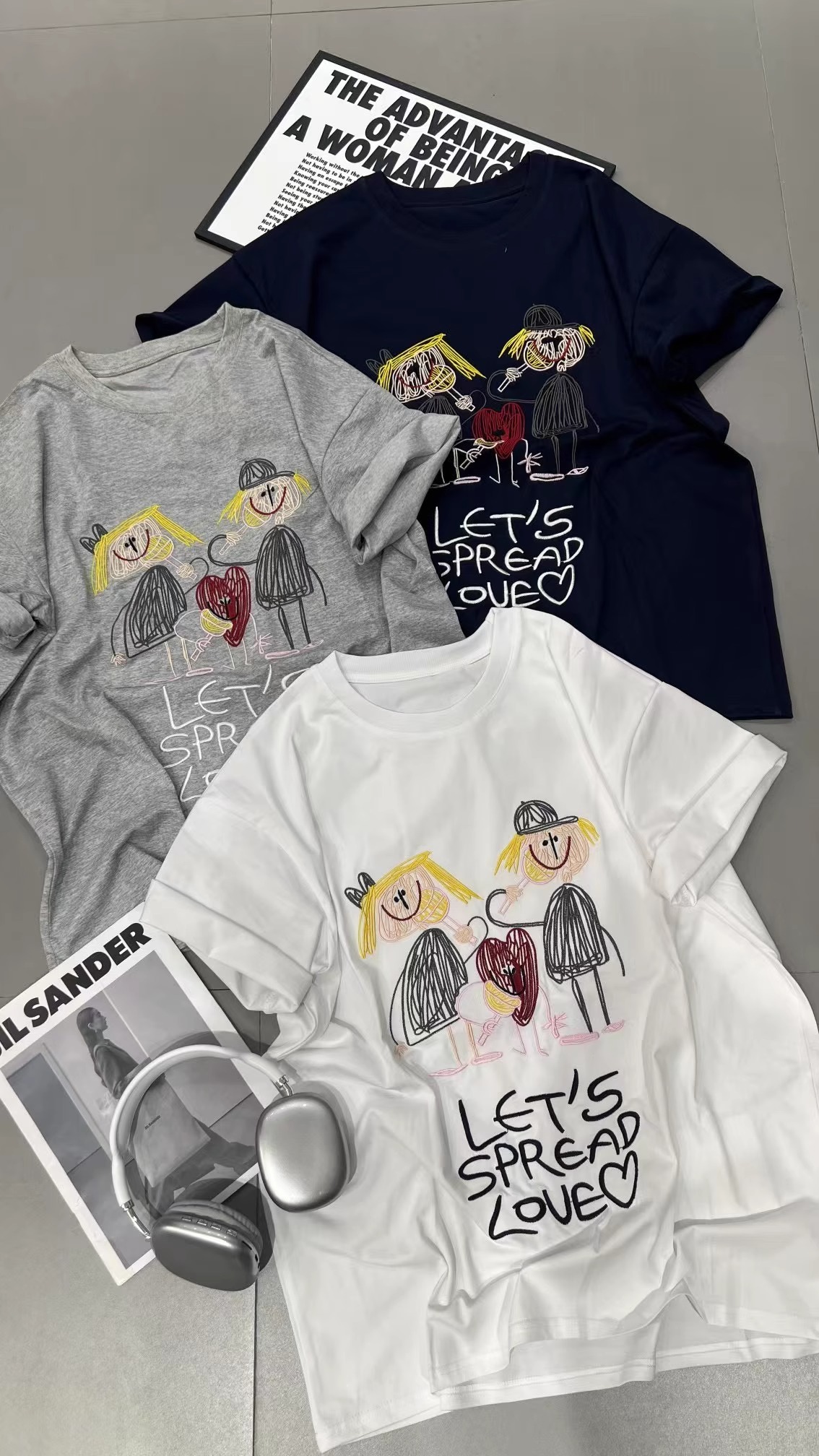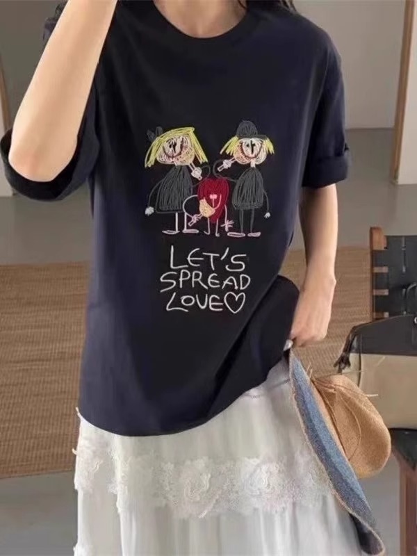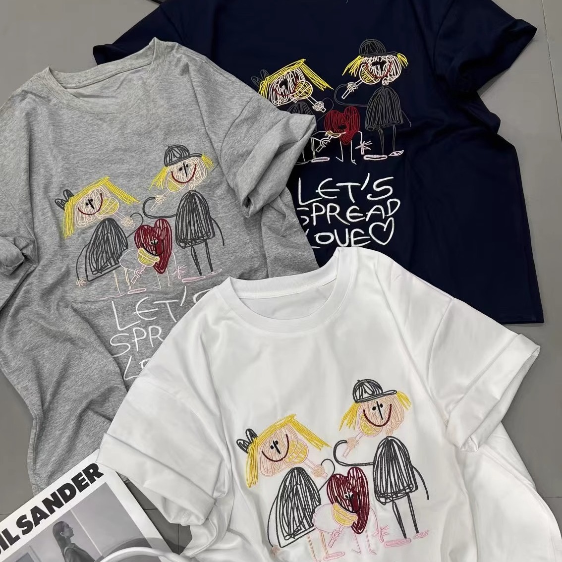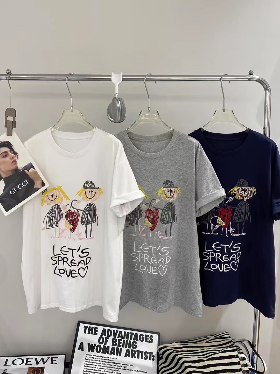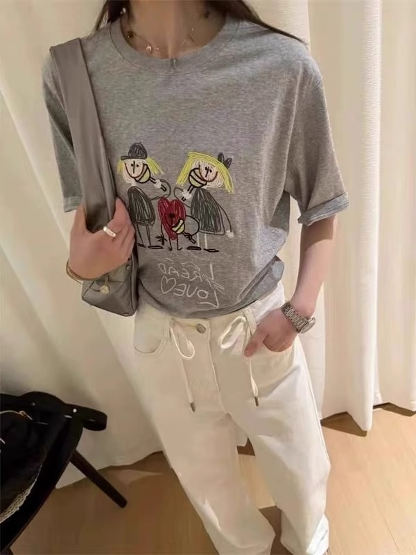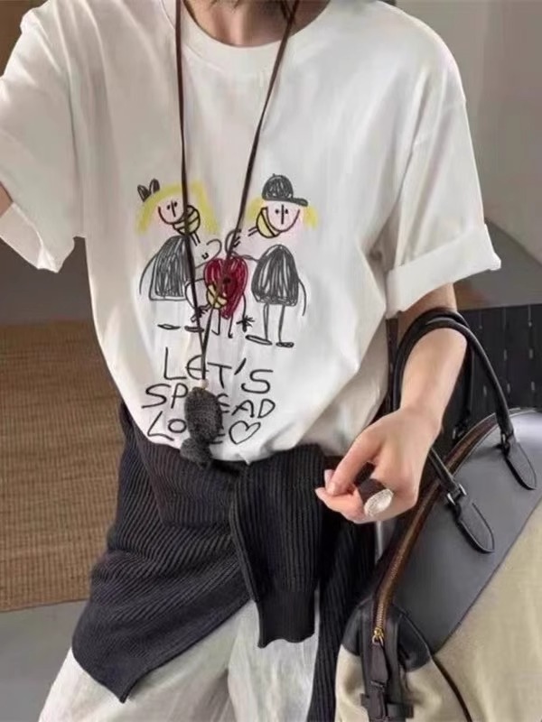 MY17348# 21支纯棉100%棉欧洲站字母涂鸦卡通短袖T恤女女裝貨源服裝批發