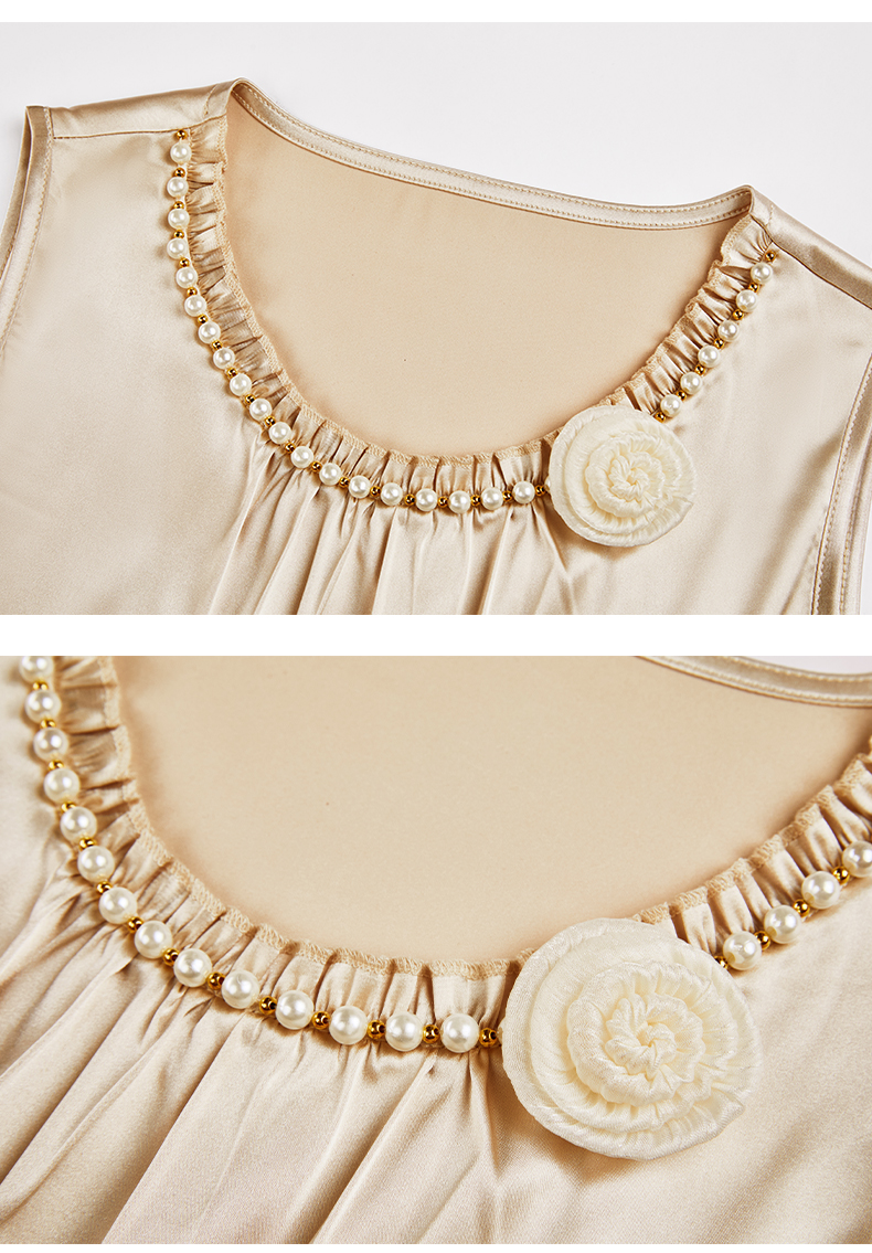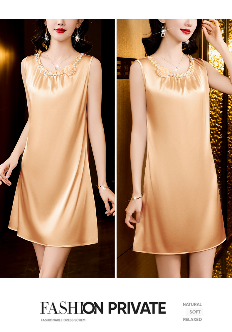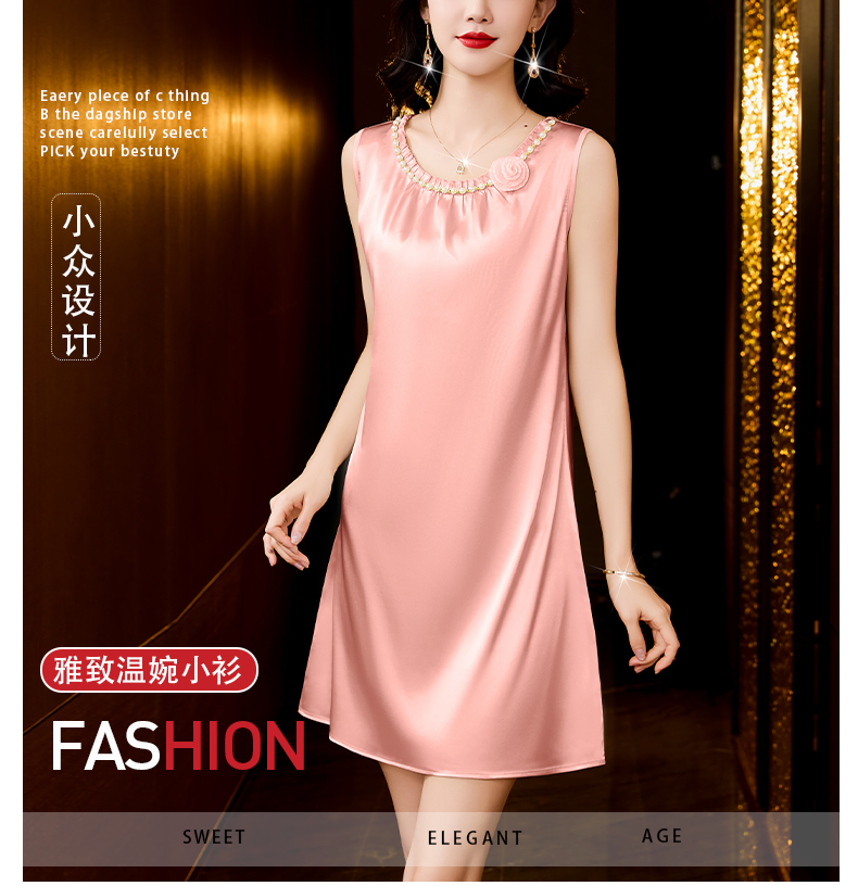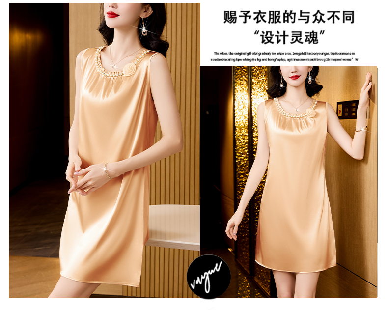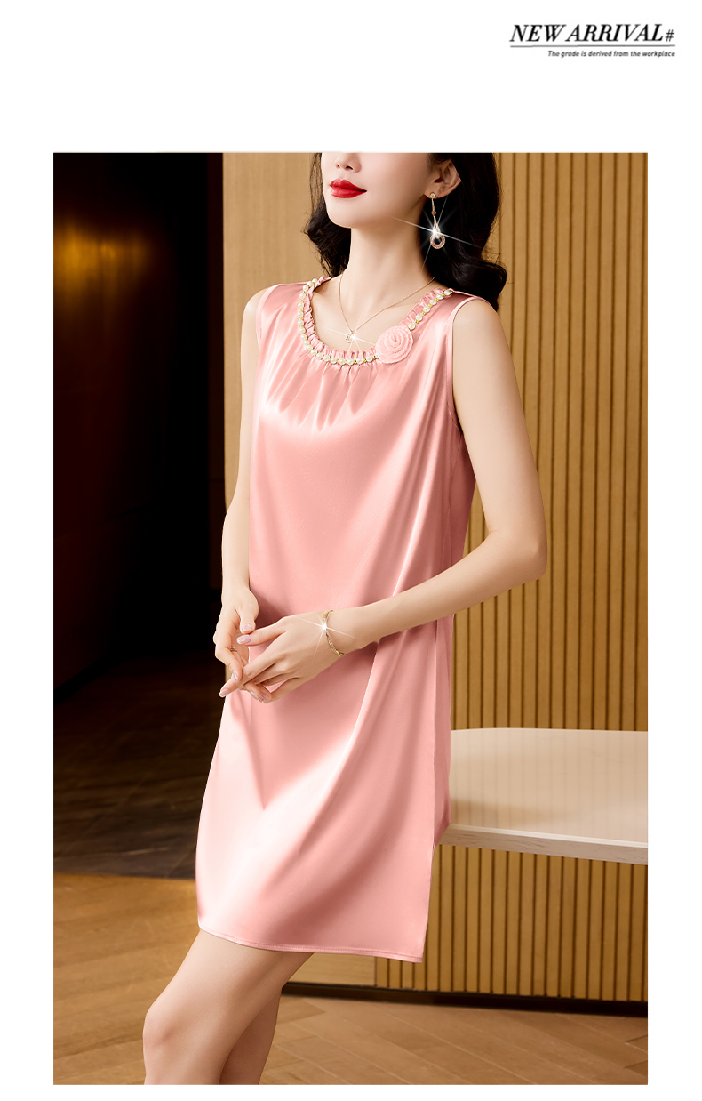 MY17389# 圆领钉珠花朵春秋新款时尚高级感睡裙女裝貨源服裝批發