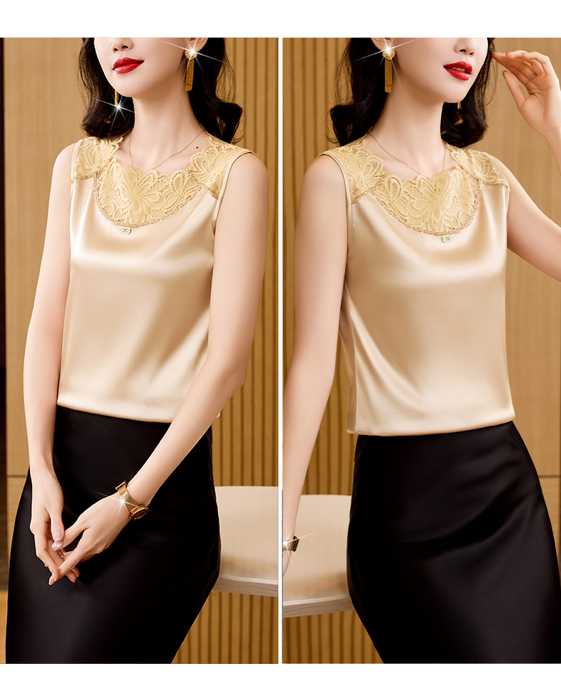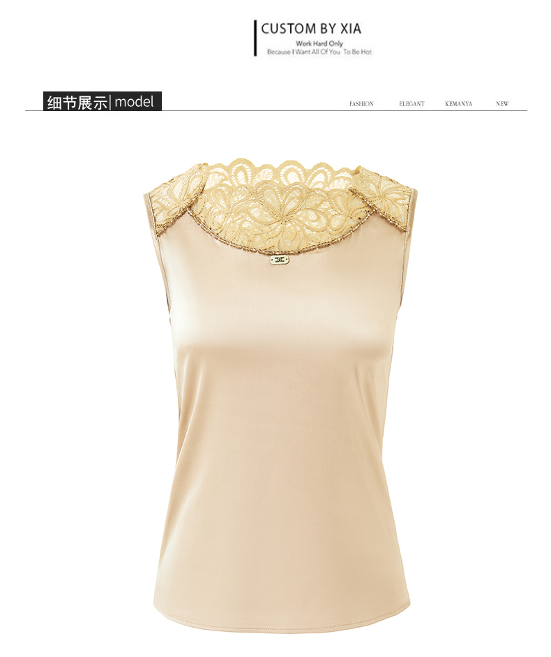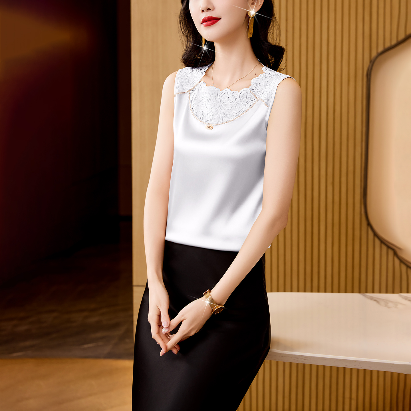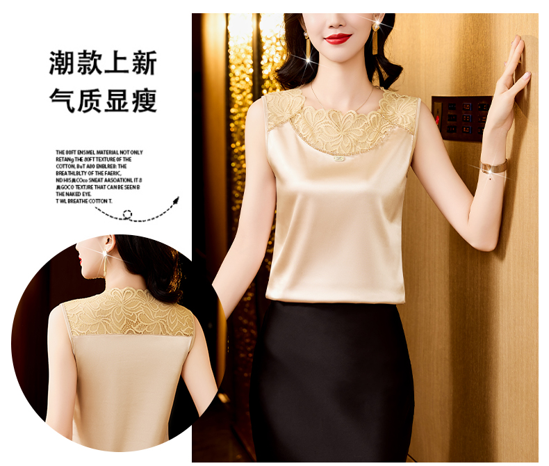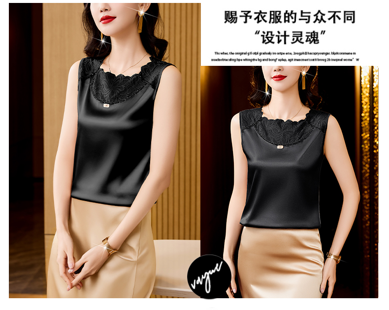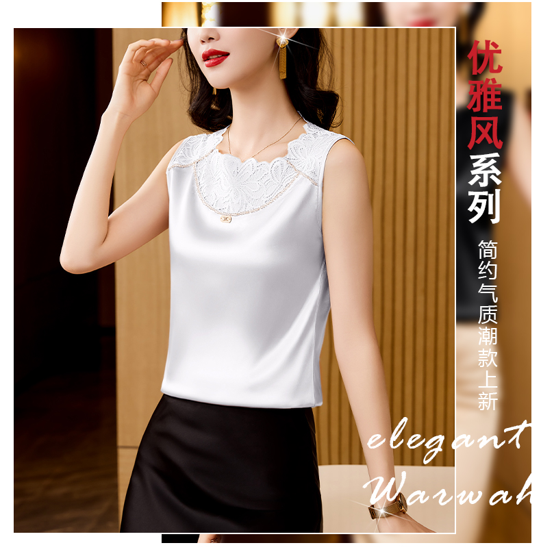 MY17393# 蕾丝钉珠拼接时尚洋气内搭小衫背心女裝貨源服裝批發