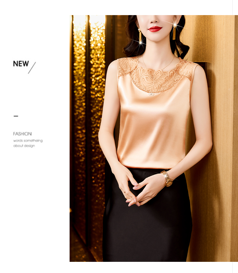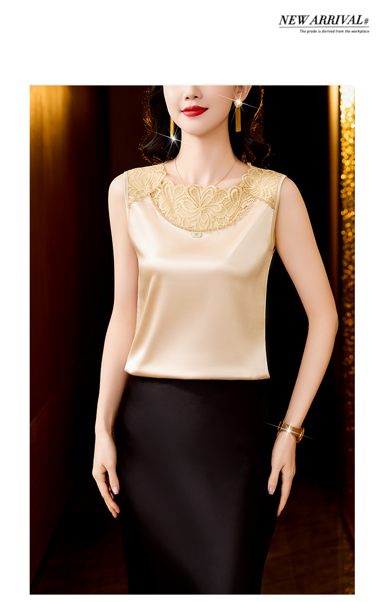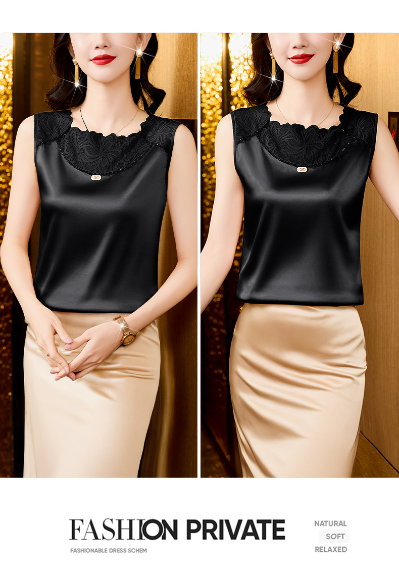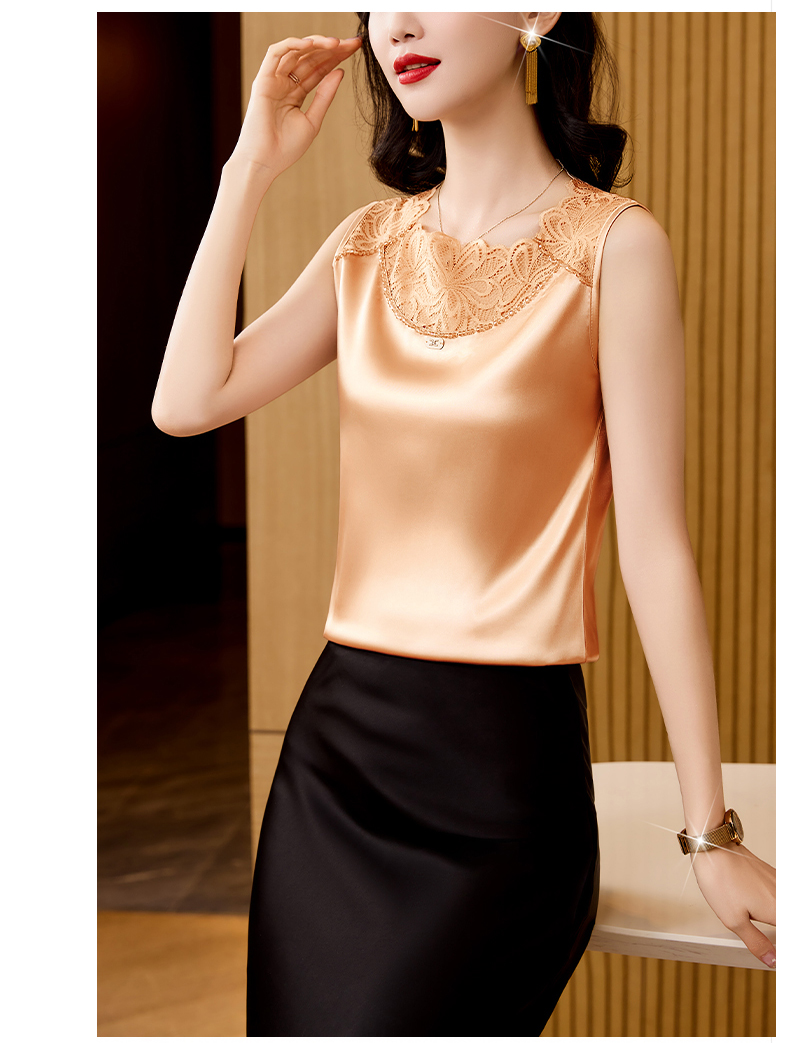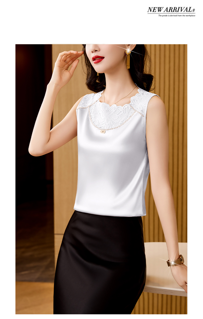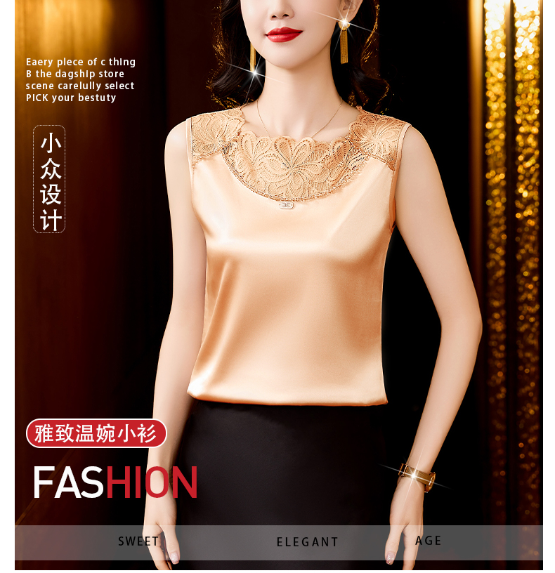 MY17393# 蕾丝钉珠拼接时尚洋气内搭小衫背心女裝貨源服裝批發