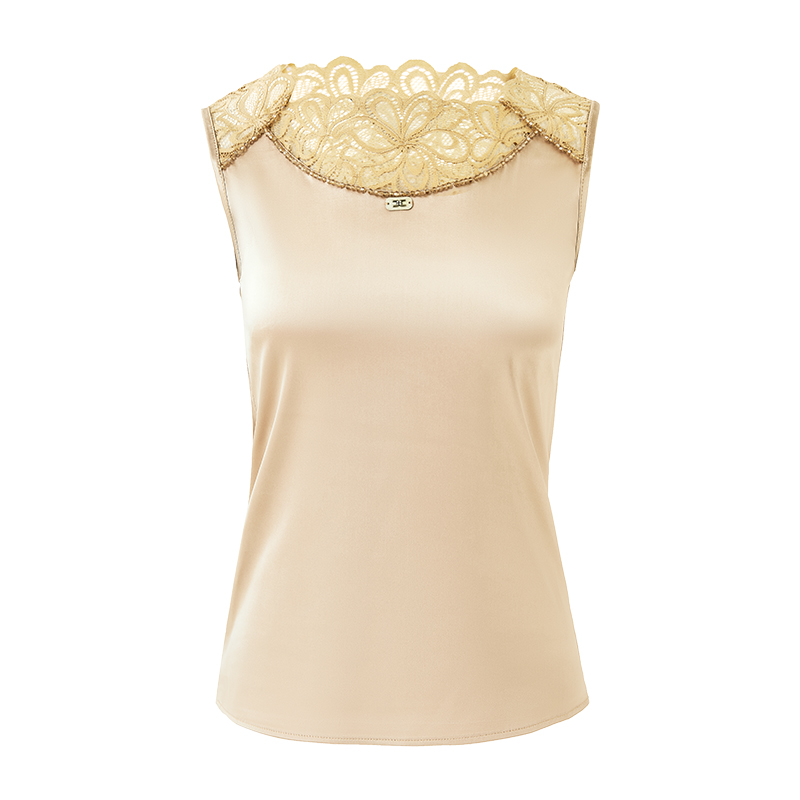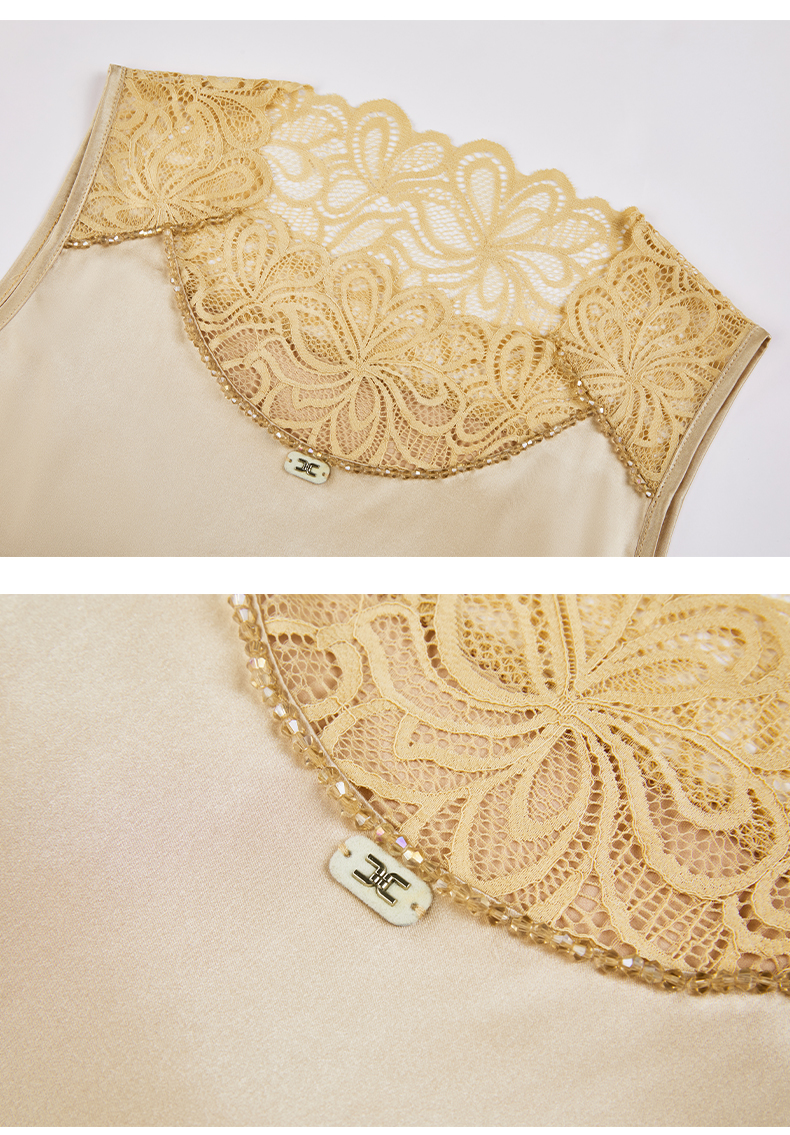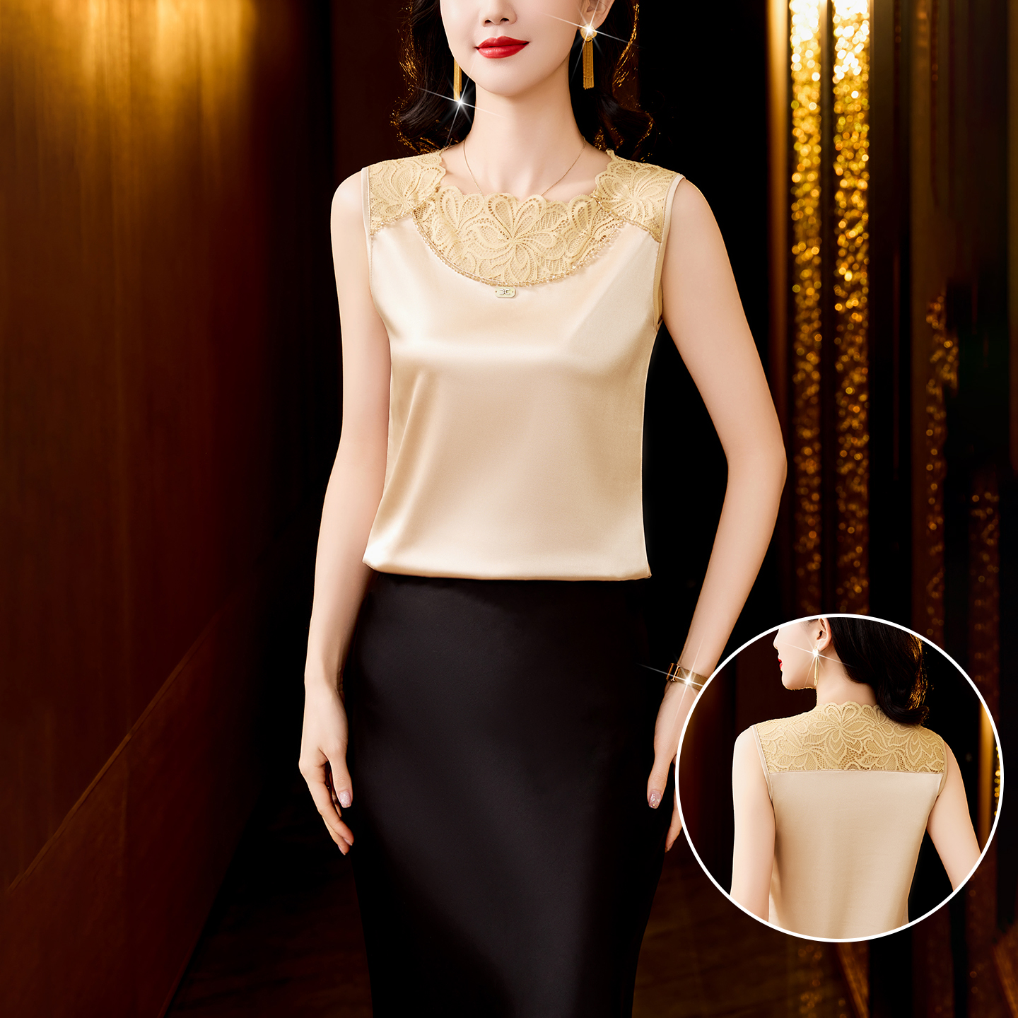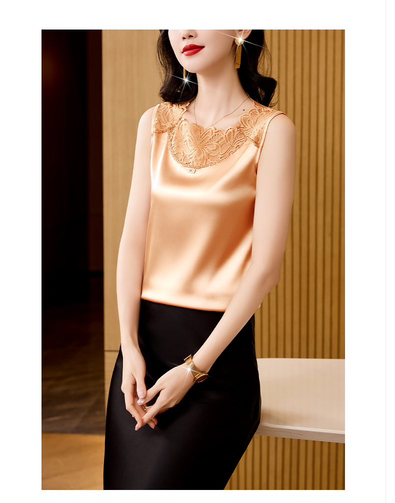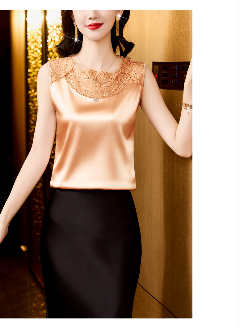 MY17393# 蕾丝钉珠拼接时尚洋气内搭小衫背心女裝貨源服裝批發