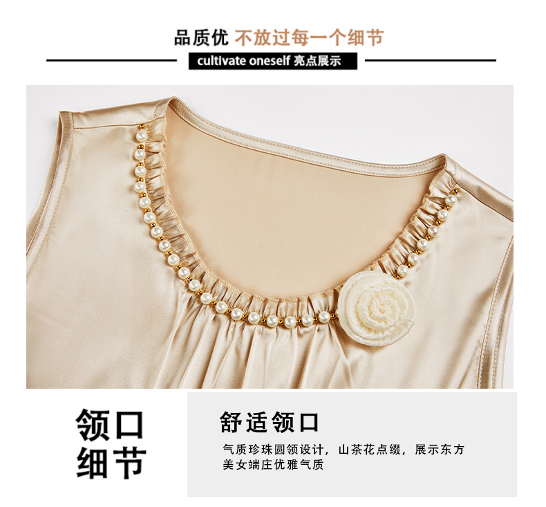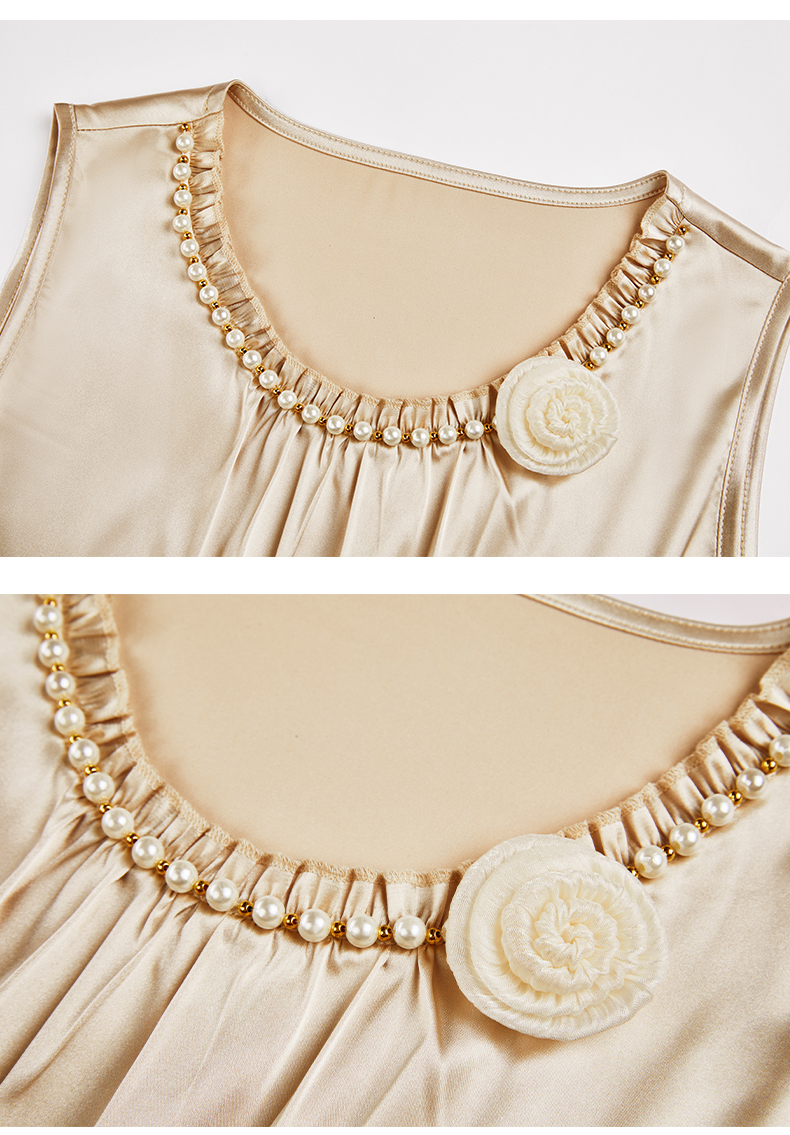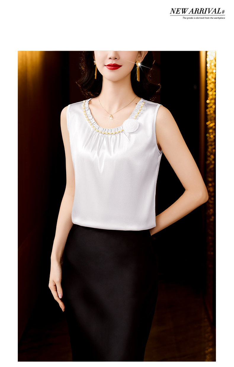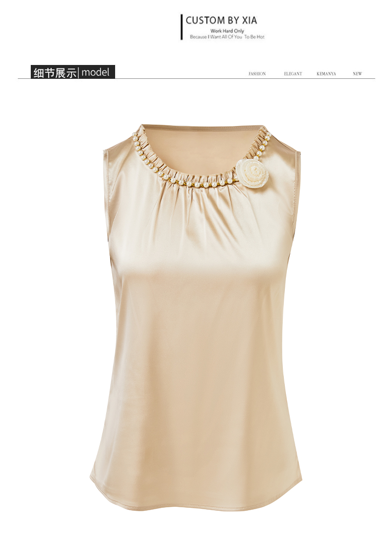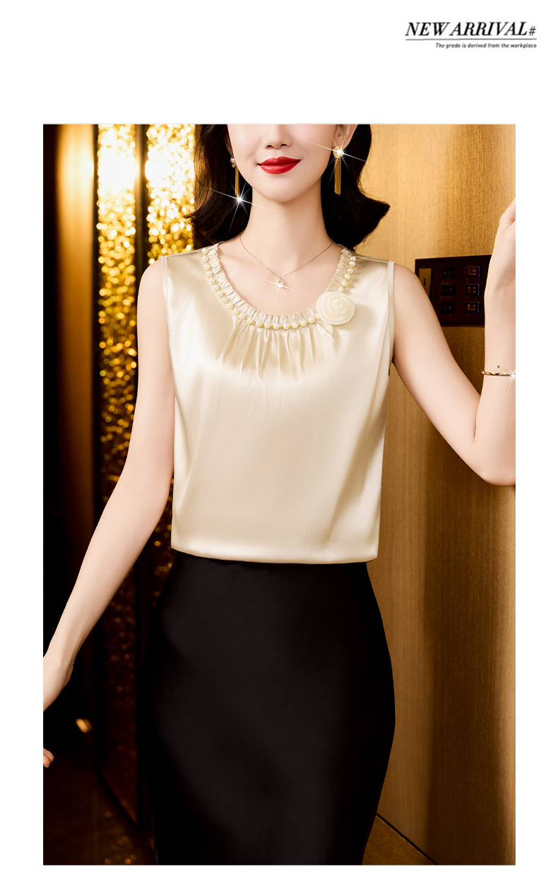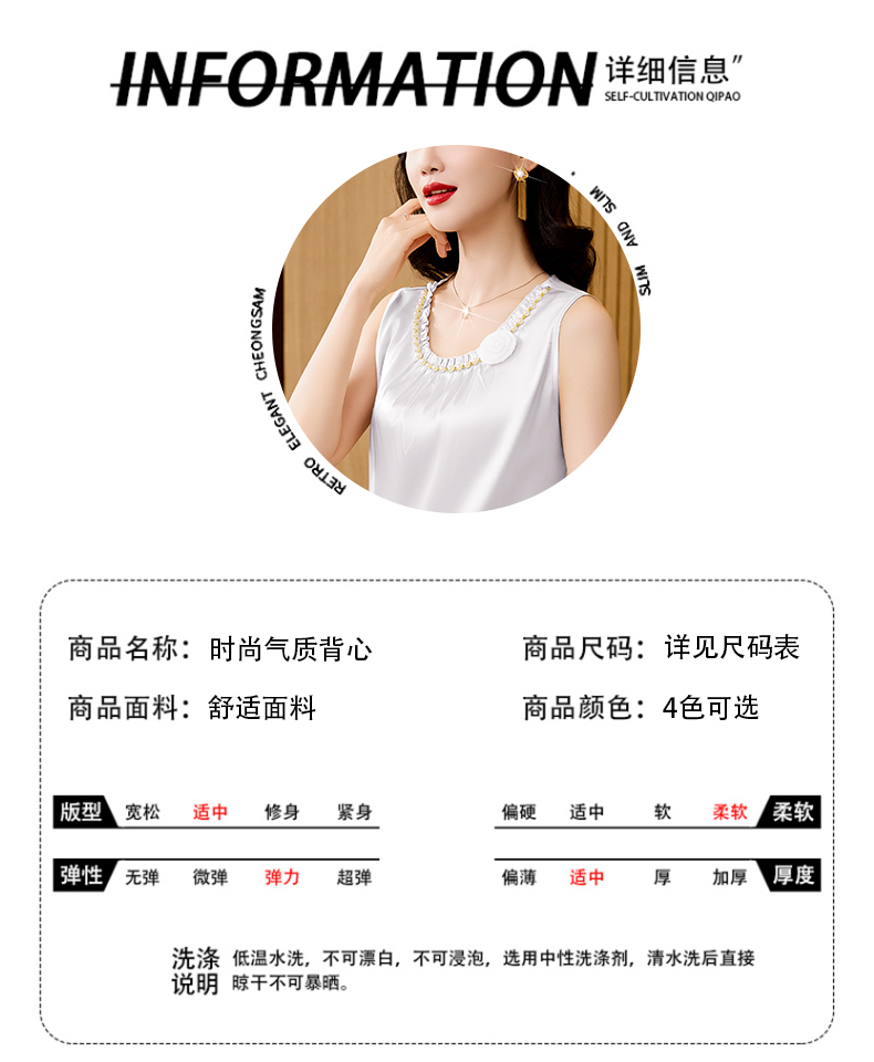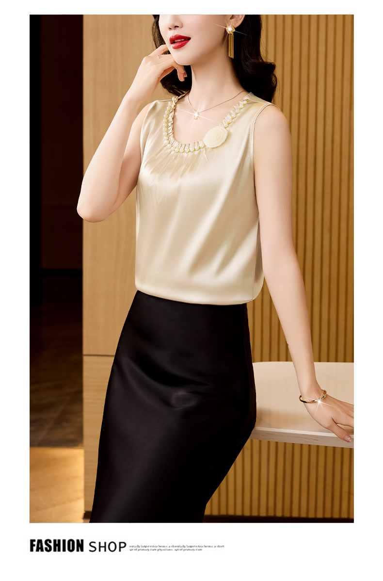 MY17394# 圆领钉珠花朵新款时尚洋气内搭缎面背心女裝貨源服裝批發