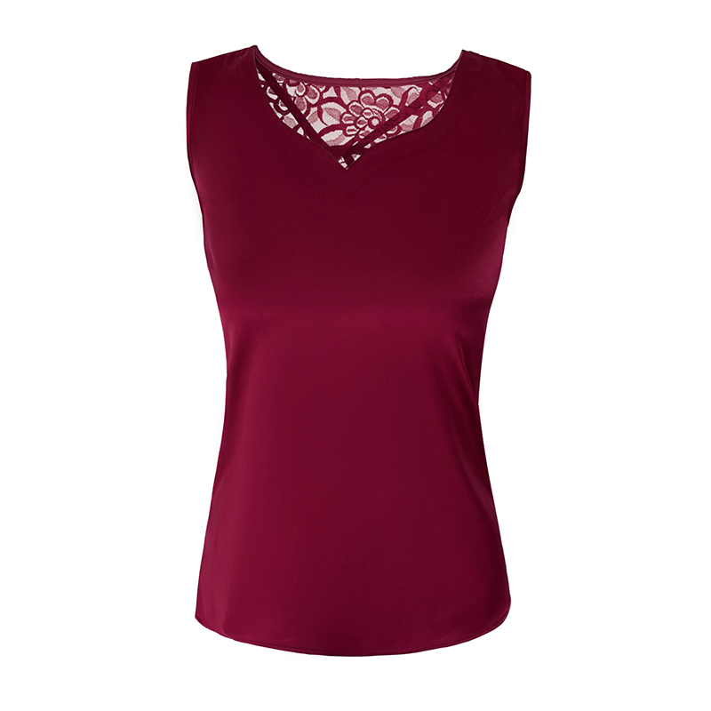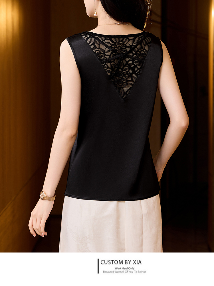 MY17407# 新款气质百搭桃心领蕾丝拼接网纱背心女裝貨源服裝批發