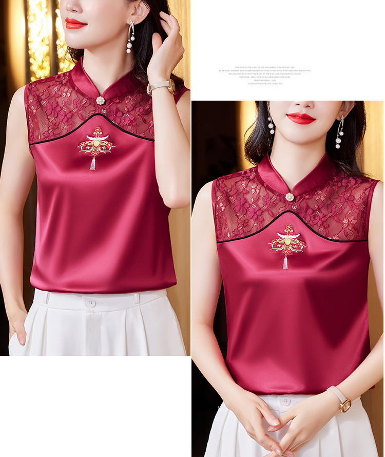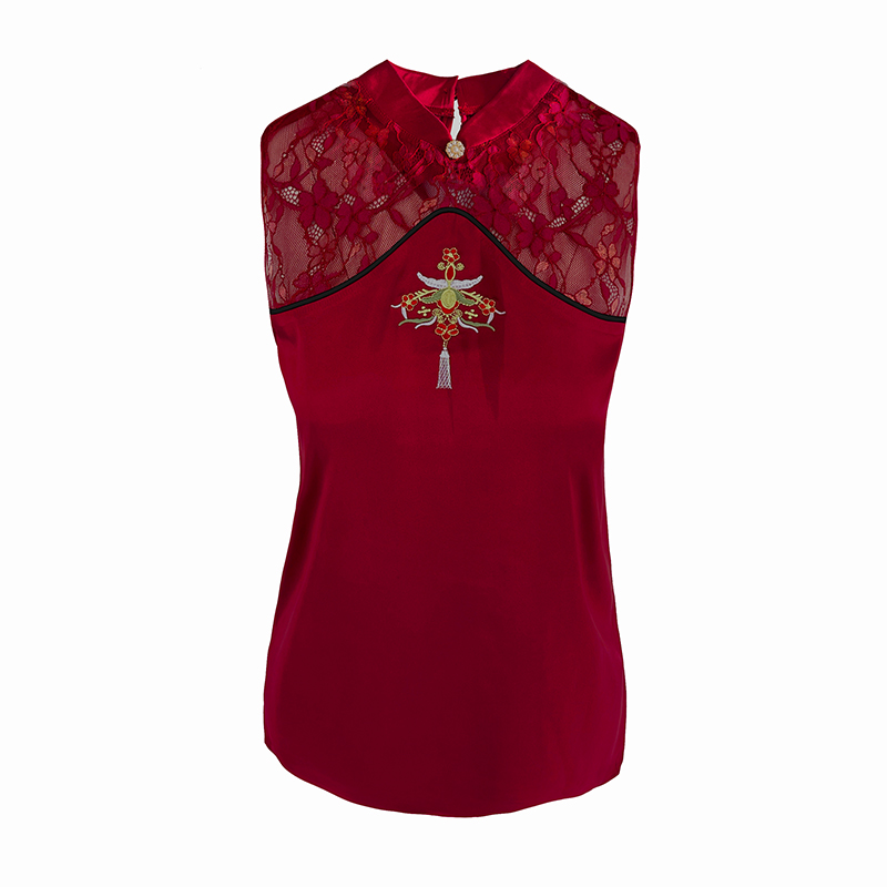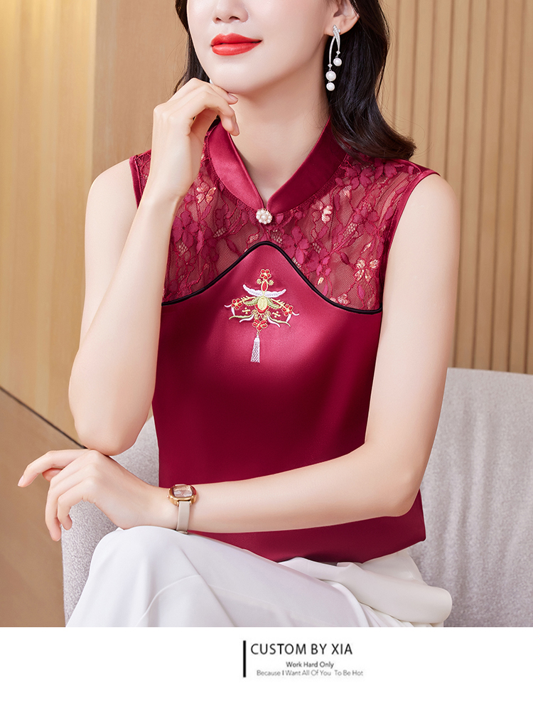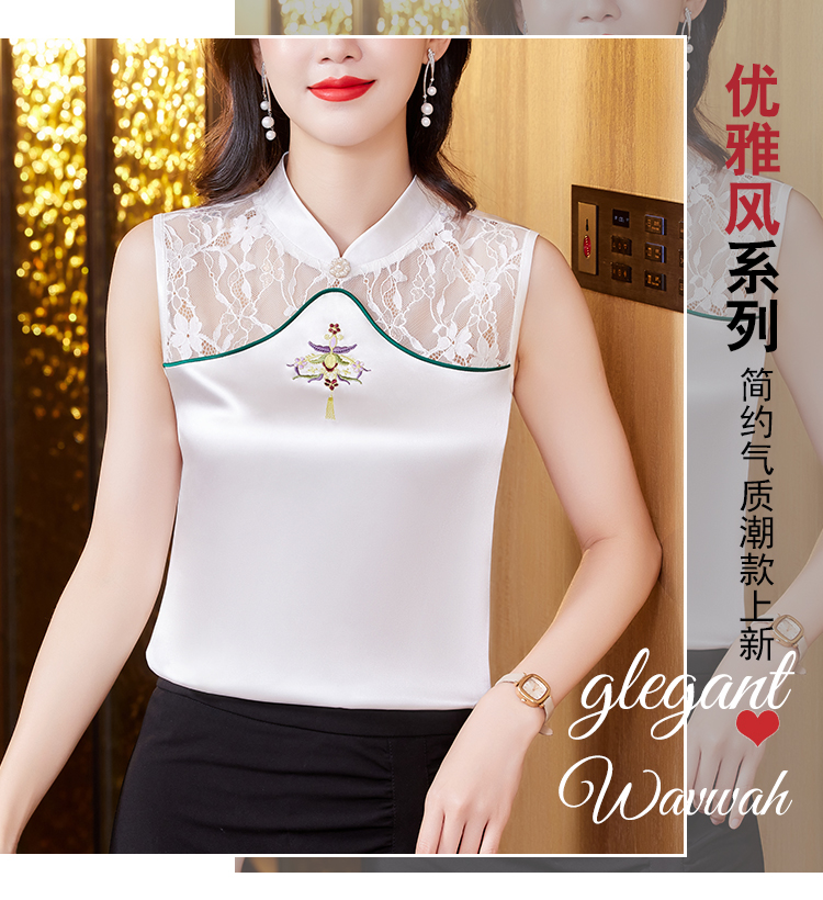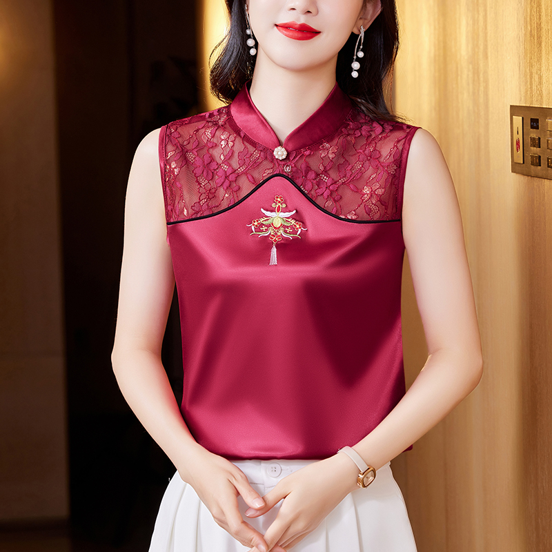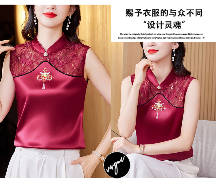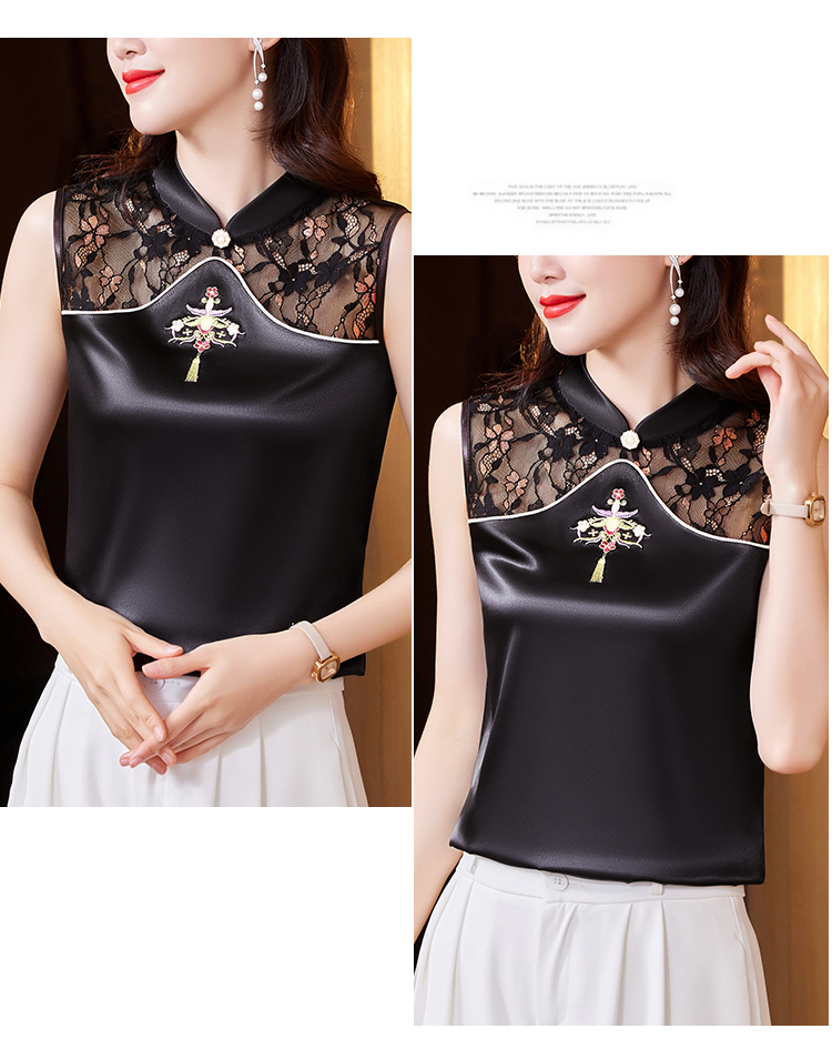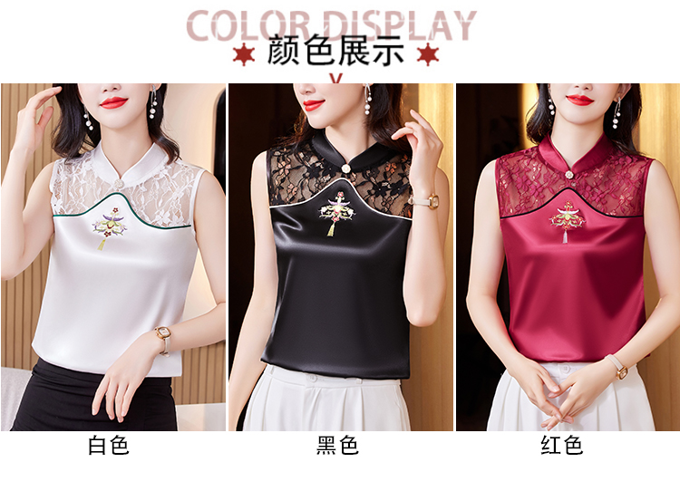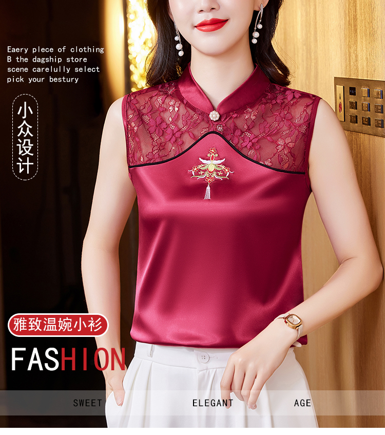 MY17411# 新款中国风绣花小背心内搭春夏真丝缎面大码无袖上衣女裝貨源服裝批發
