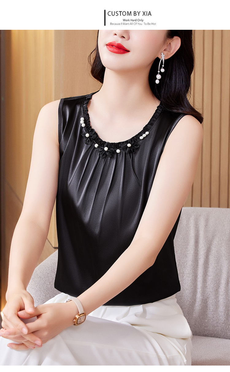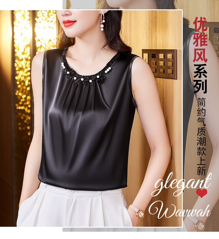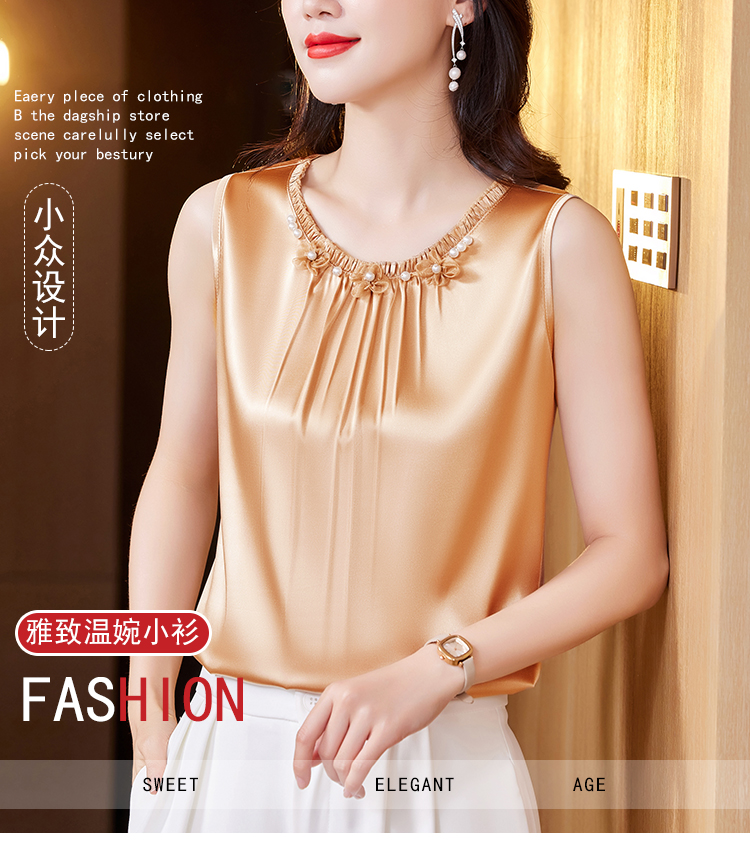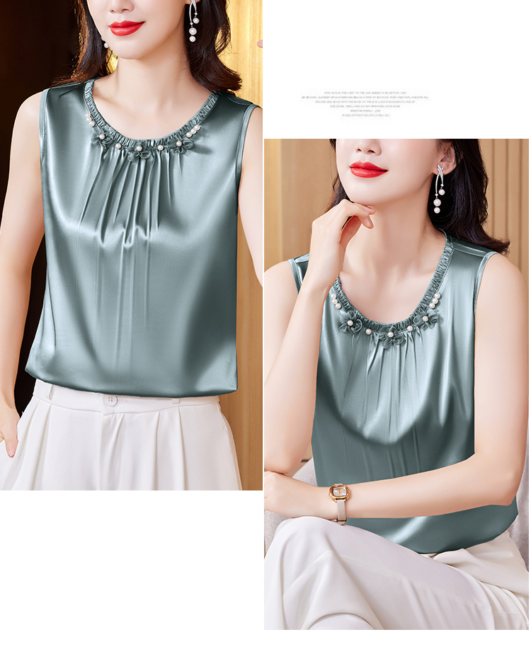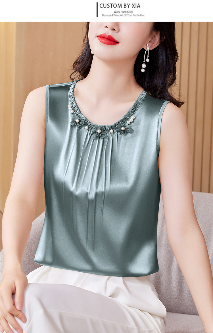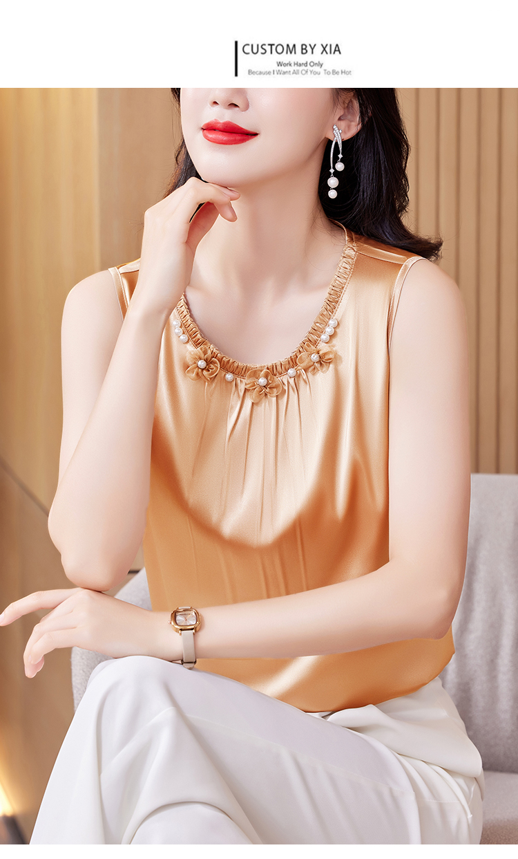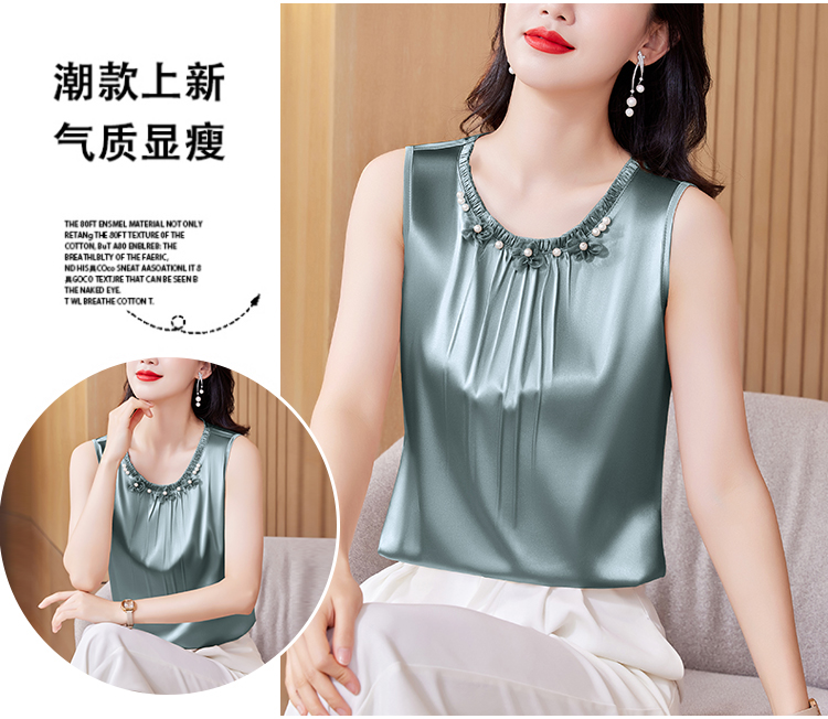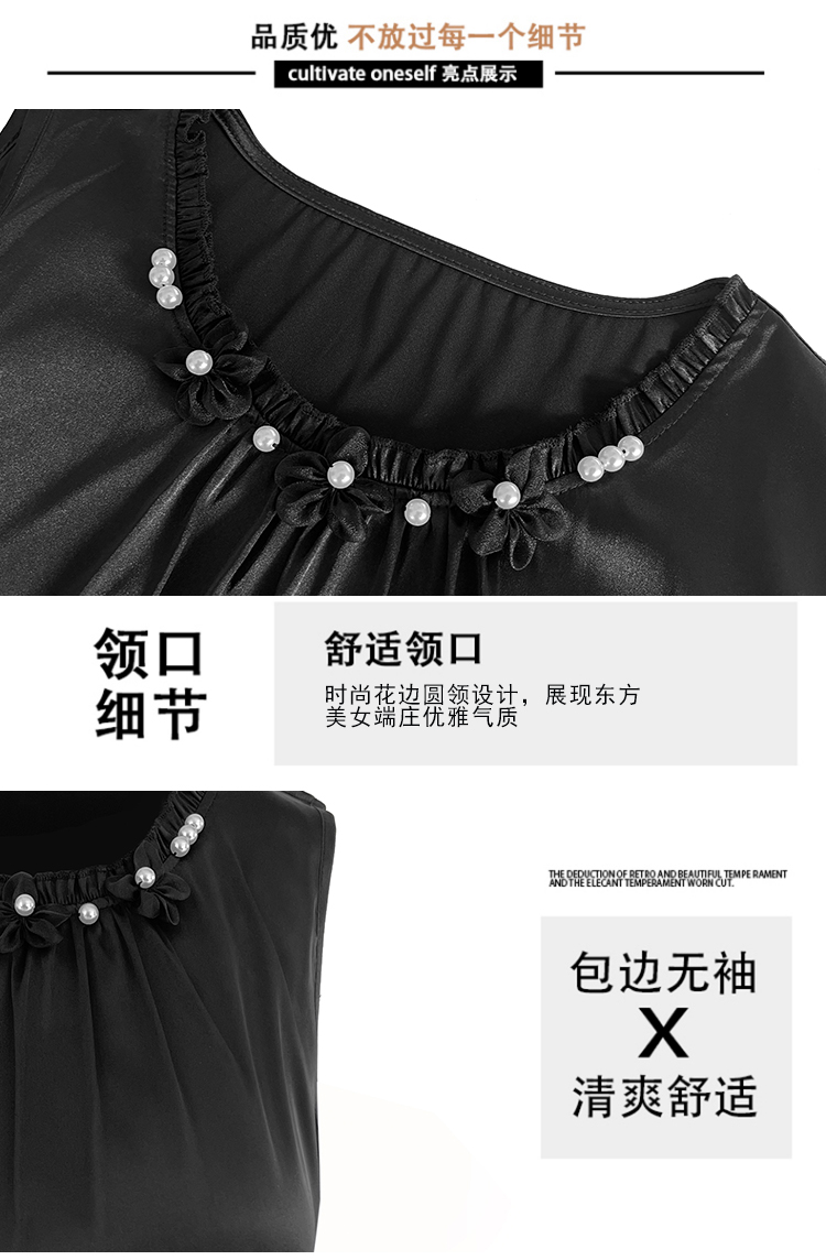 MY17412# 新款订珠花朵小背心内搭春夏真丝缎面大码外穿无袖上衣女裝貨源服裝批發