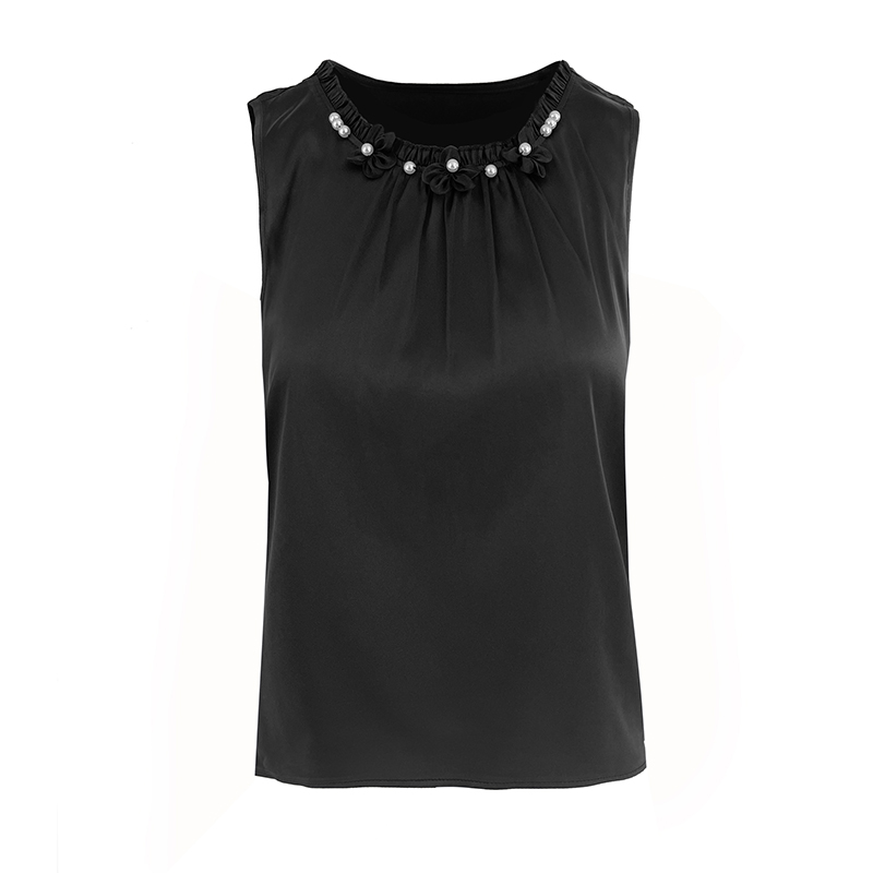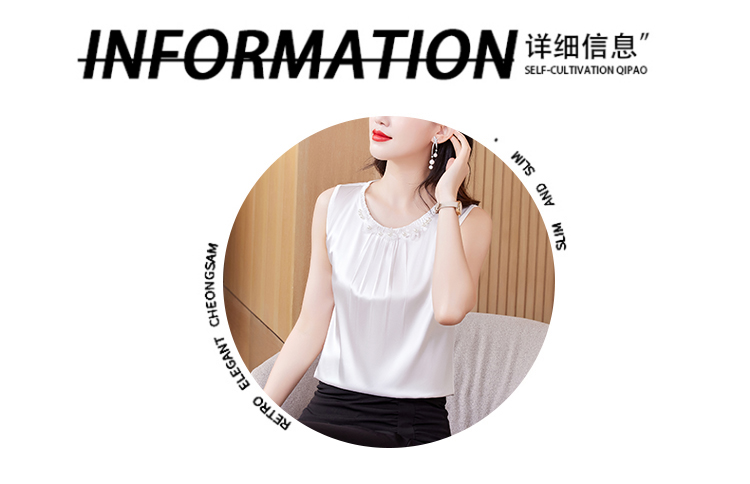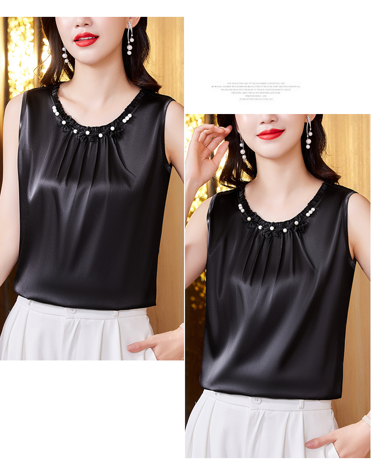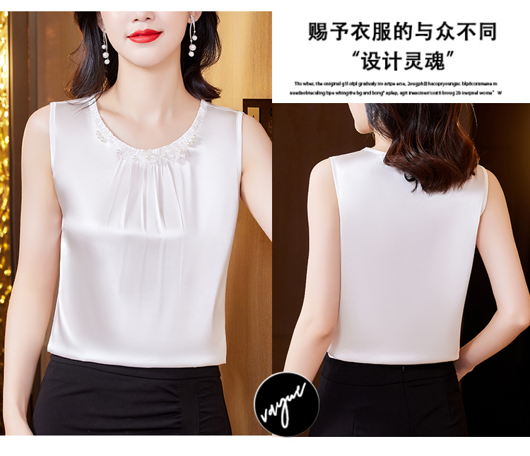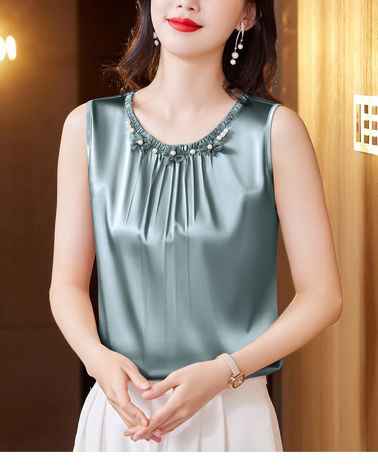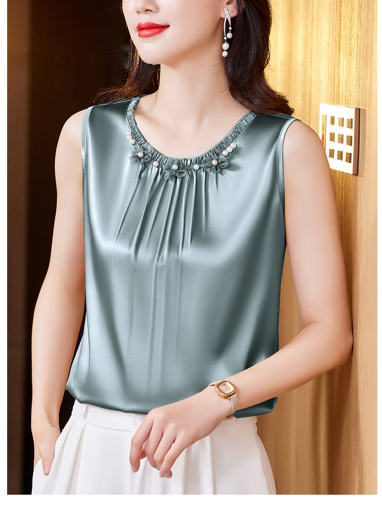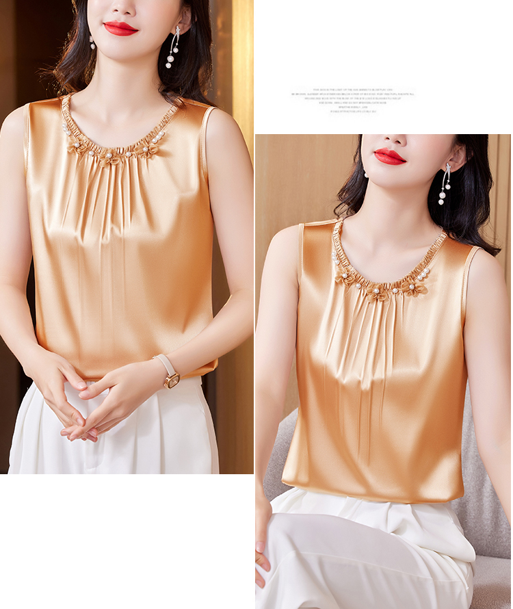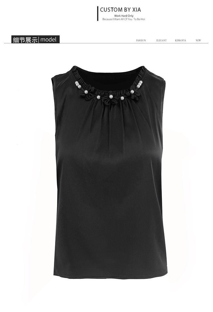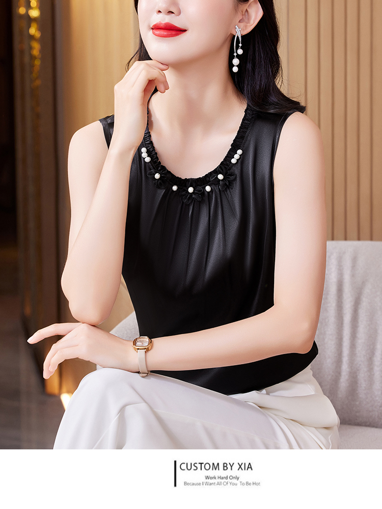 MY17412# 新款订珠花朵小背心内搭春夏真丝缎面大码外穿无袖上衣女裝貨源服裝批發