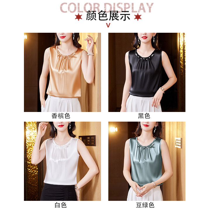 MY17409# 新款烫钻小背心内搭春夏真丝缎面大码外穿无袖上衣女裝貨源服...