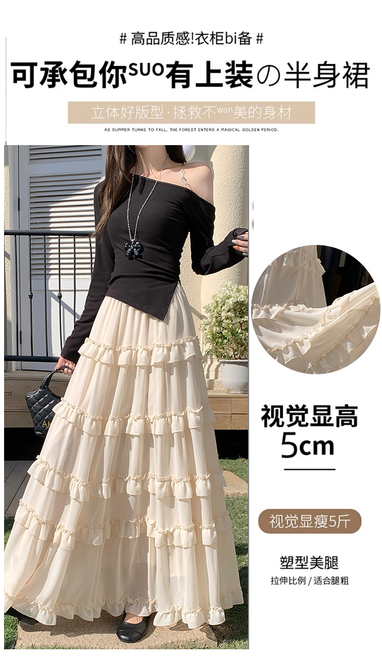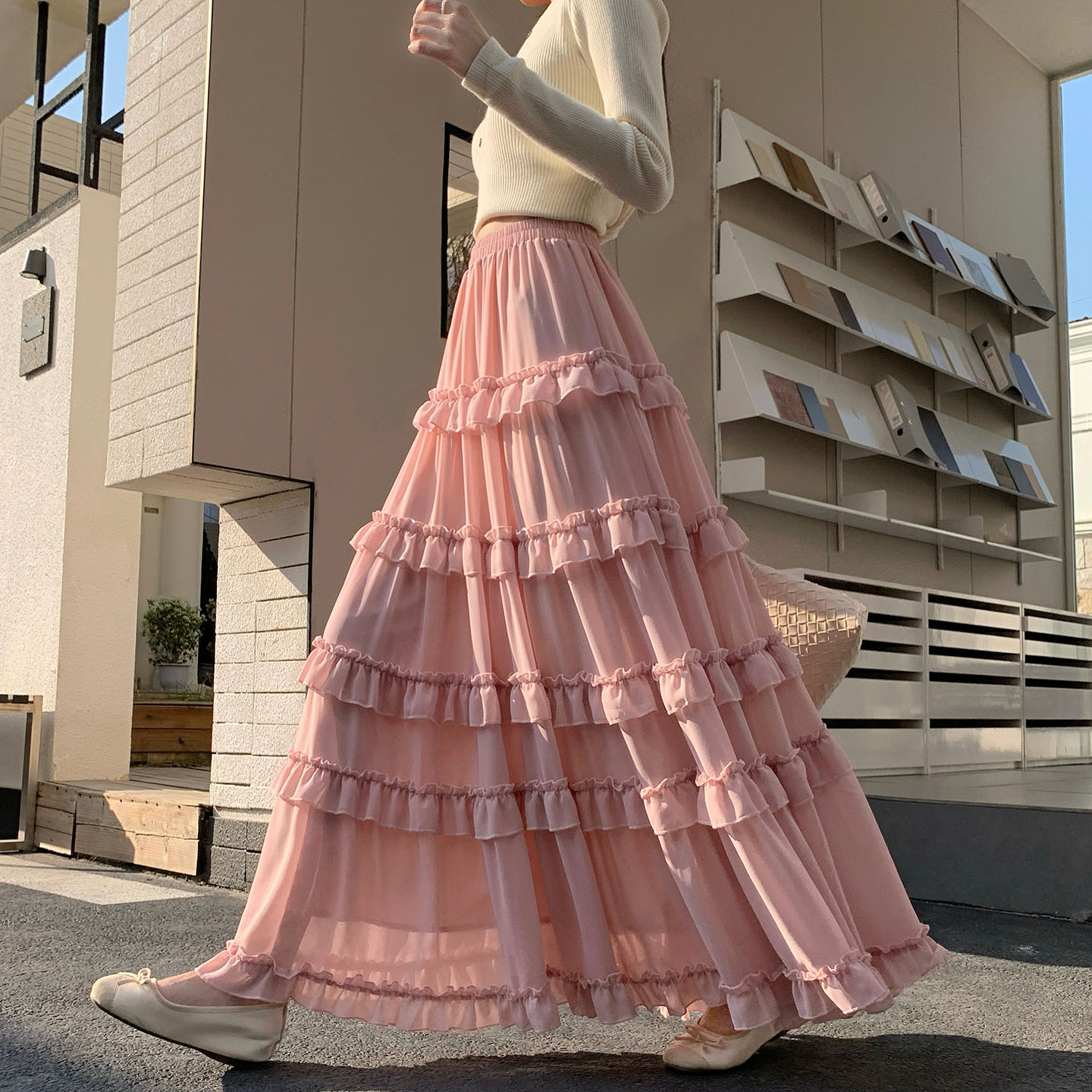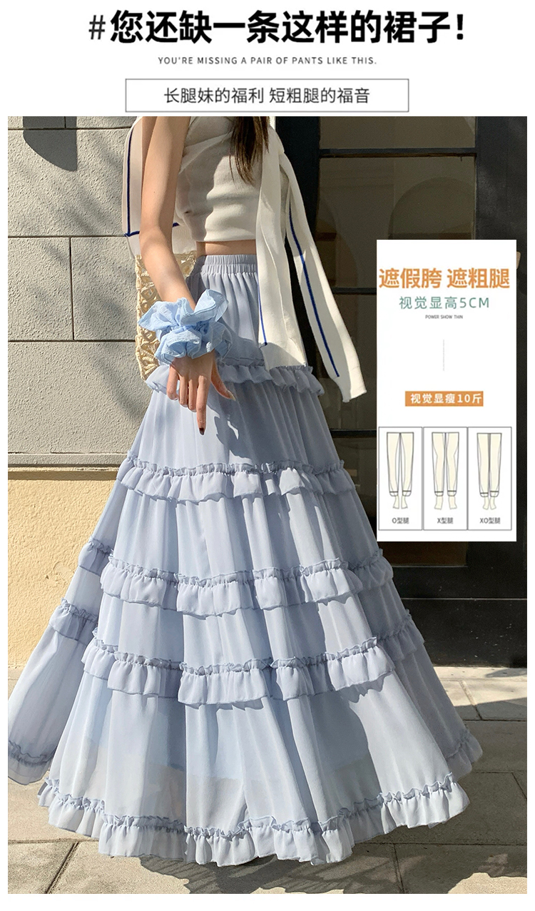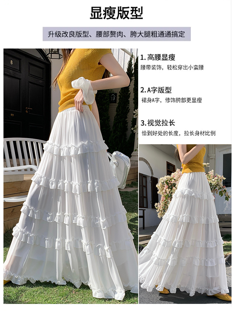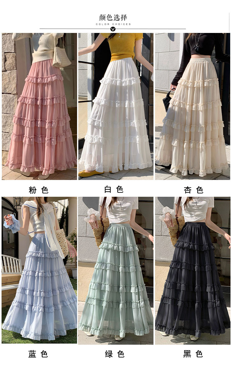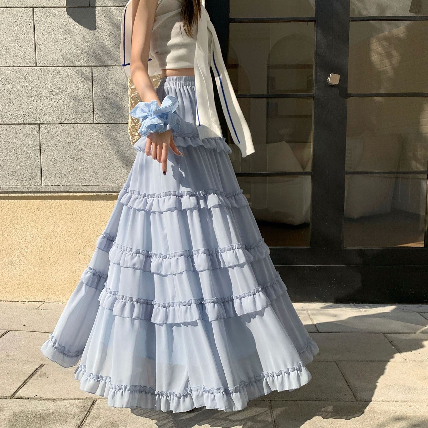 MY17413# 荷叶边大摆蛋糕裙高腰显瘦雪纺长裙a字仙女半身裙女裝貨源服裝批發