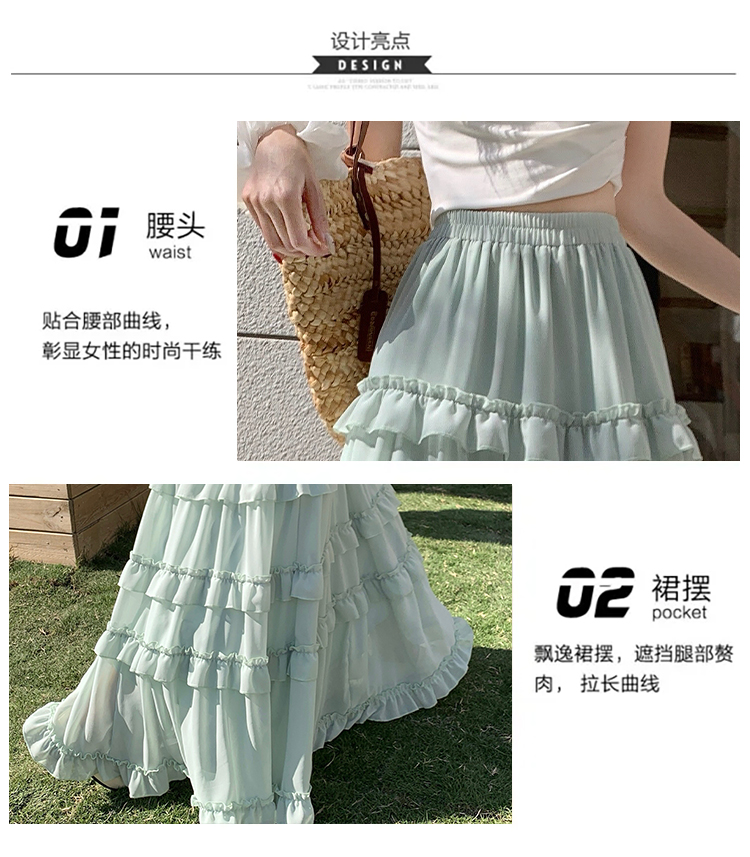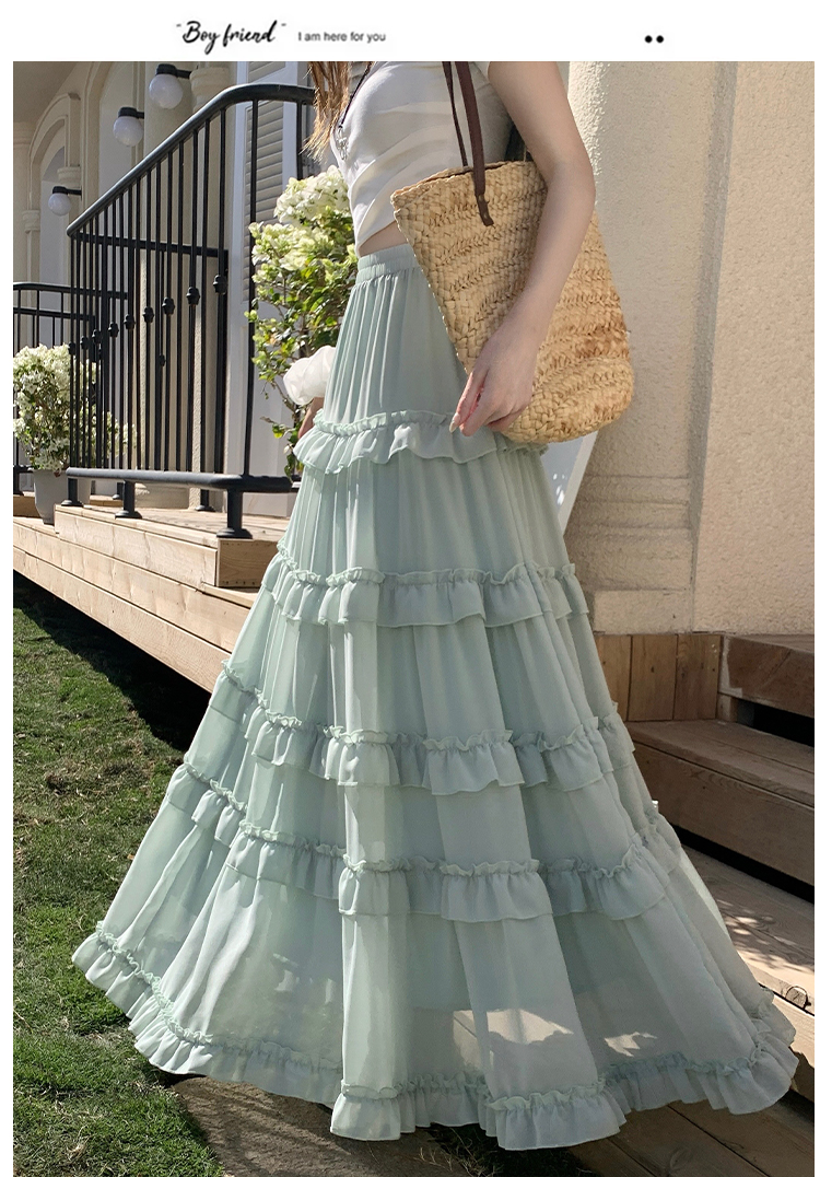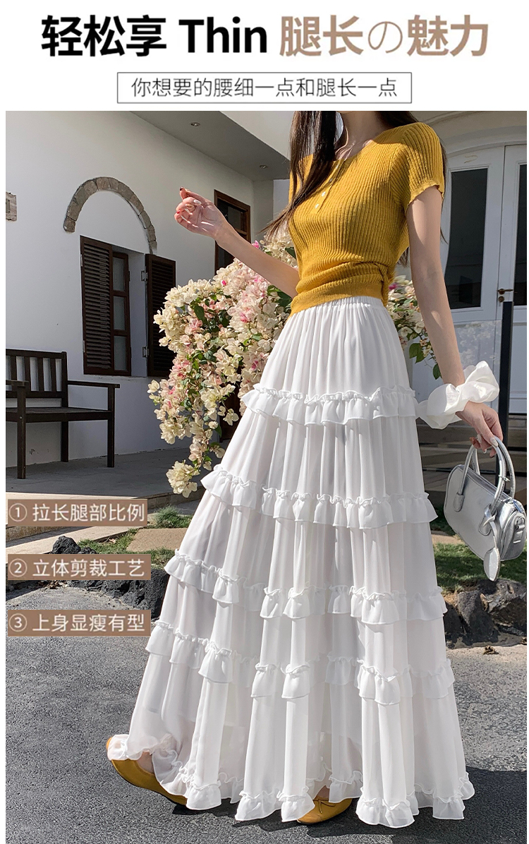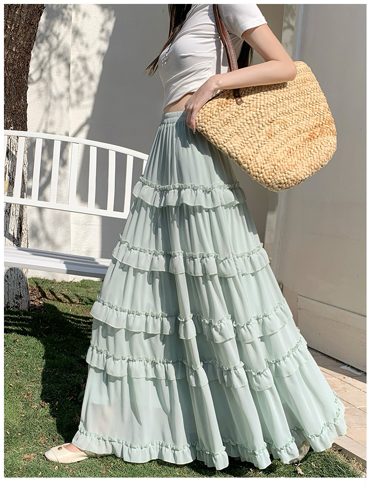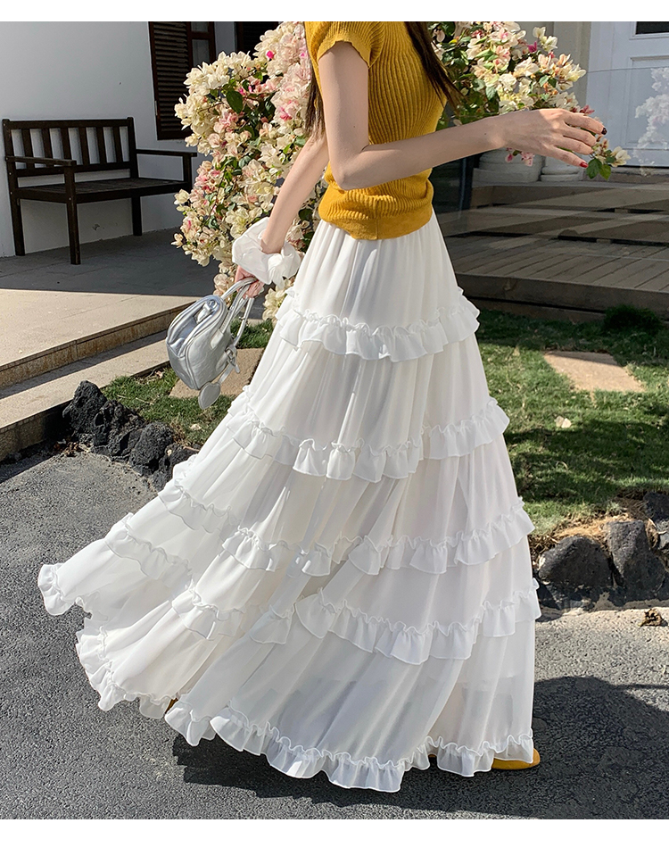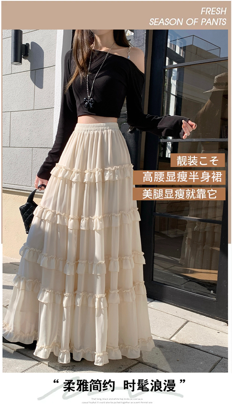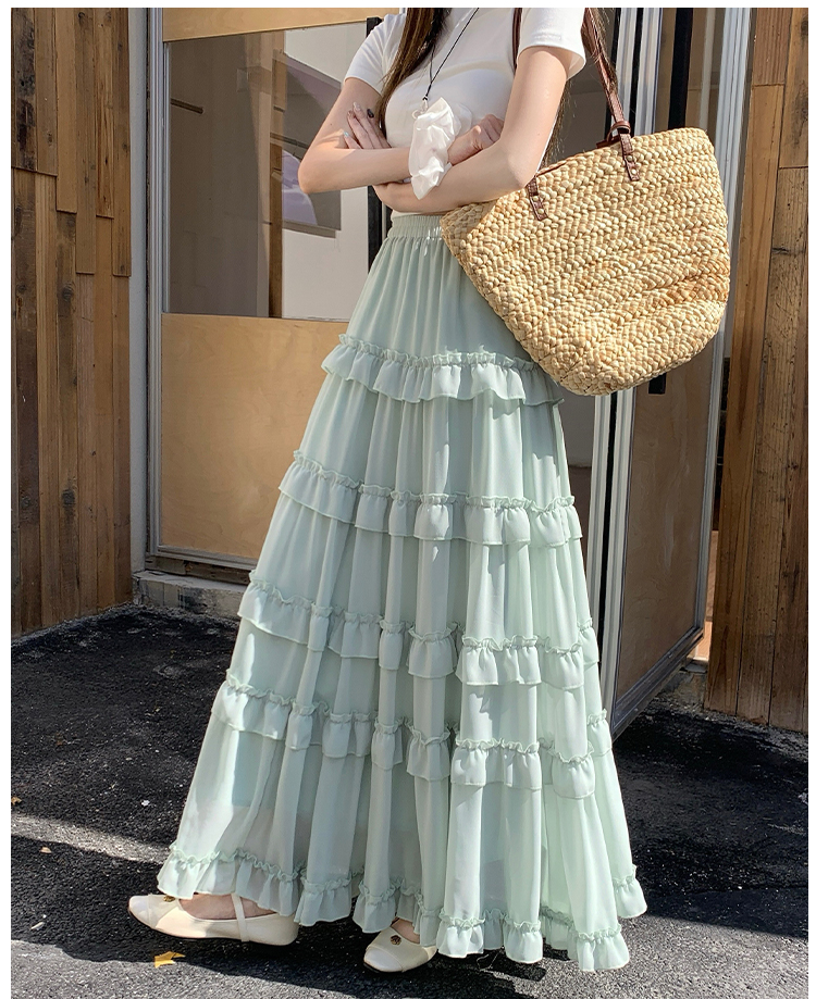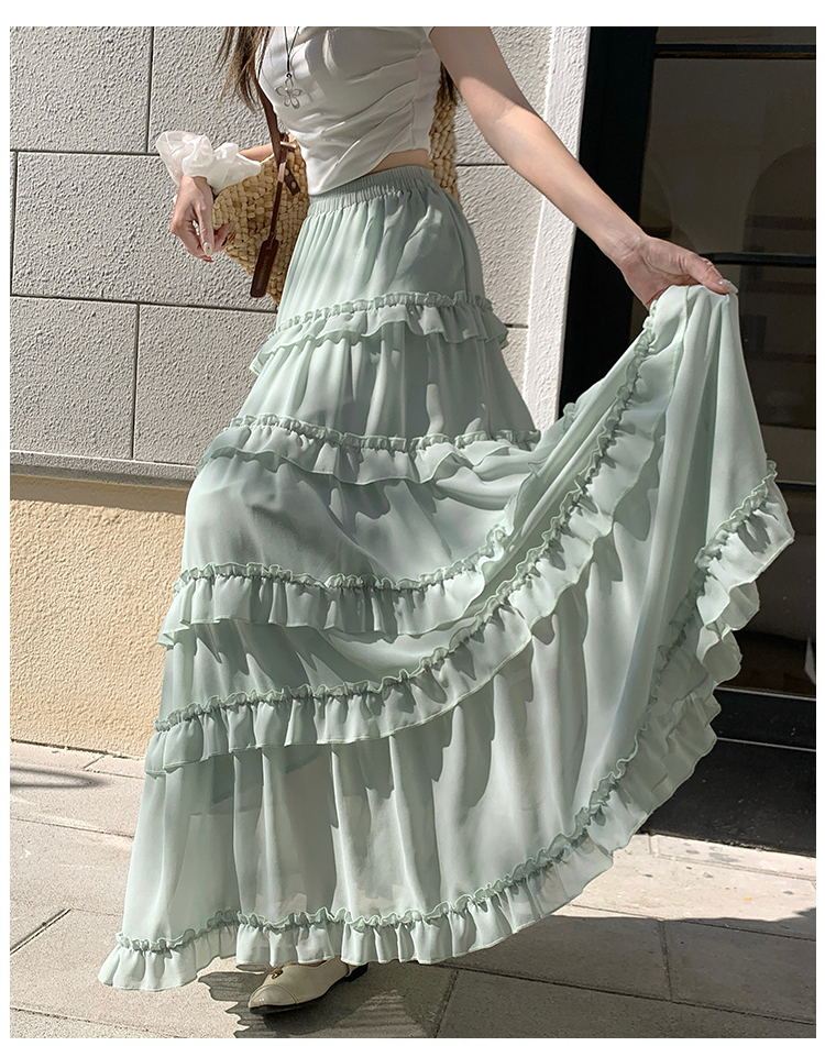 MY17413# 荷叶边大摆蛋糕裙高腰显瘦雪纺长裙a字仙女半身裙女裝貨源服裝批發