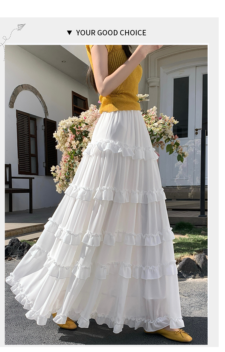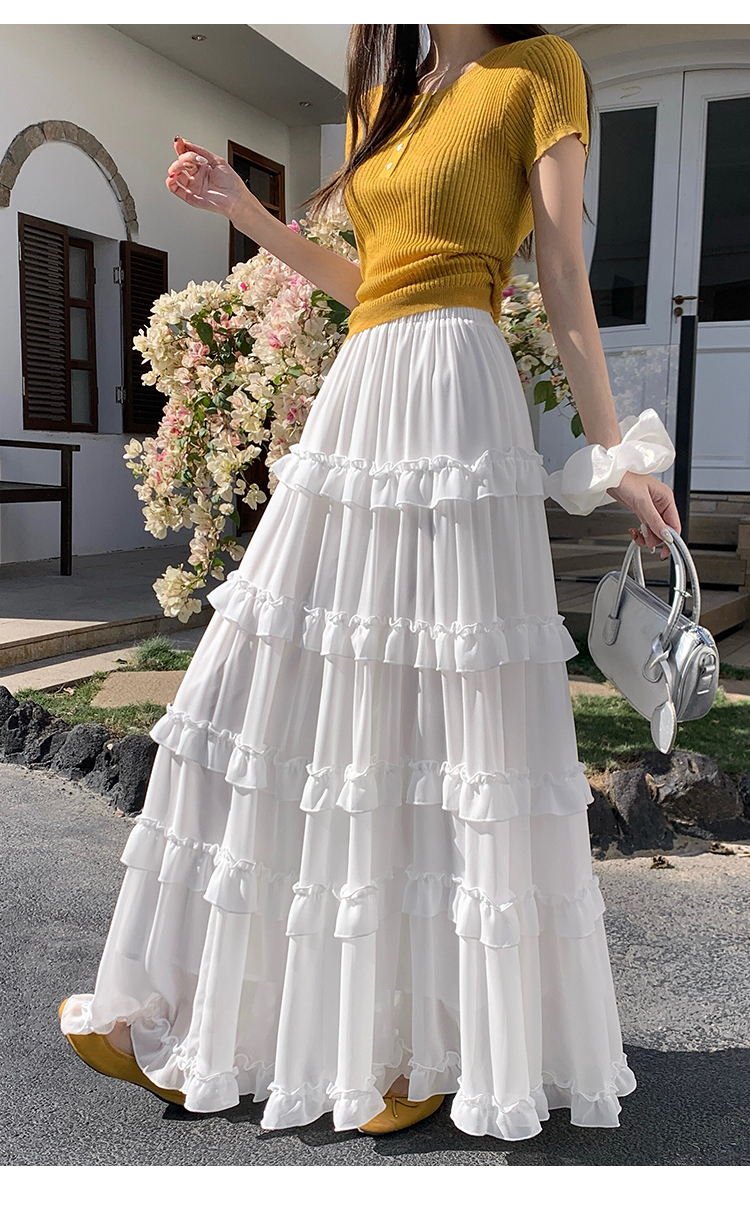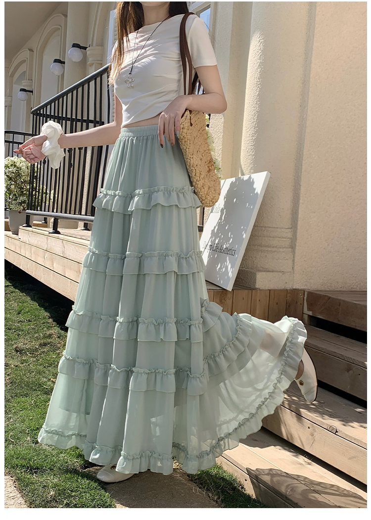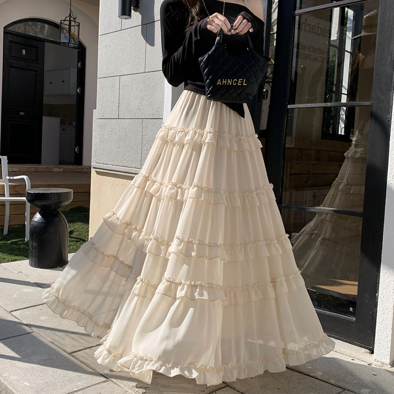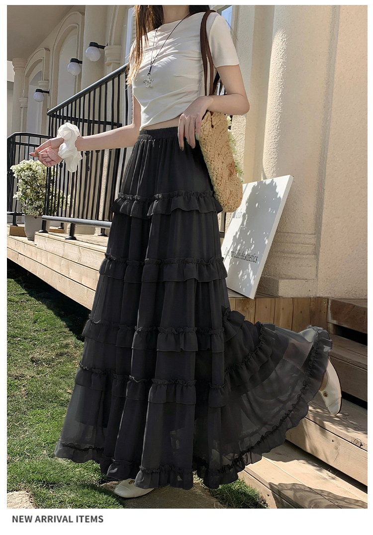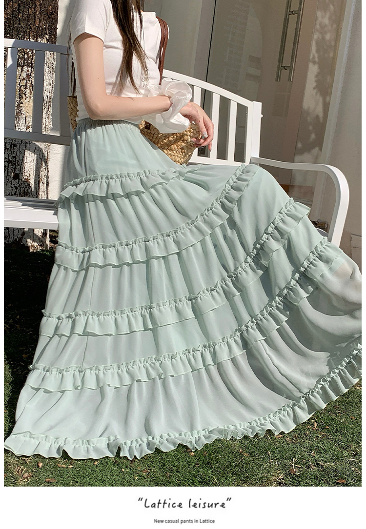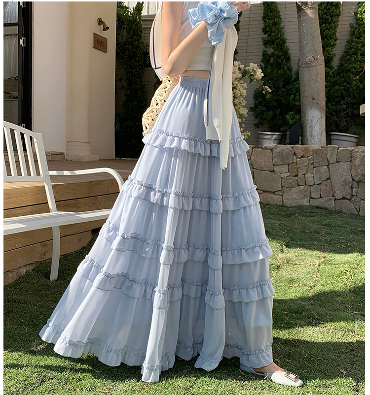 MY17413# 荷叶边大摆蛋糕裙高腰显瘦雪纺长裙a字仙女半身裙女裝貨源服裝批發