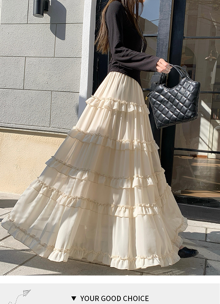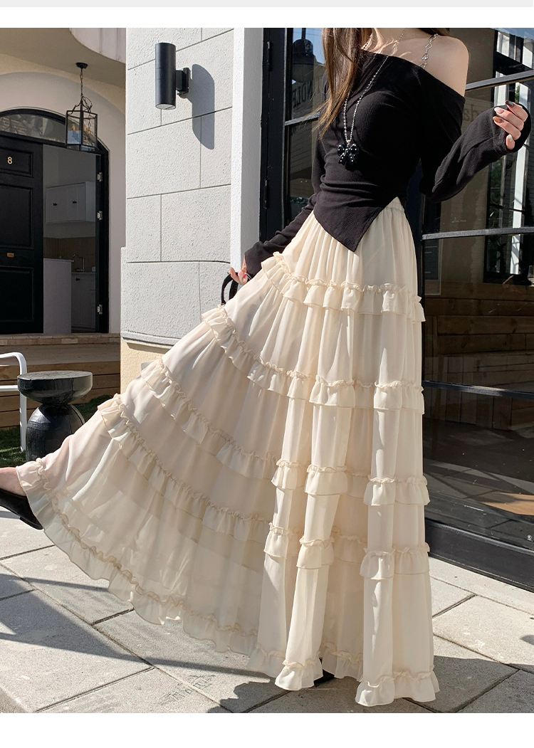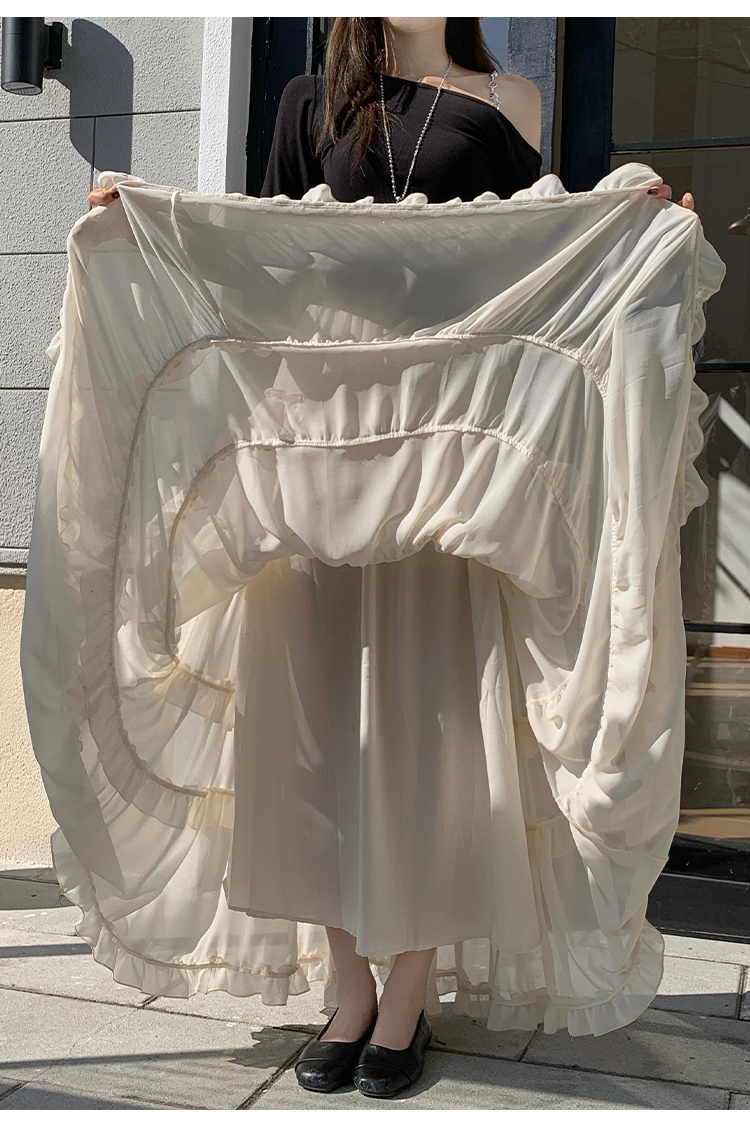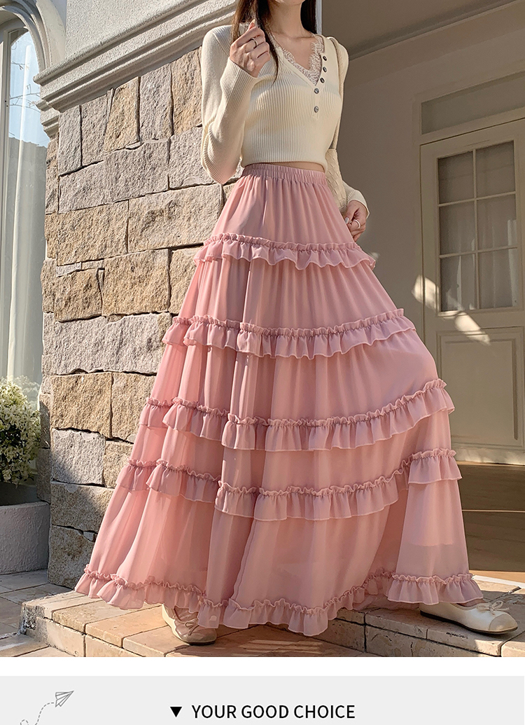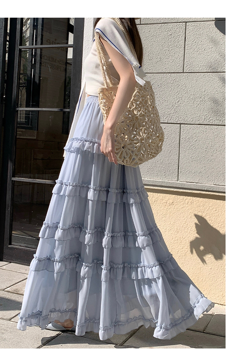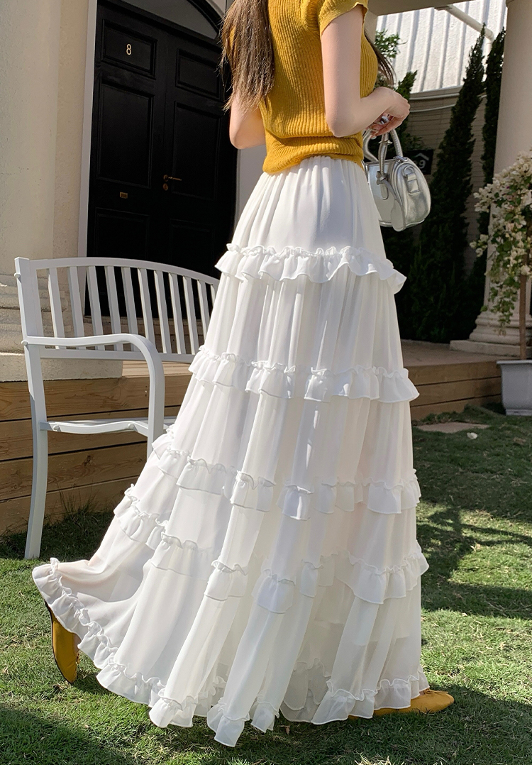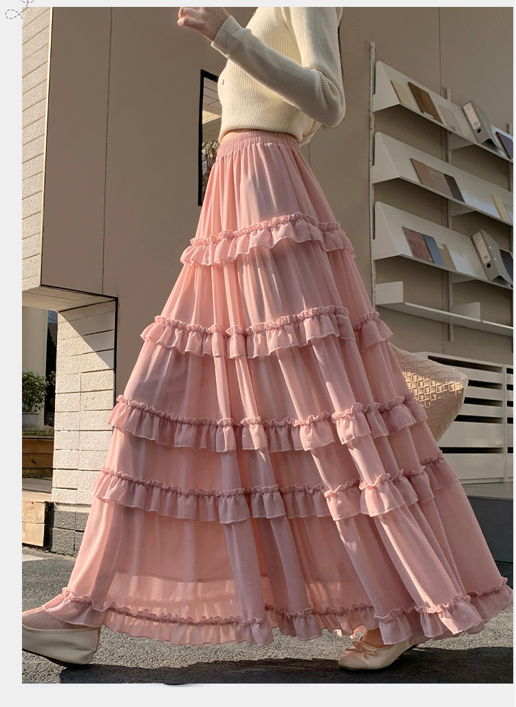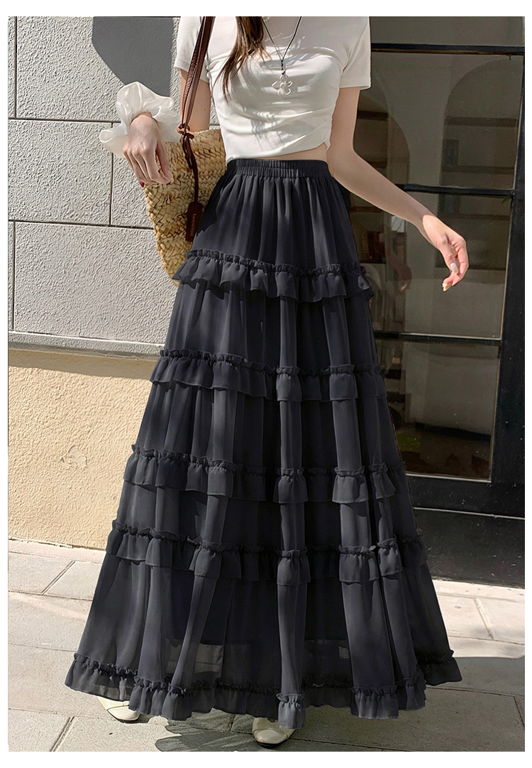 MY17413# 荷叶边大摆蛋糕裙高腰显瘦雪纺长裙a字仙女半身裙女裝貨源服裝批發