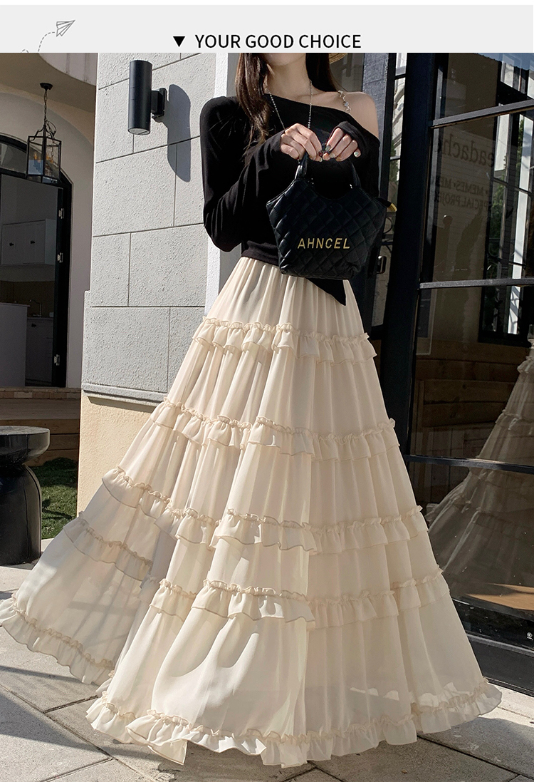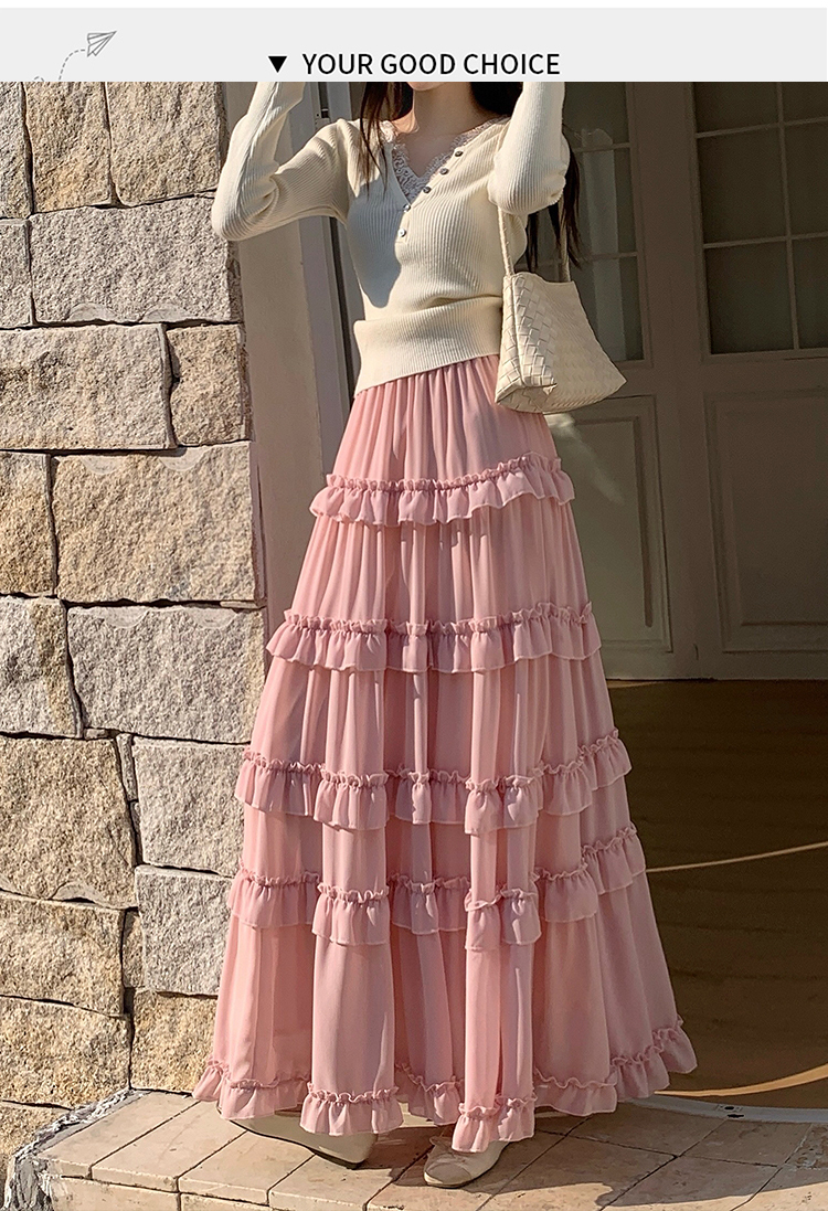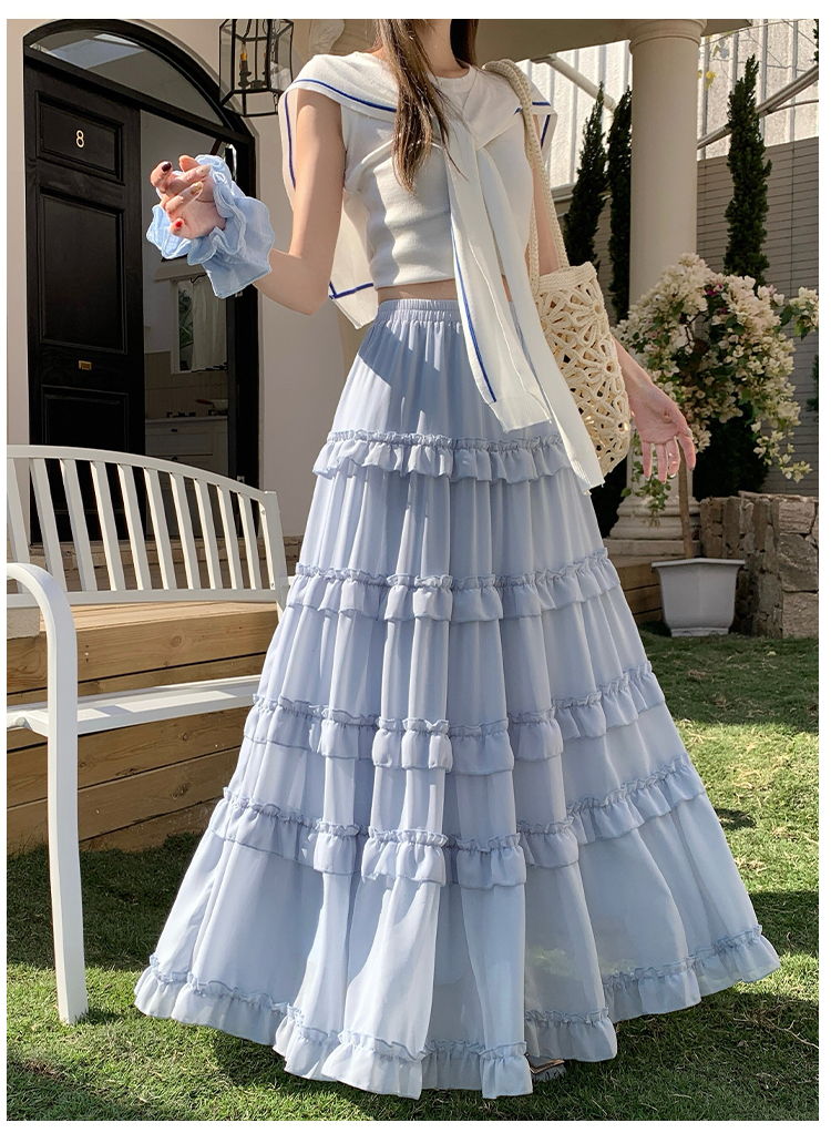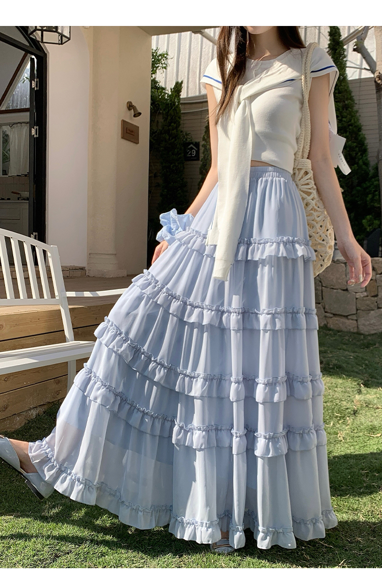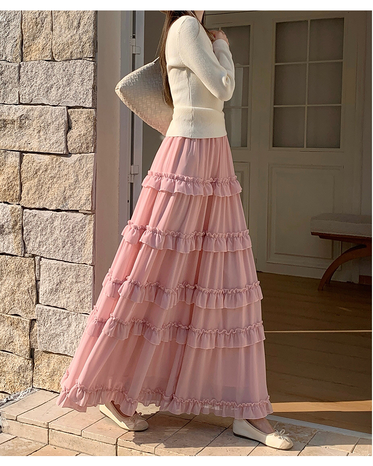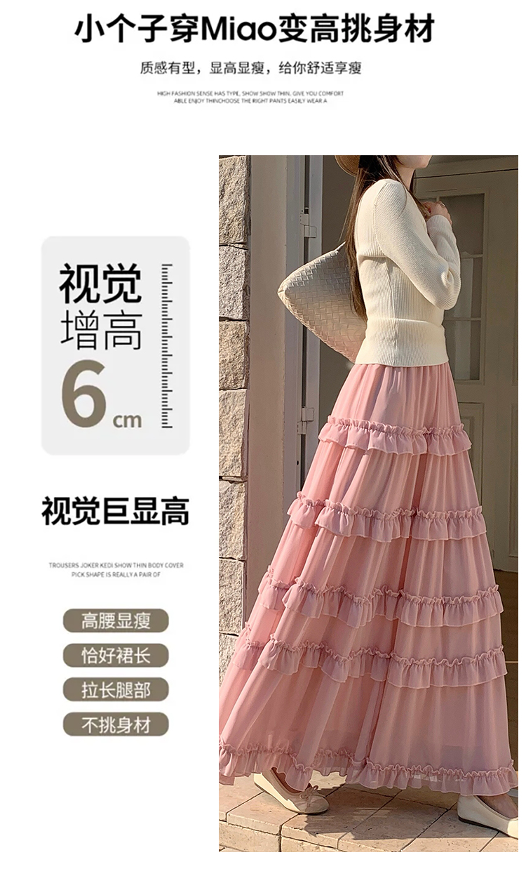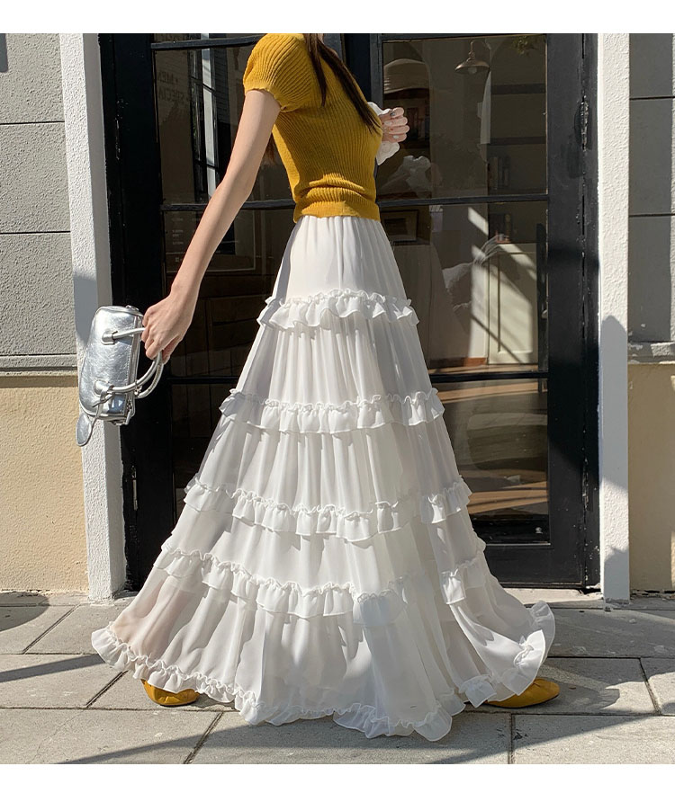 MY17413# 荷叶边大摆蛋糕裙高腰显瘦雪纺长裙a字仙女半身裙女裝貨源服裝批發