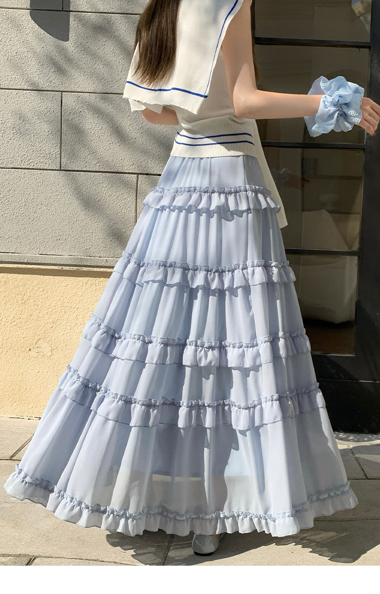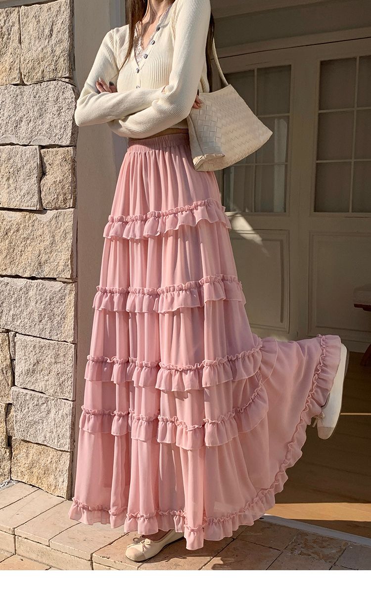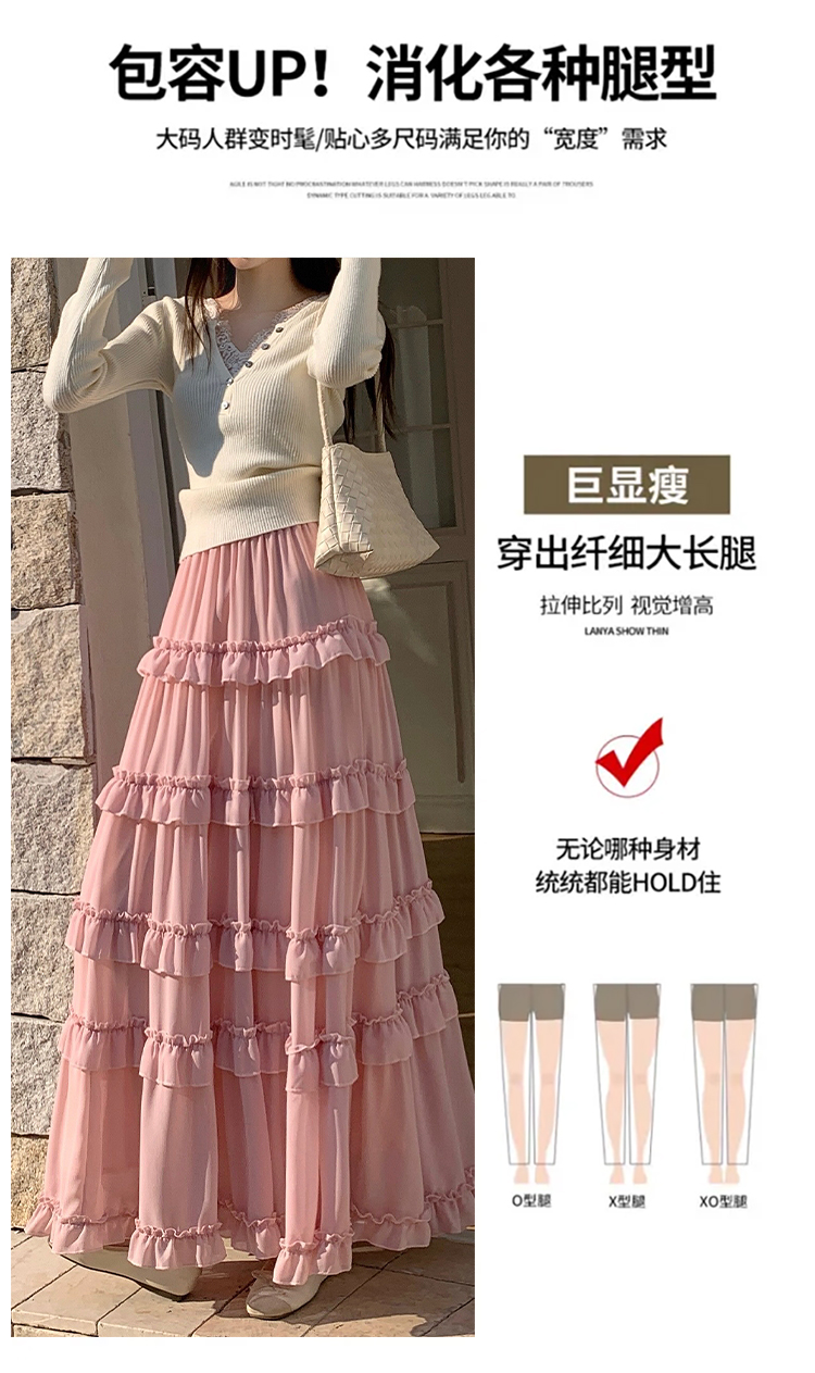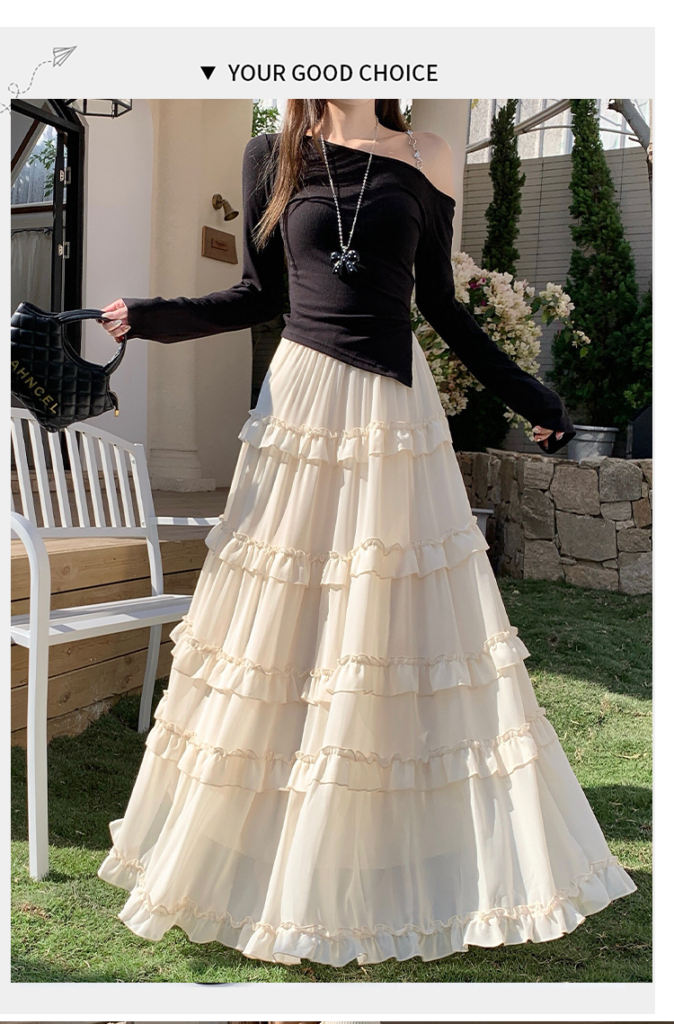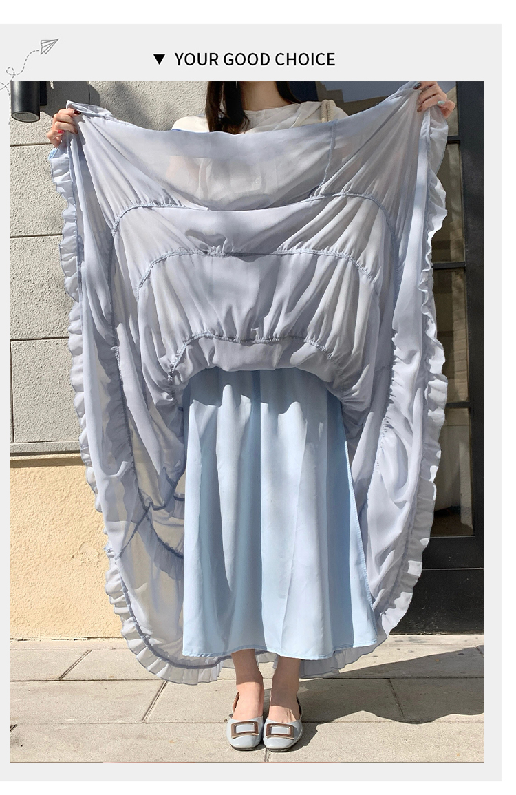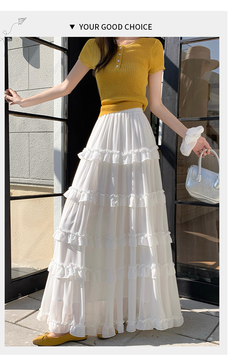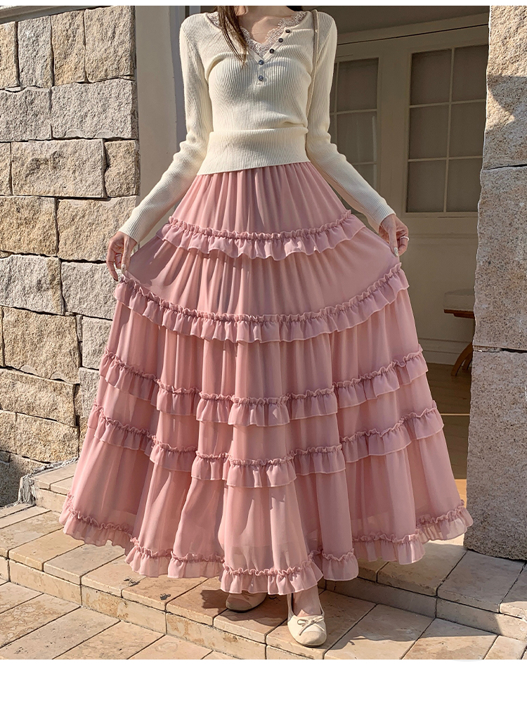 MY17413# 荷叶边大摆蛋糕裙高腰显瘦雪纺长裙a字仙女半身裙女裝貨源服裝批發