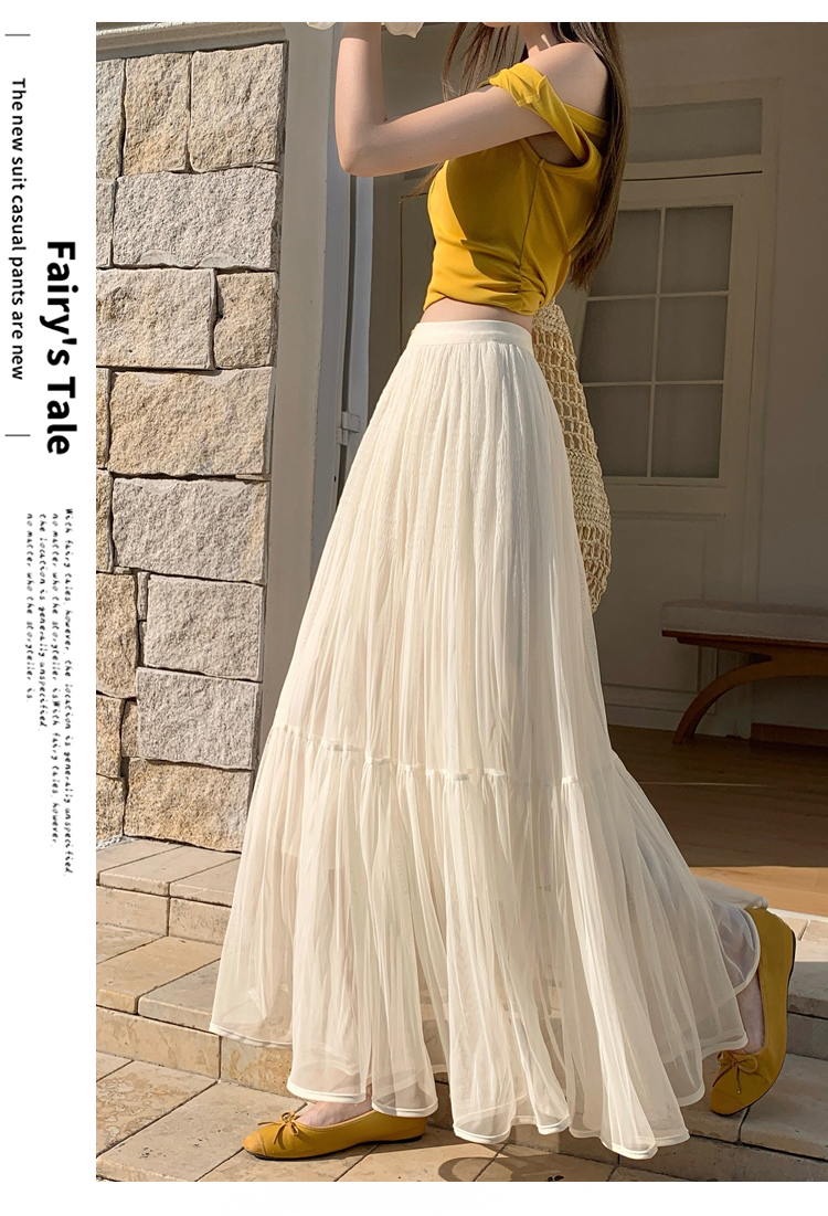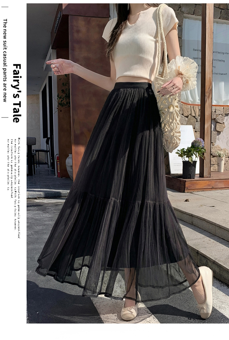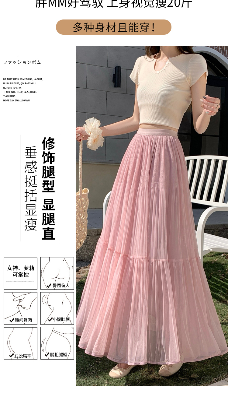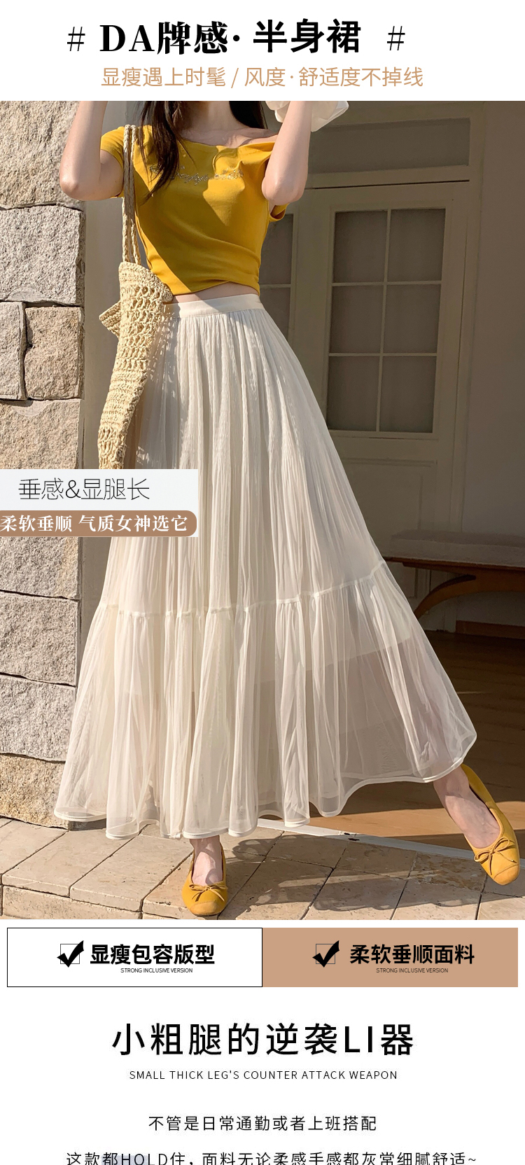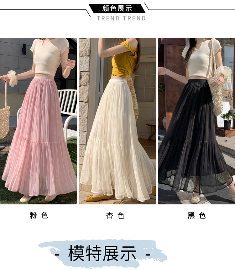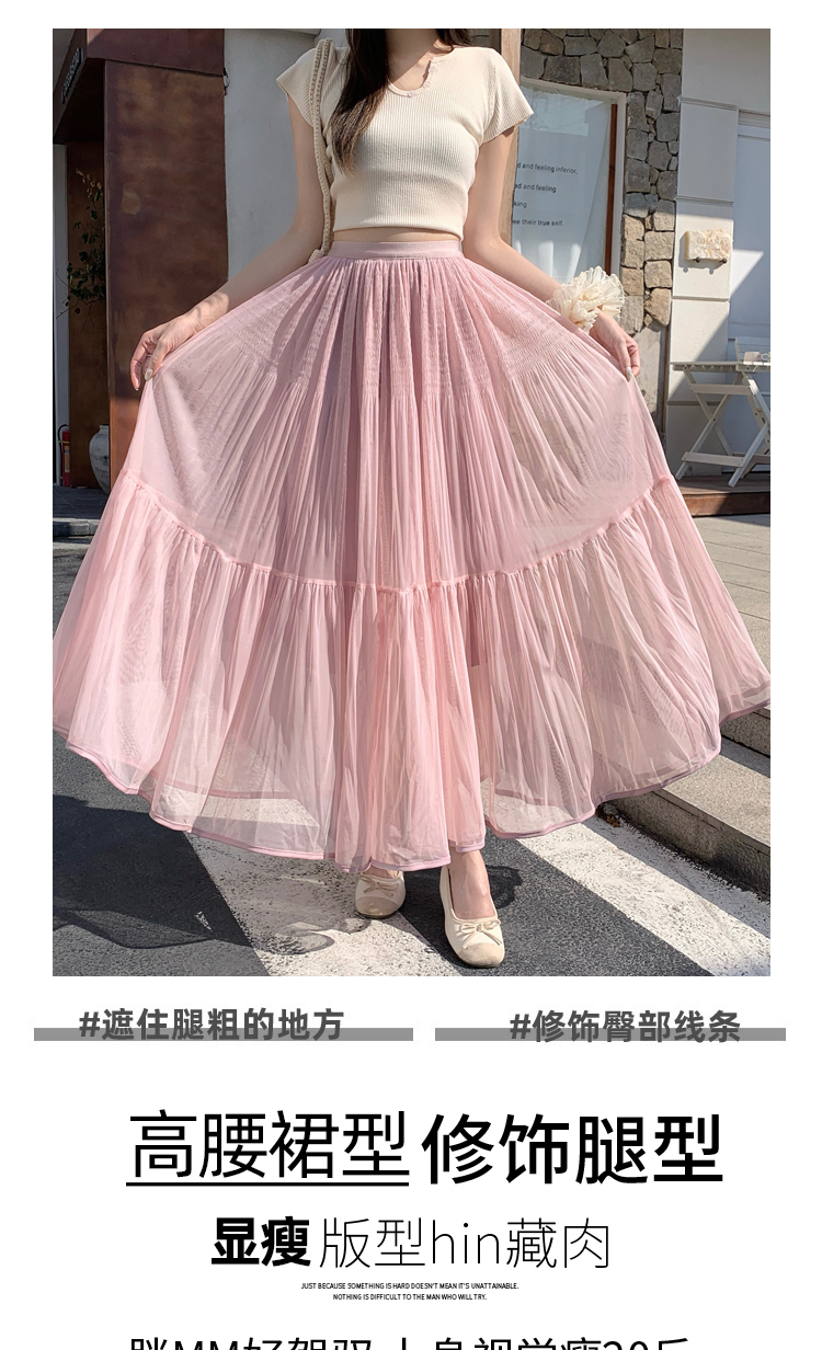 MY17415# 网纱半身裙女新款百褶裙高腰垂感纱裙遮肚显瘦长裙子女裝貨源服裝批發