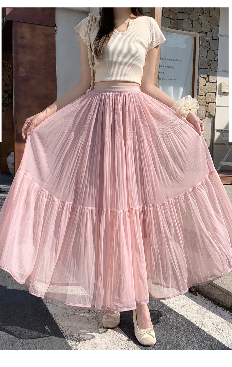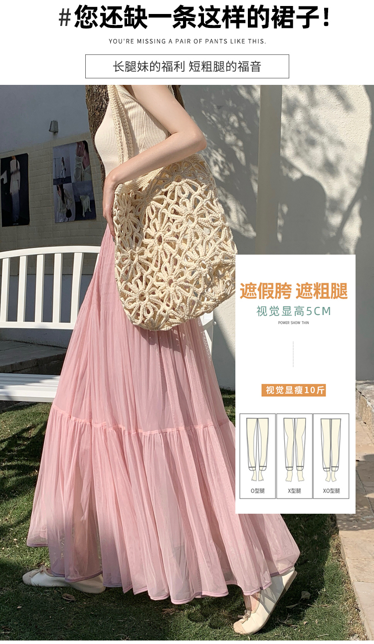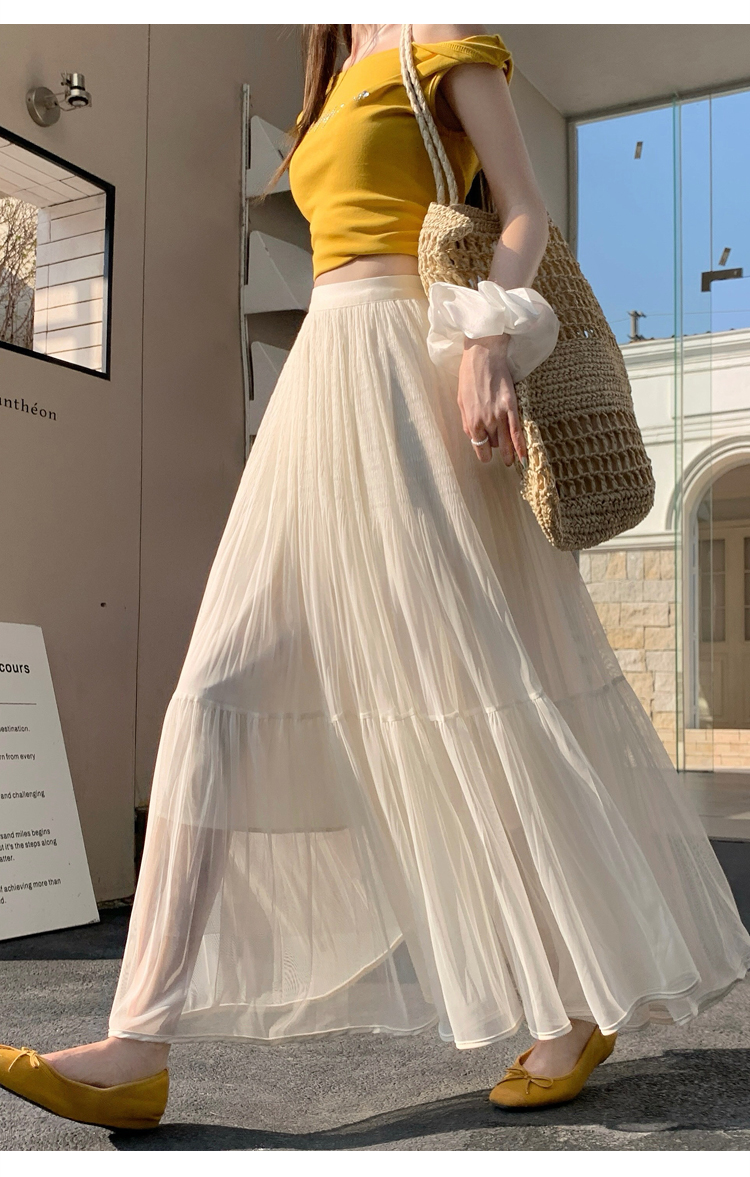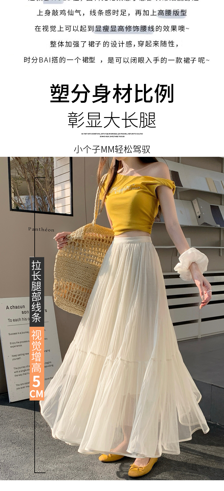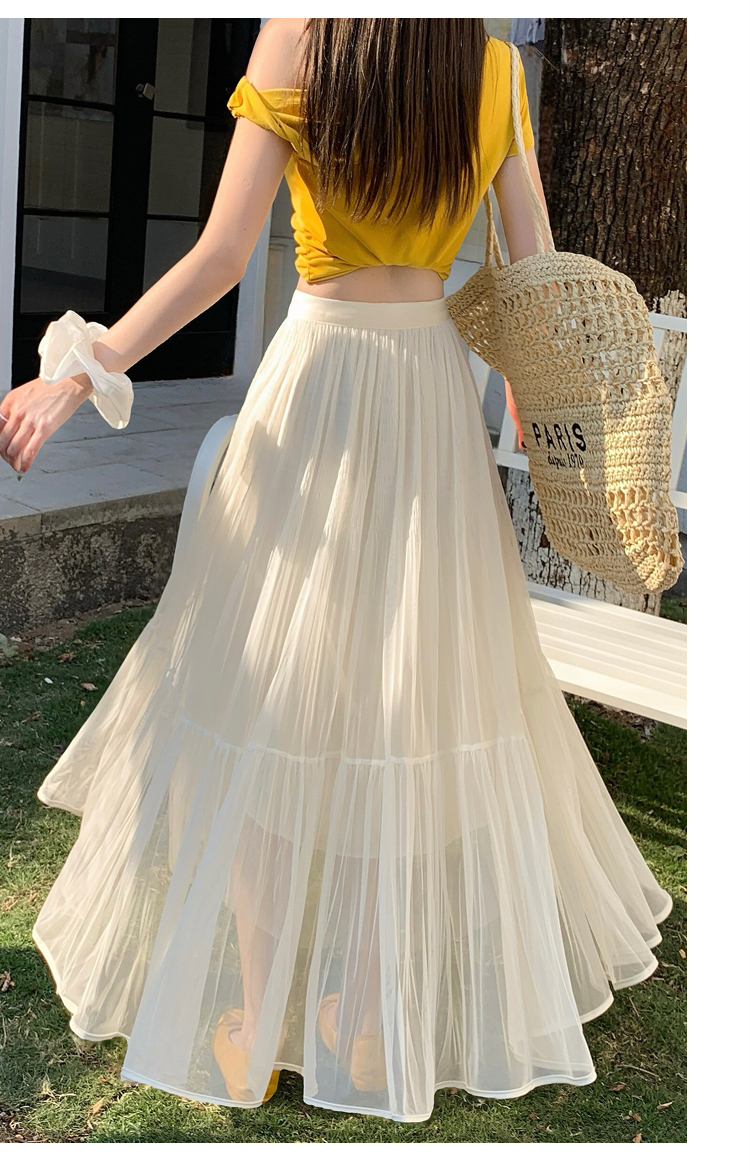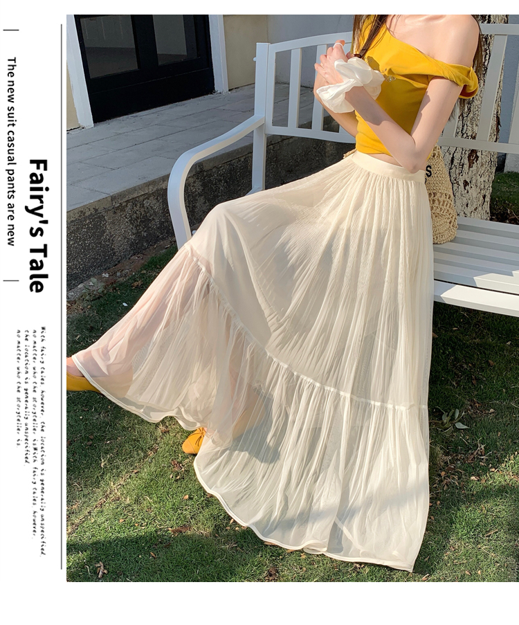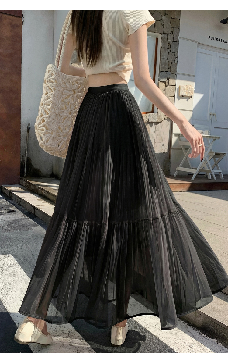 MY17415# 网纱半身裙女新款百褶裙高腰垂感纱裙遮肚显瘦长裙子女裝貨源服裝批發