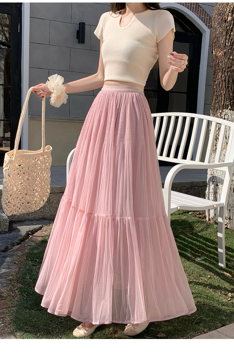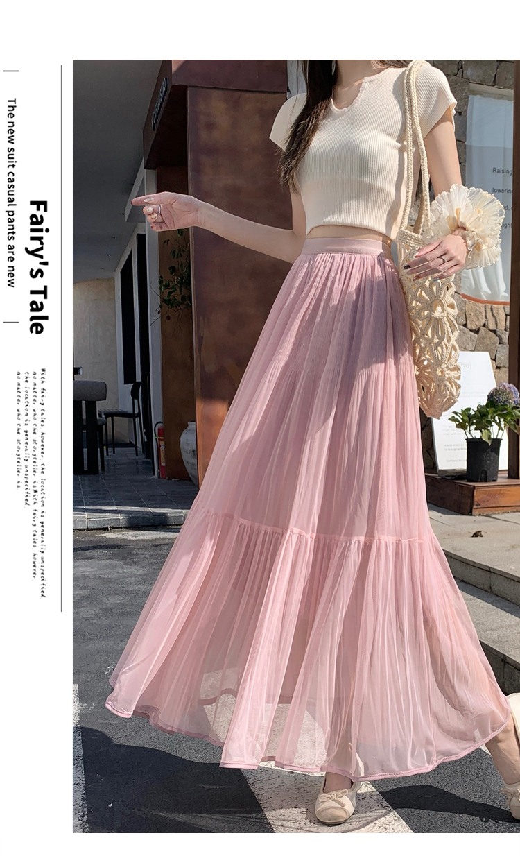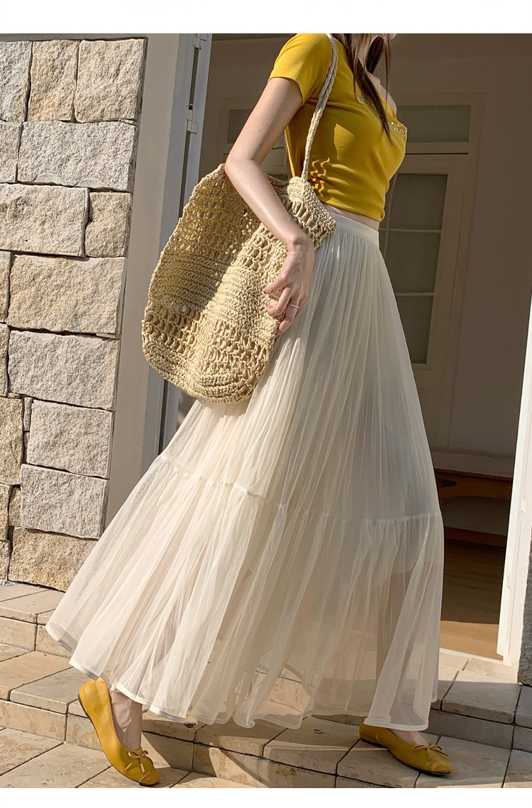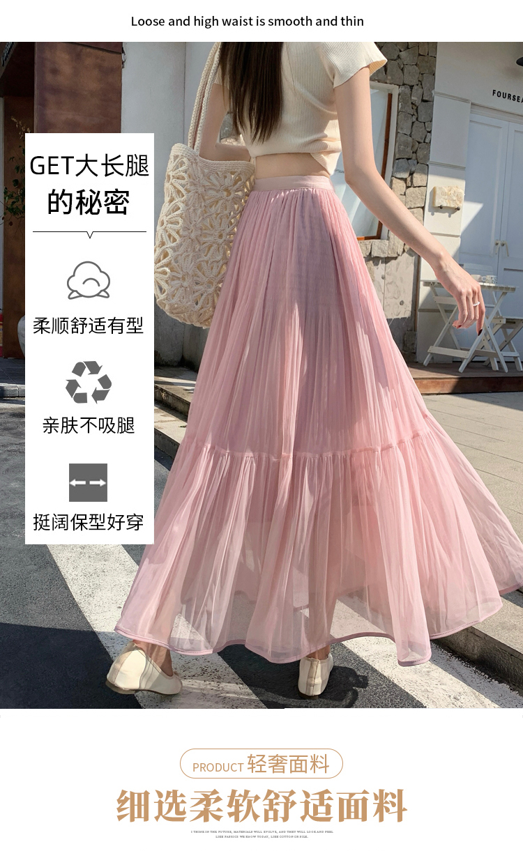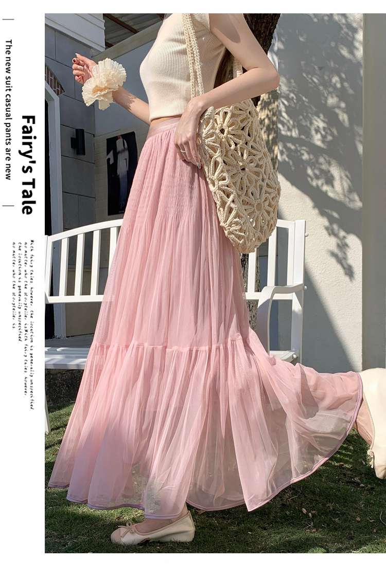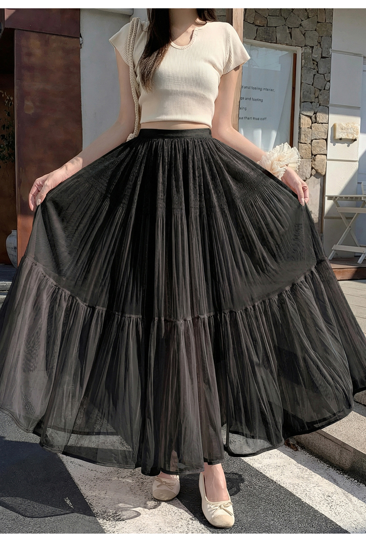 MY17415# 网纱半身裙女新款百褶裙高腰垂感纱裙遮肚显瘦长裙子女裝貨源服裝批發