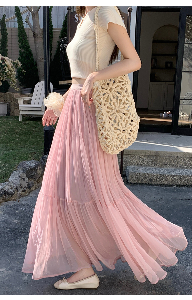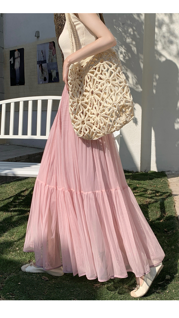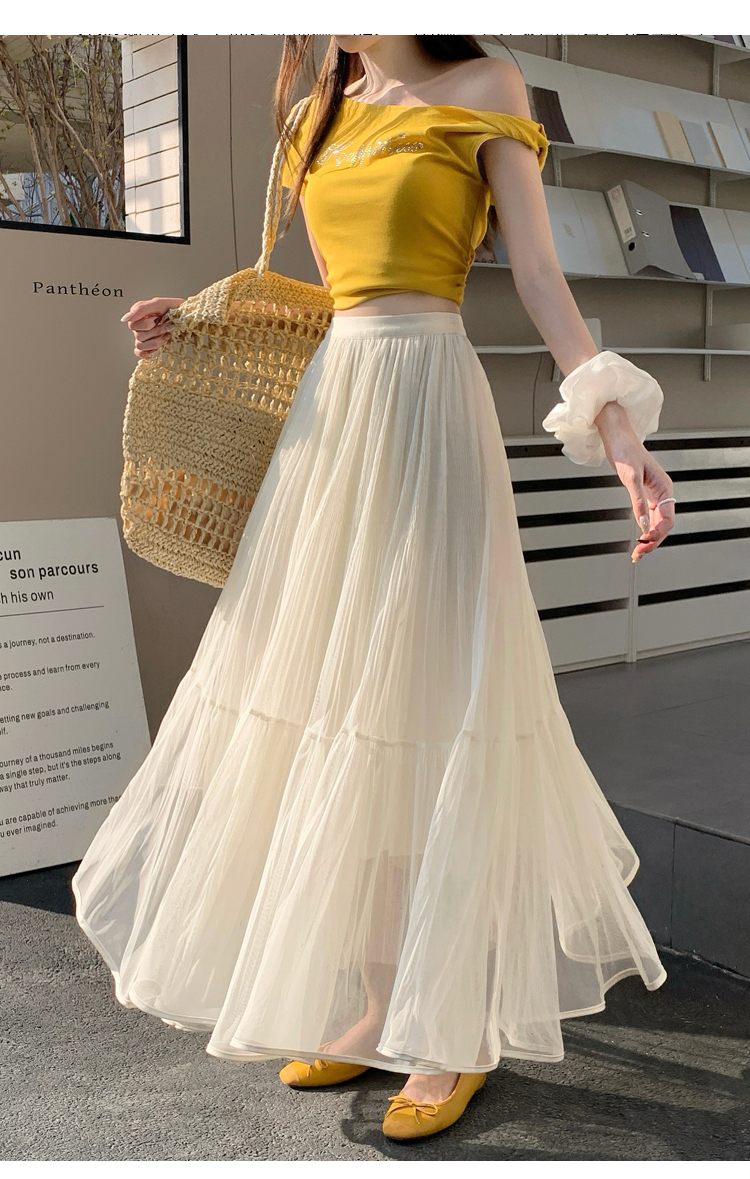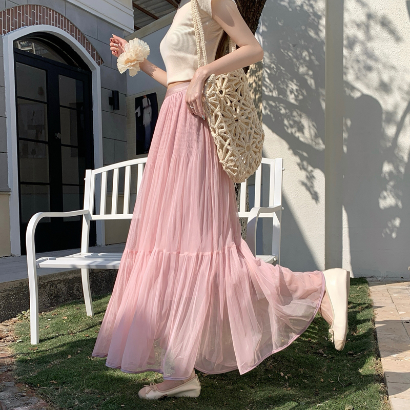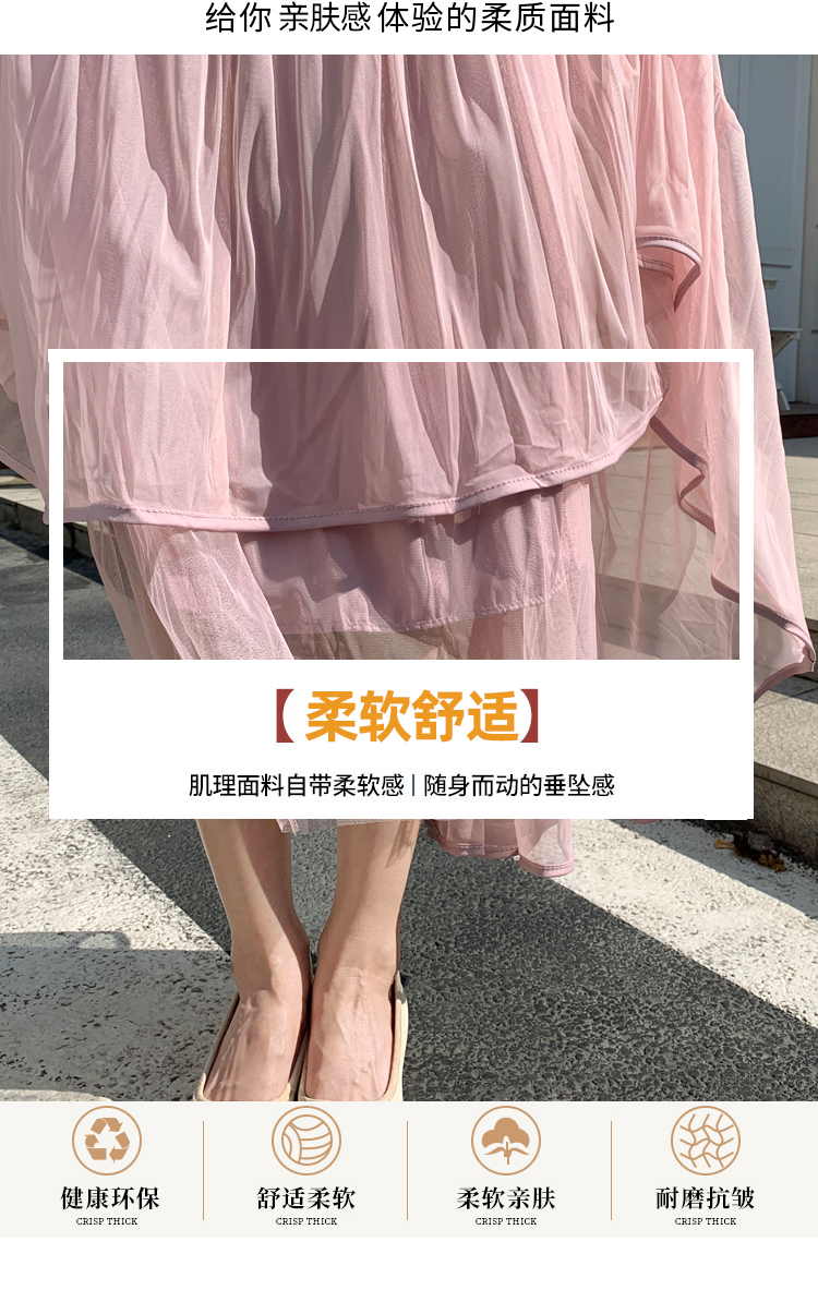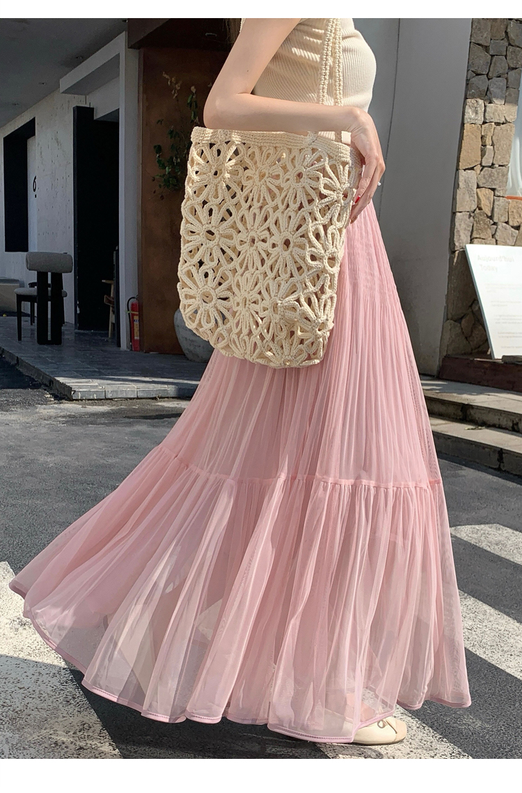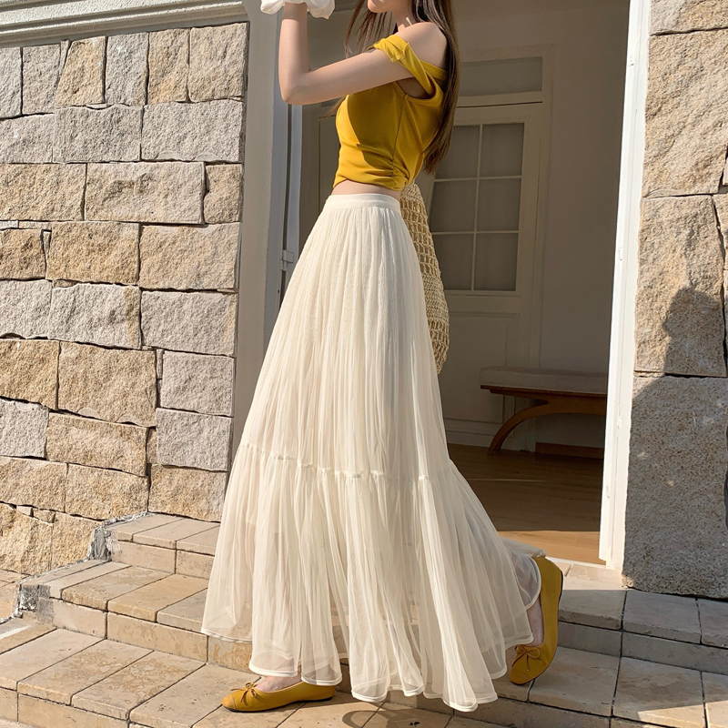 MY17415# 网纱半身裙女新款百褶裙高腰垂感纱裙遮肚显瘦长裙子女裝貨源服裝批發