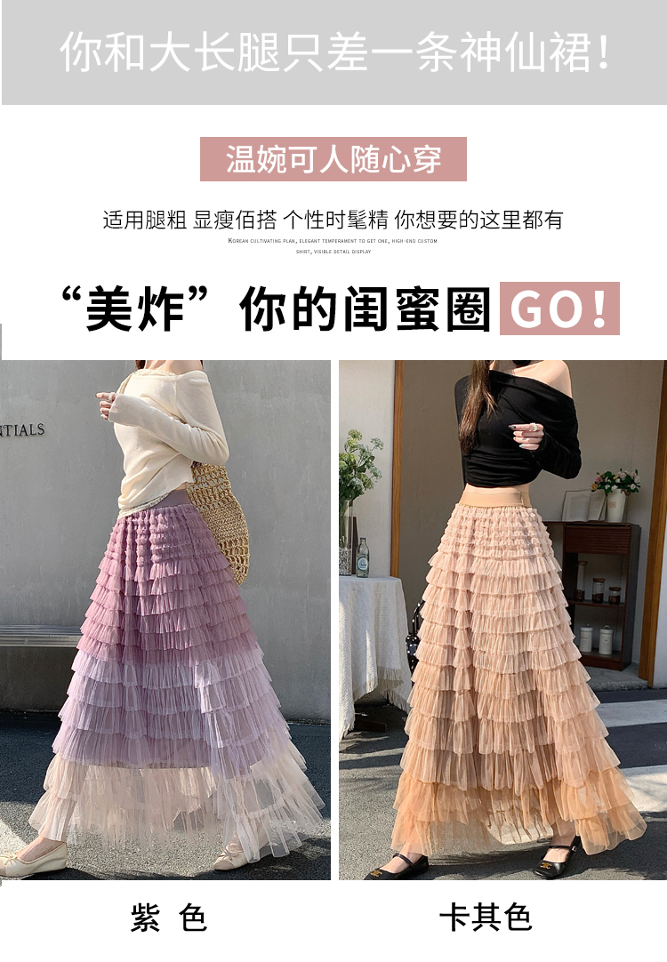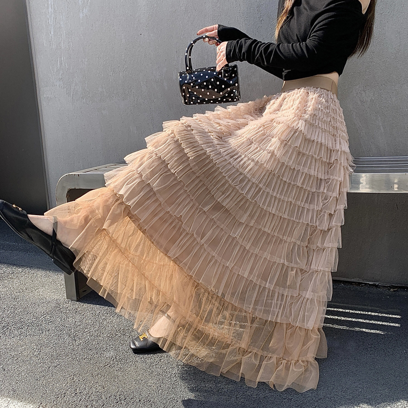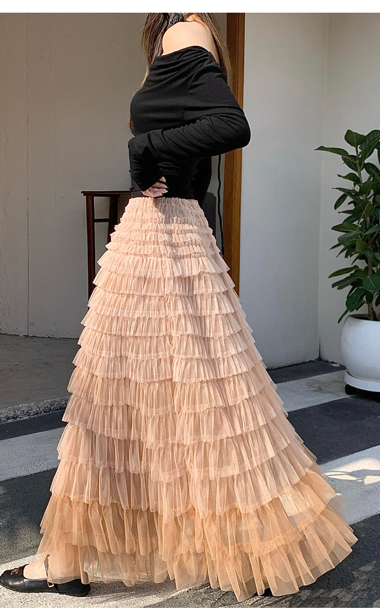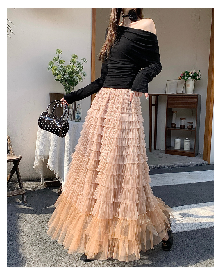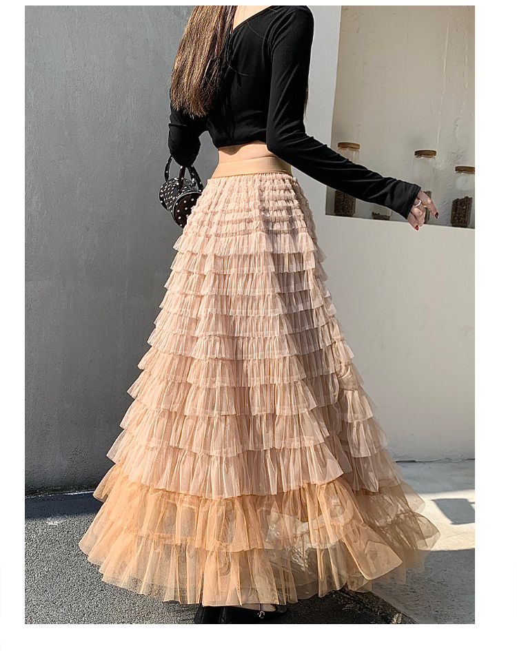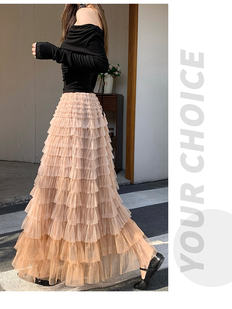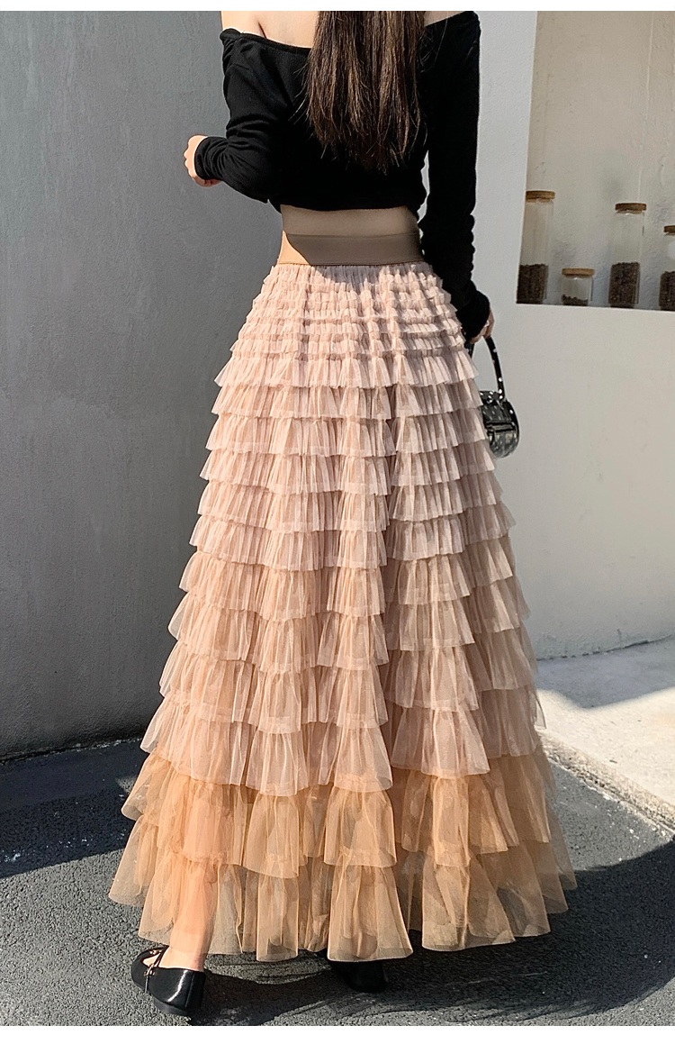 MY17416# 长款仙气重工网纱蛋糕裙半身裙女设计感小众显瘦大摆长裙女裝貨源服裝批發