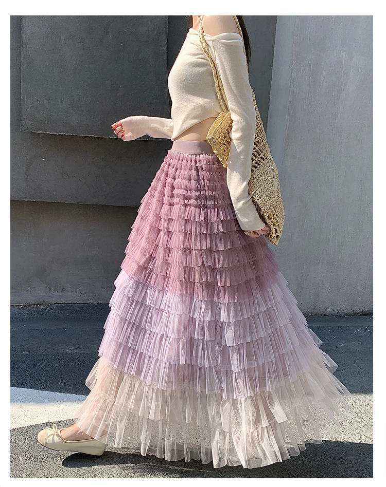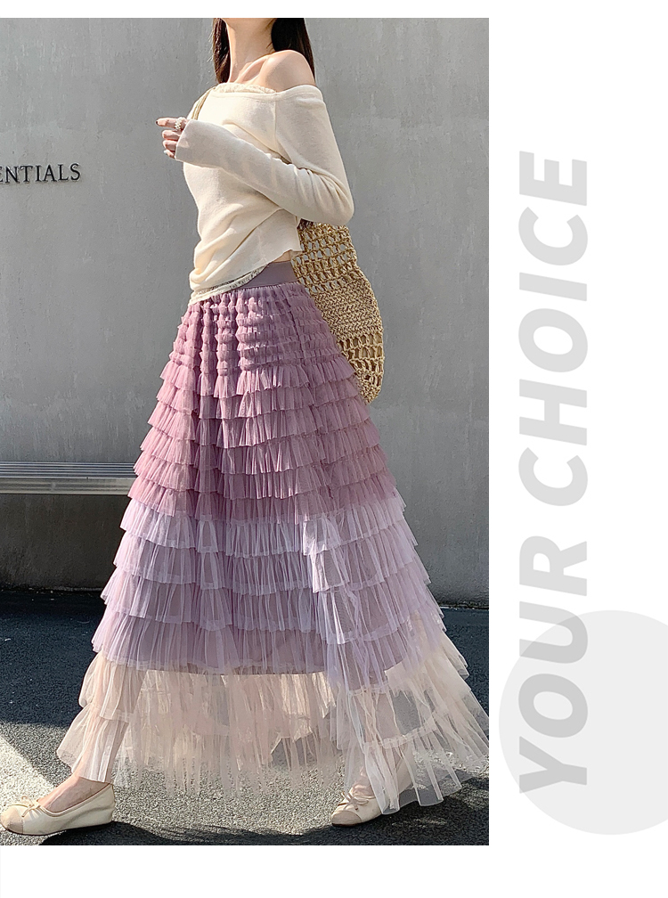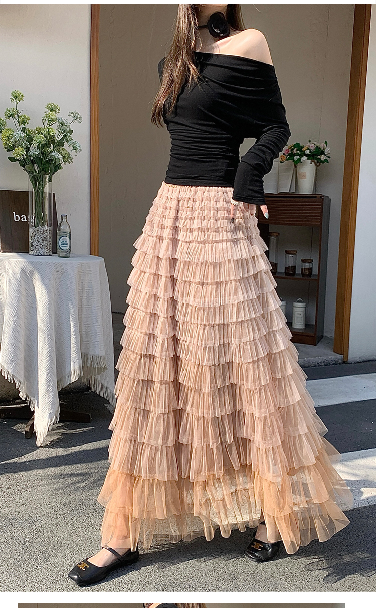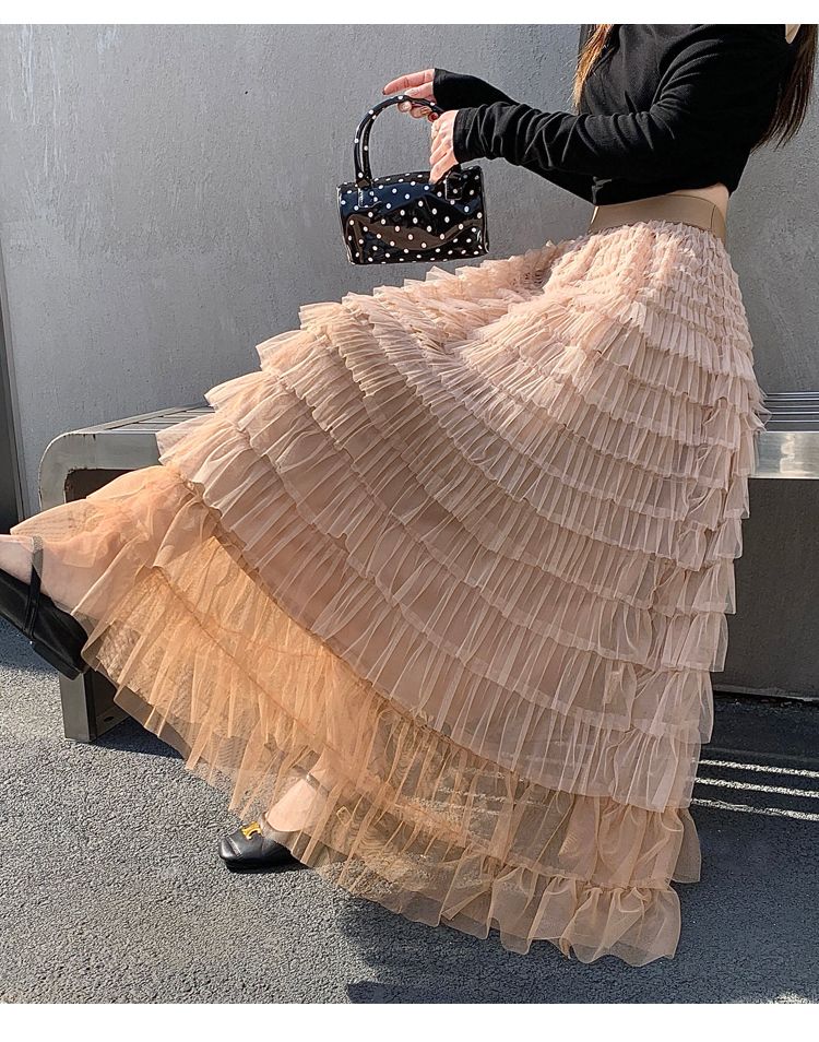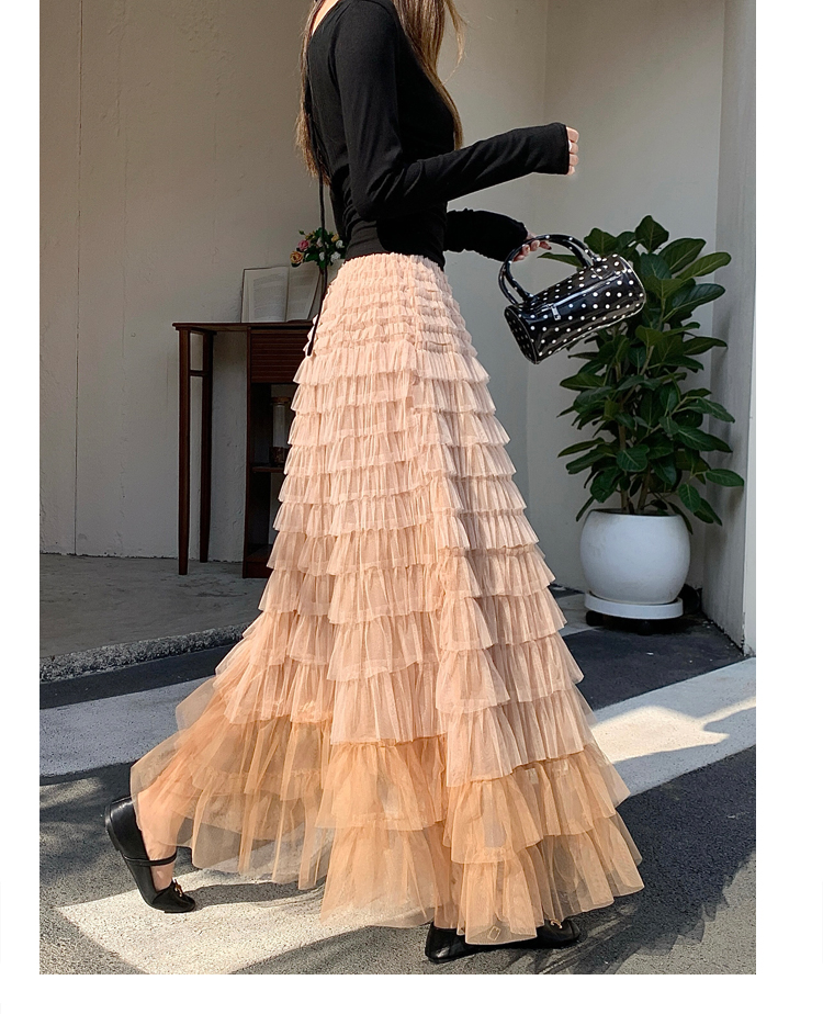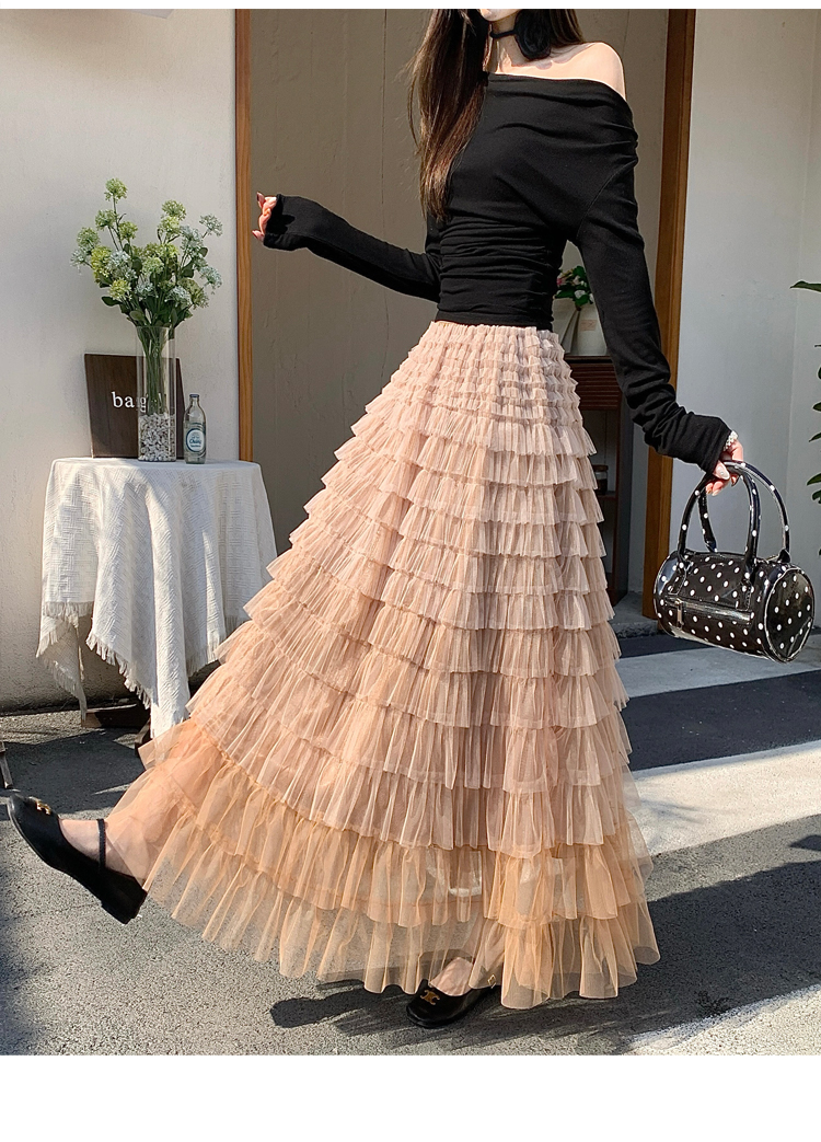 MY17416# 长款仙气重工网纱蛋糕裙半身裙女设计感小众显瘦大摆长裙女裝貨源服裝批發