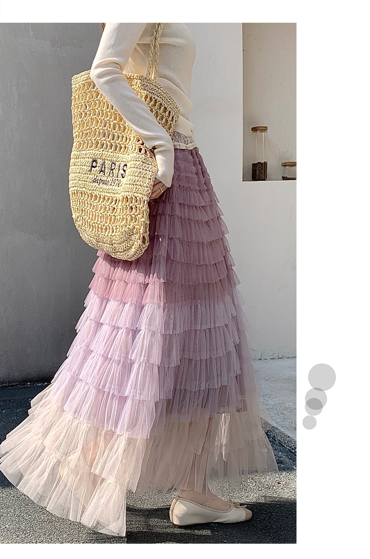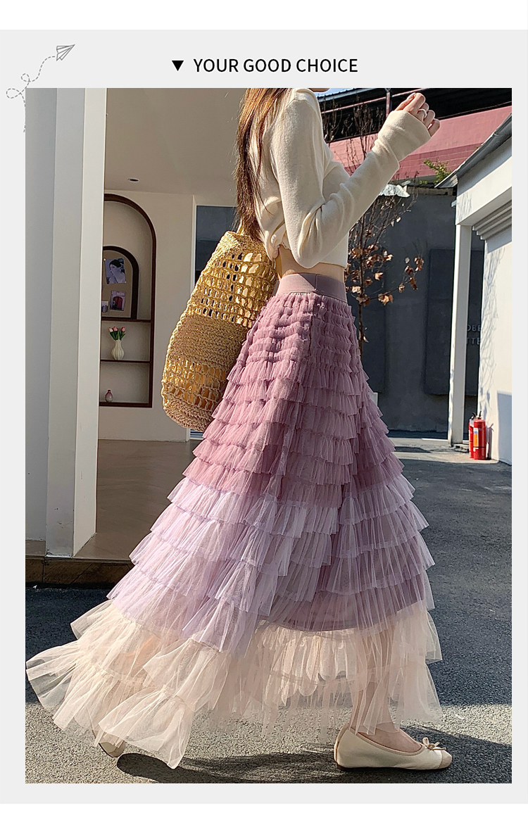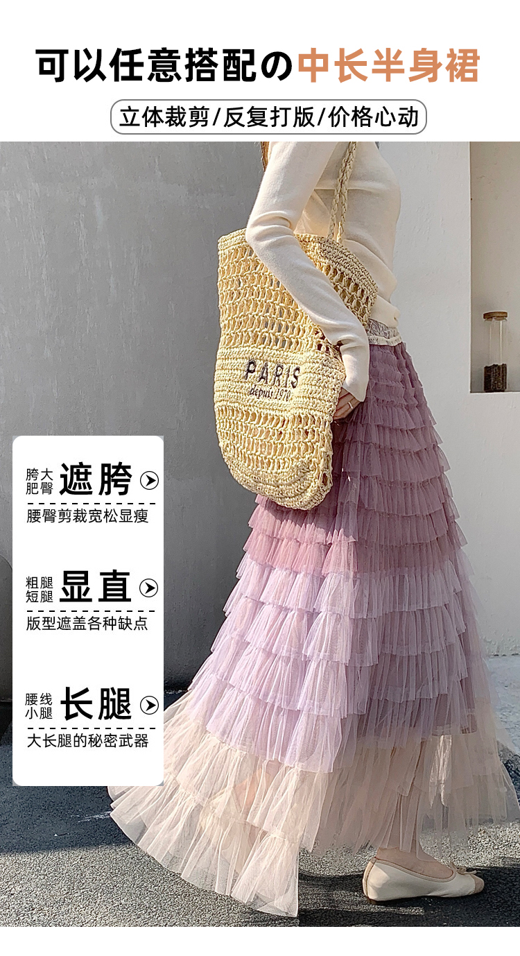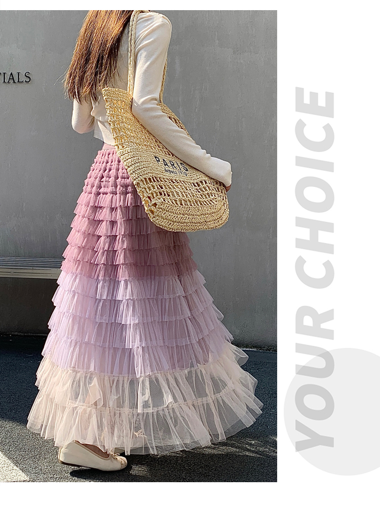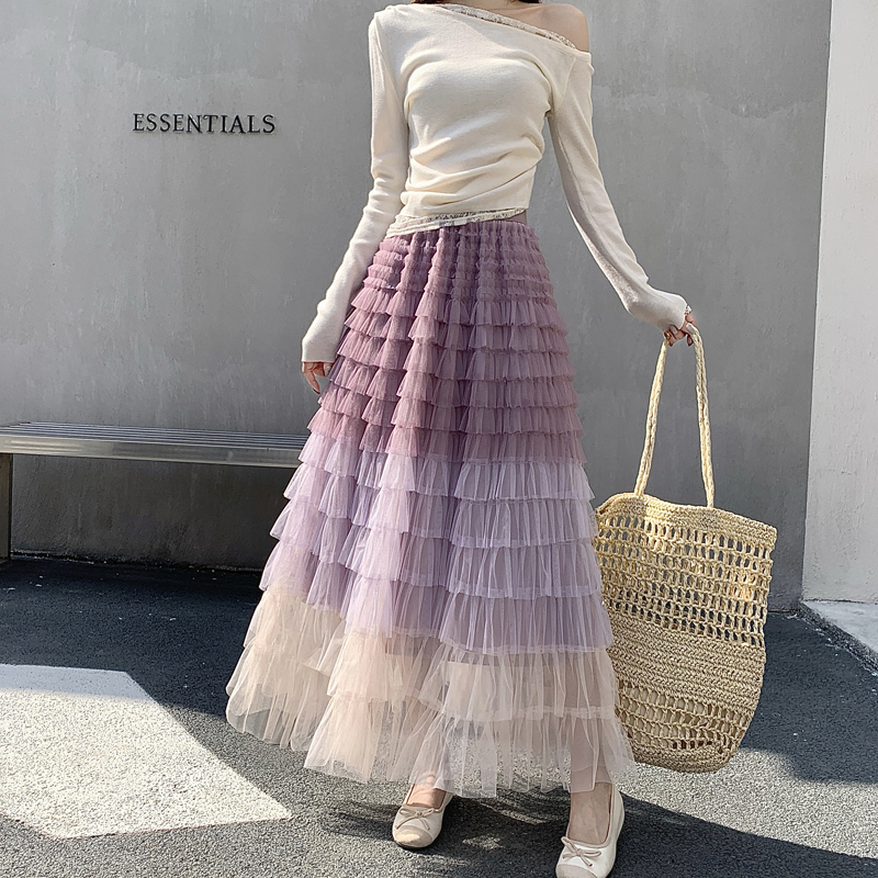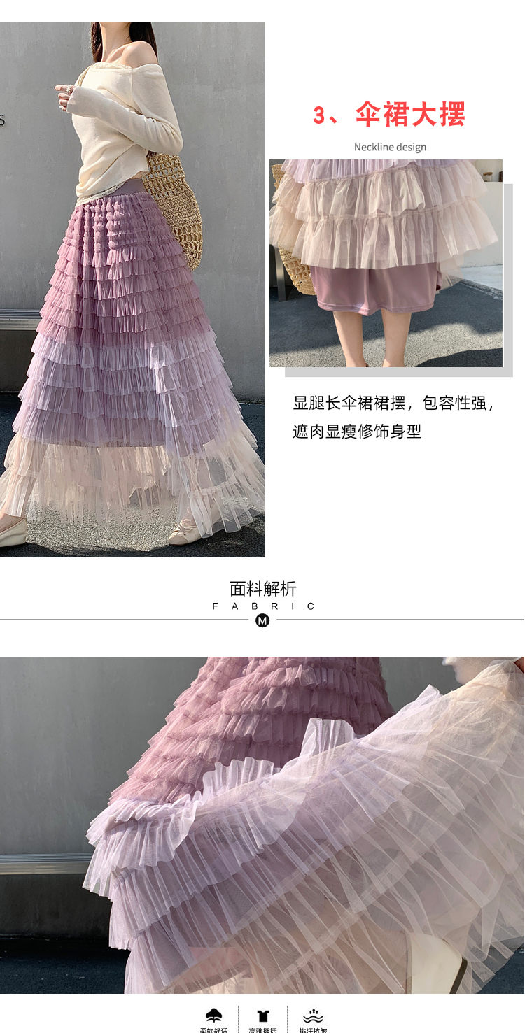 MY17416# 长款仙气重工网纱蛋糕裙半身裙女设计感小众显瘦大摆长裙女裝貨源服裝批發