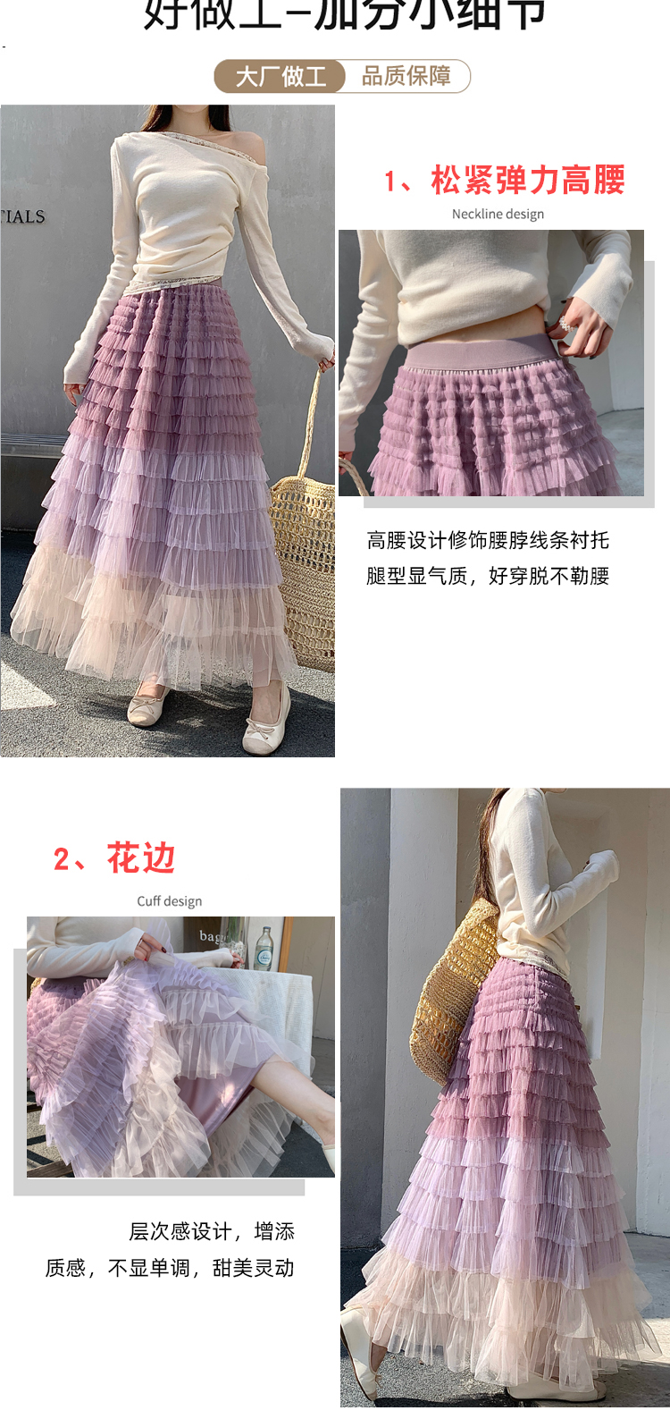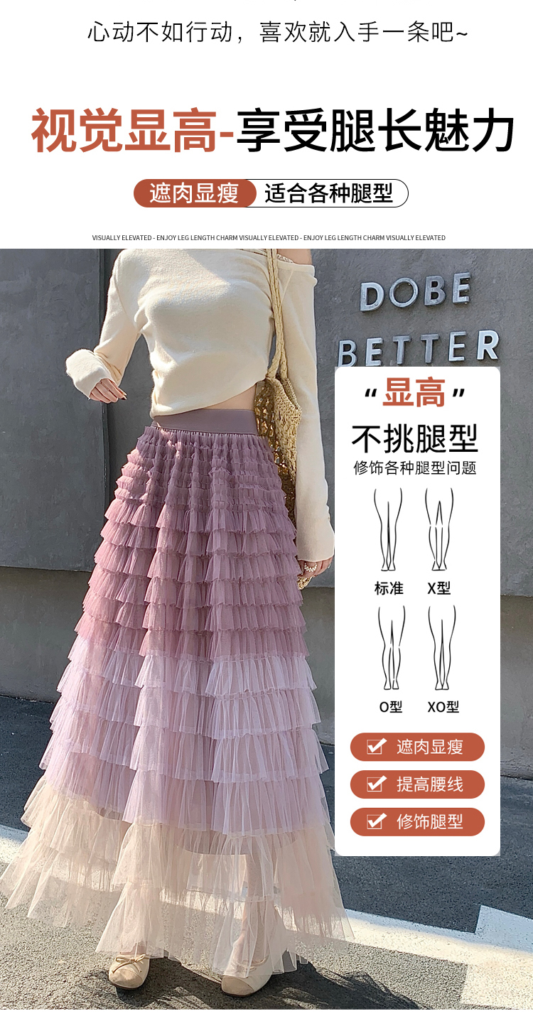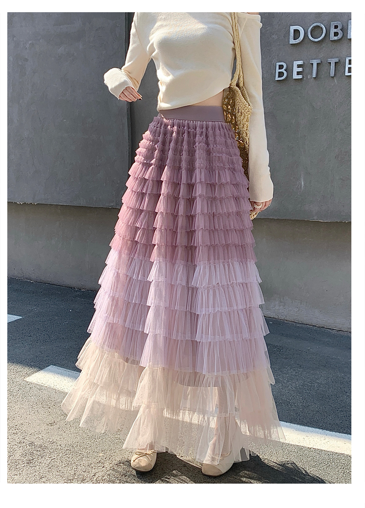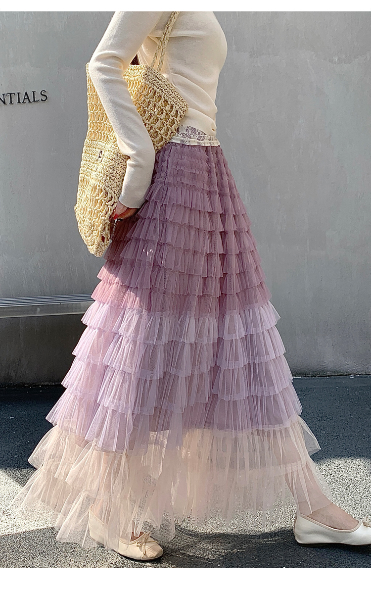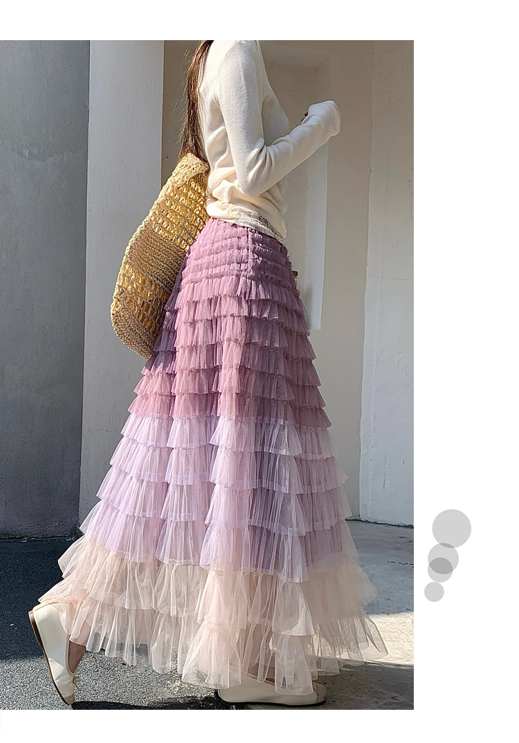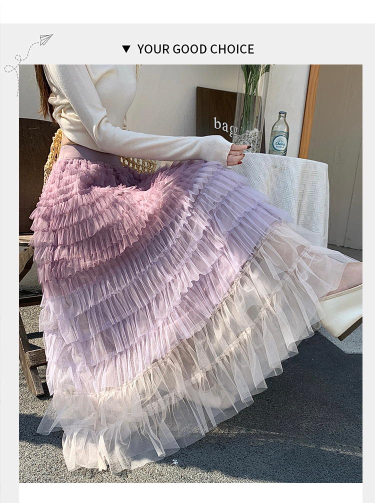 MY17416# 长款仙气重工网纱蛋糕裙半身裙女设计感小众显瘦大摆长裙女裝貨源服裝批發