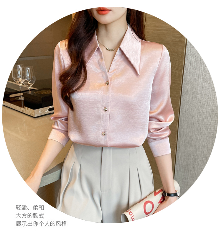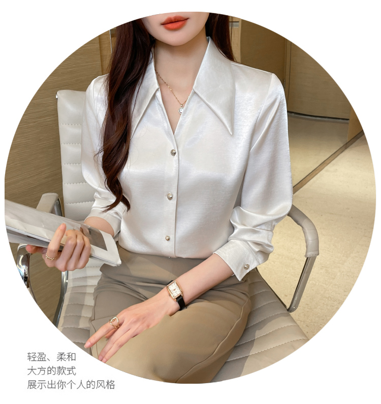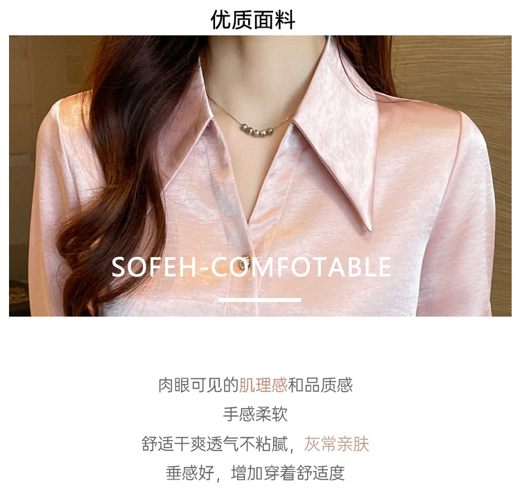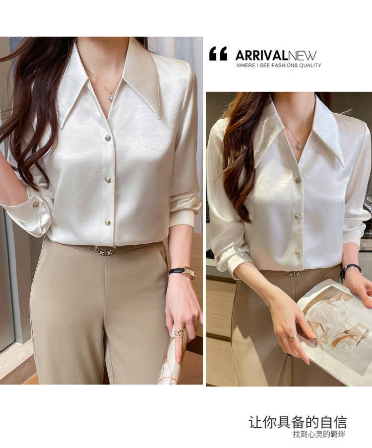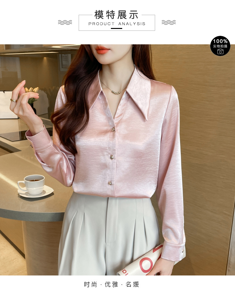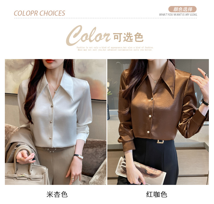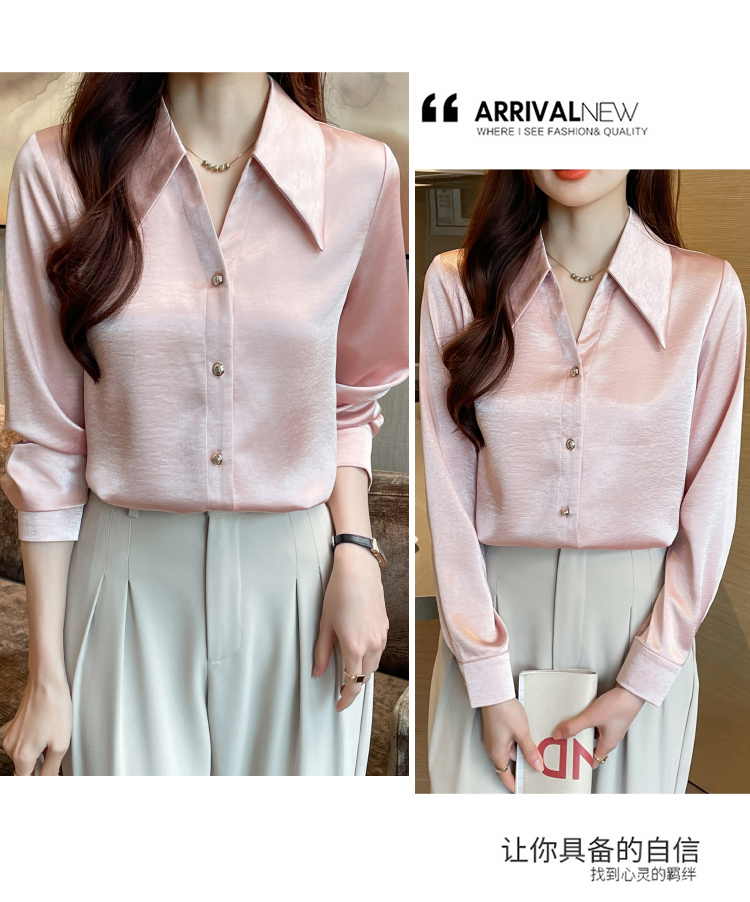 MY17424# 法式气质V领衬衫女长袖高级感缎面衬衣女裝貨源服裝批發