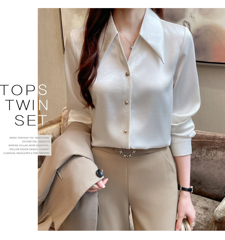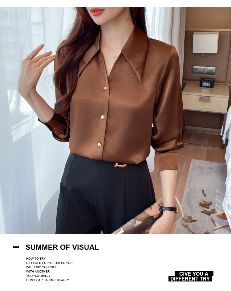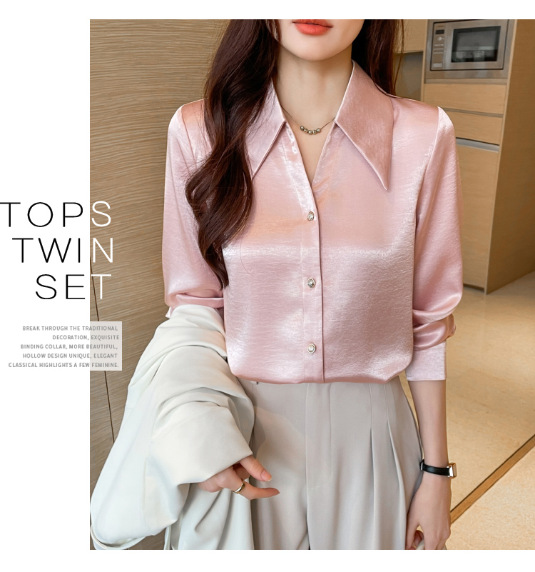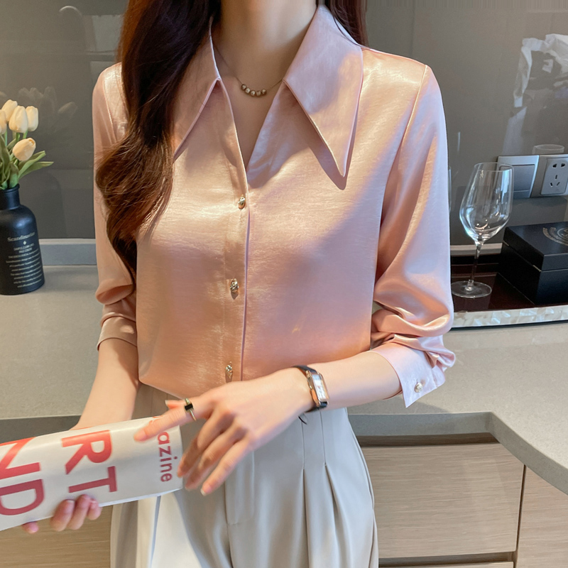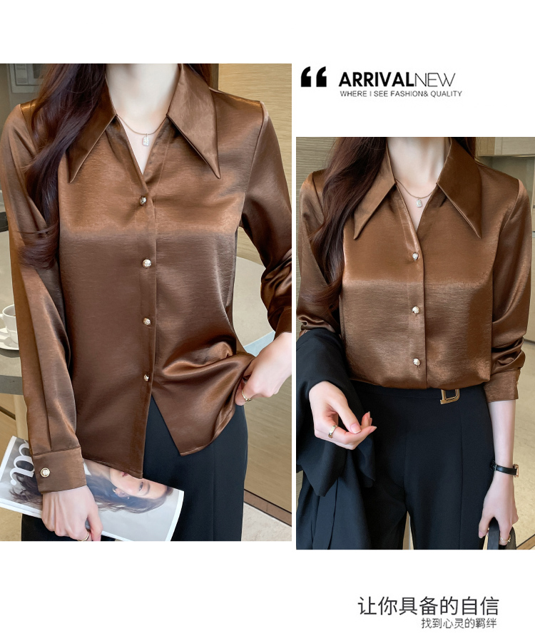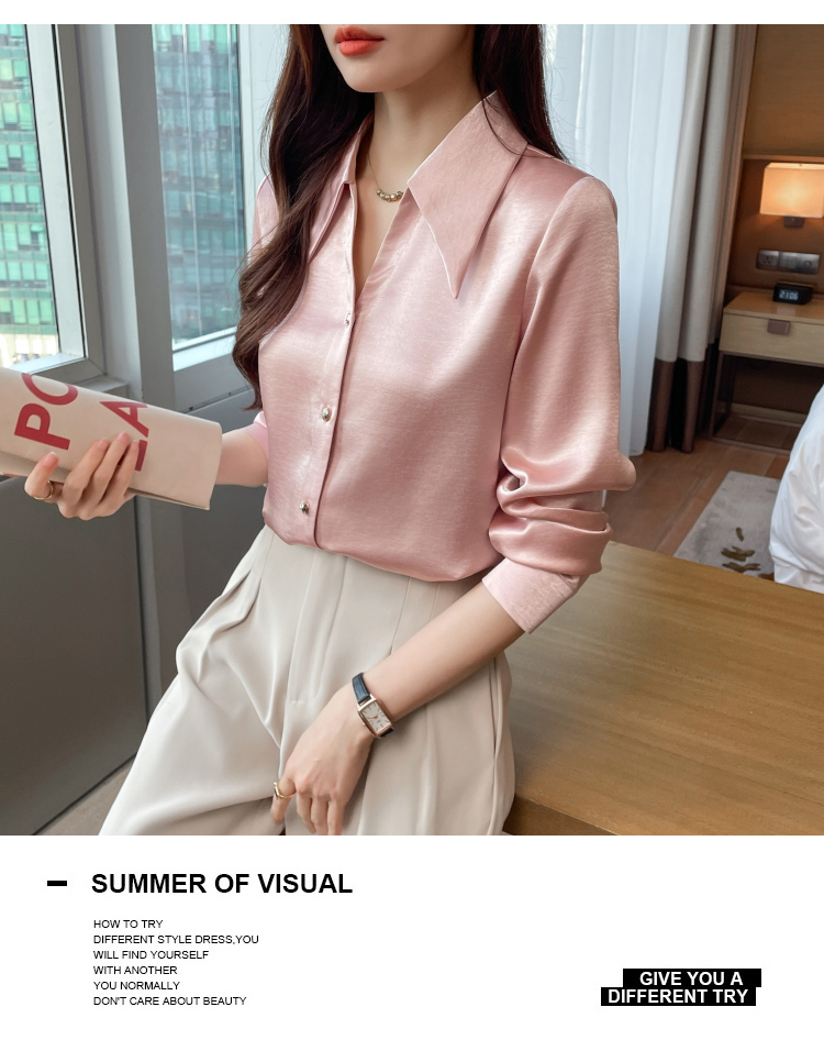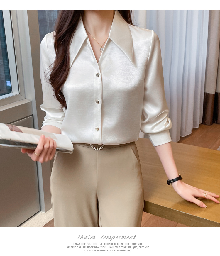MY17424# 法式气质V领衬衫女长袖高级感缎面衬衣女裝貨源服裝批發