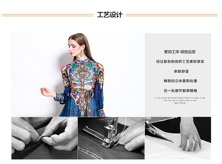 MY17514# 宫廷风复古收腰显瘦单排扣长裙立领连衣裙女裝貨源服裝批發