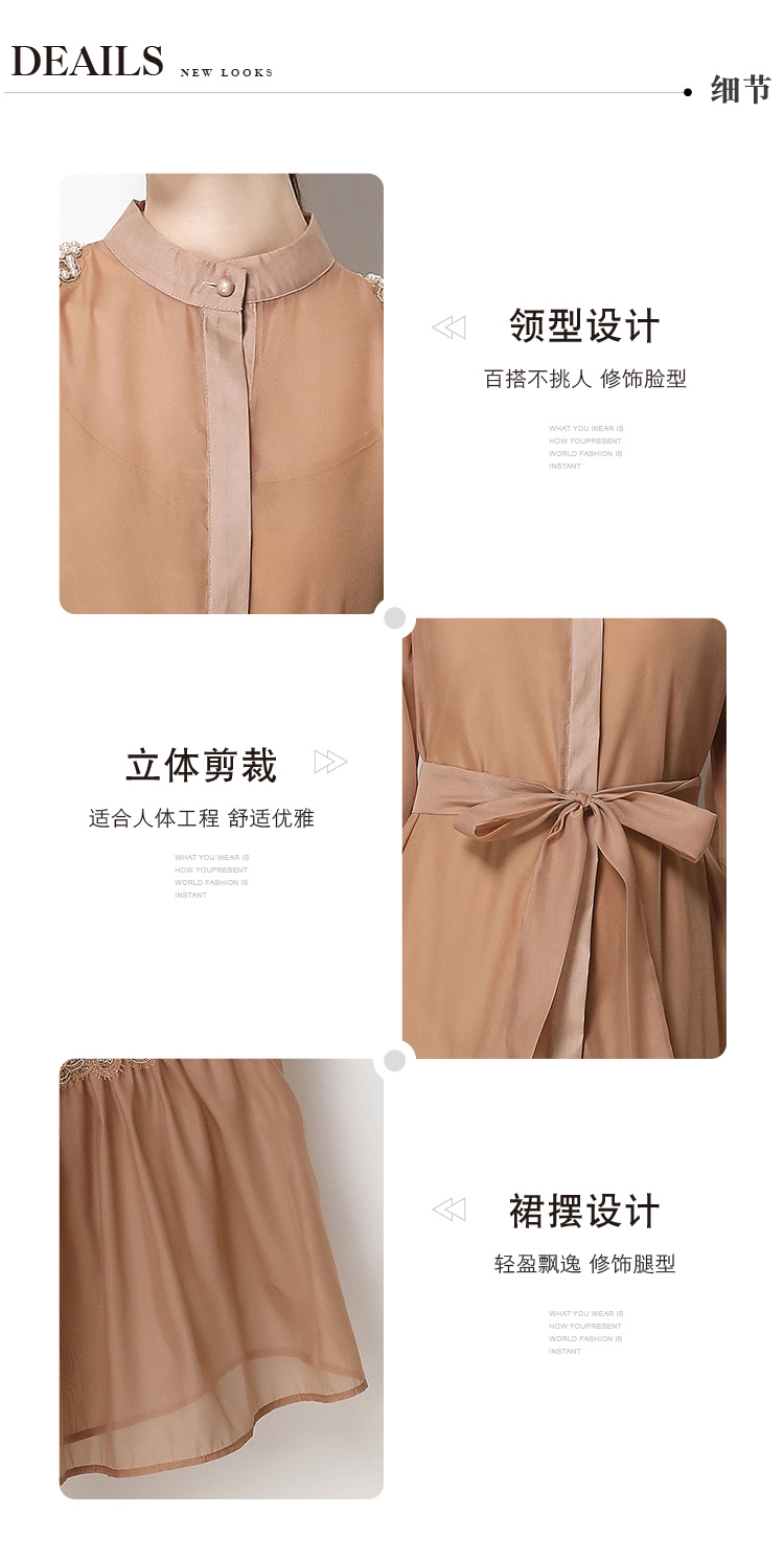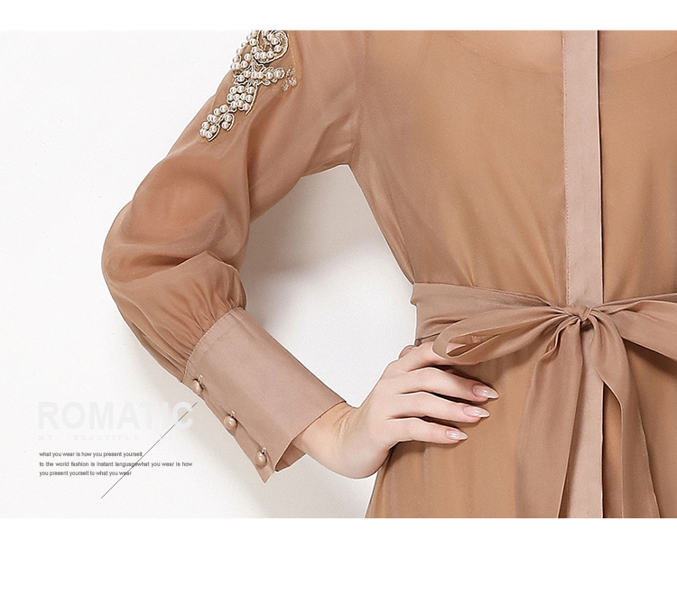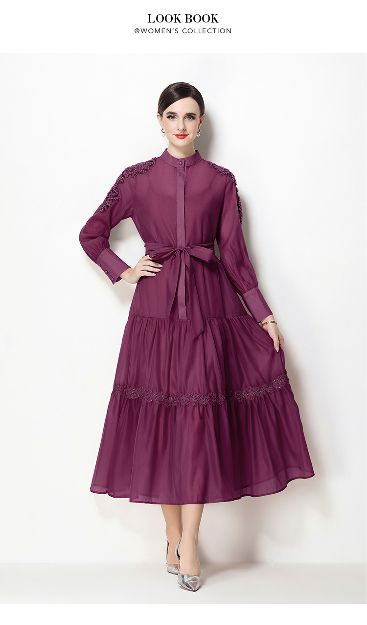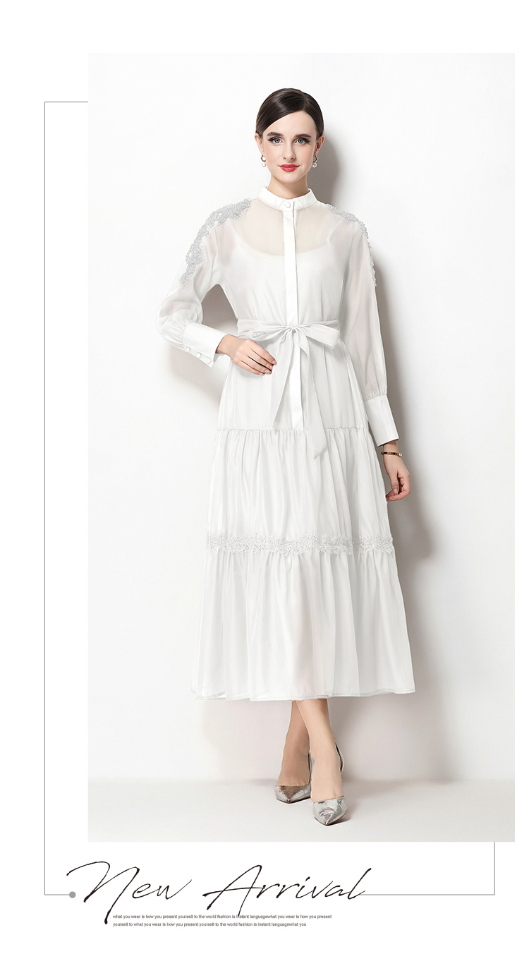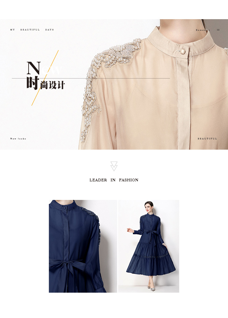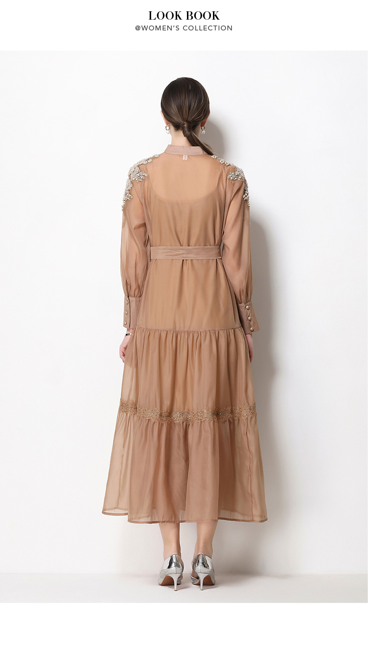 RY783# 2026春夏新款圆领单排扣复古刺绣钉珠宽松长裙连衣裙配腰带