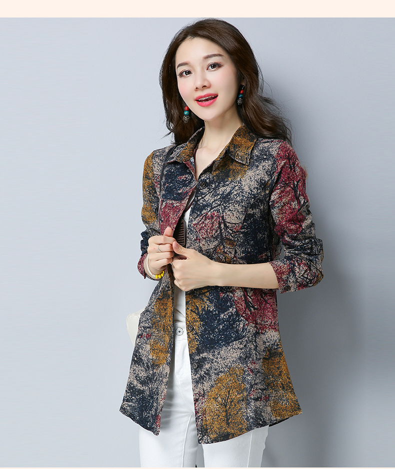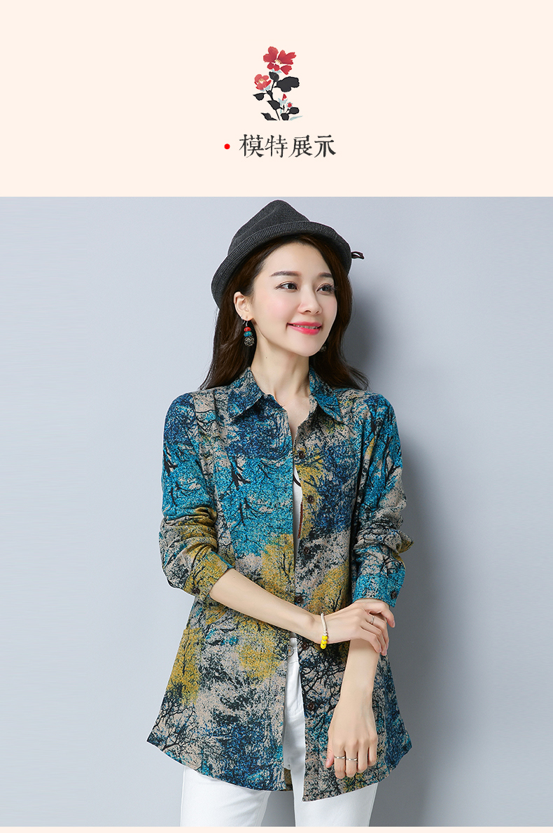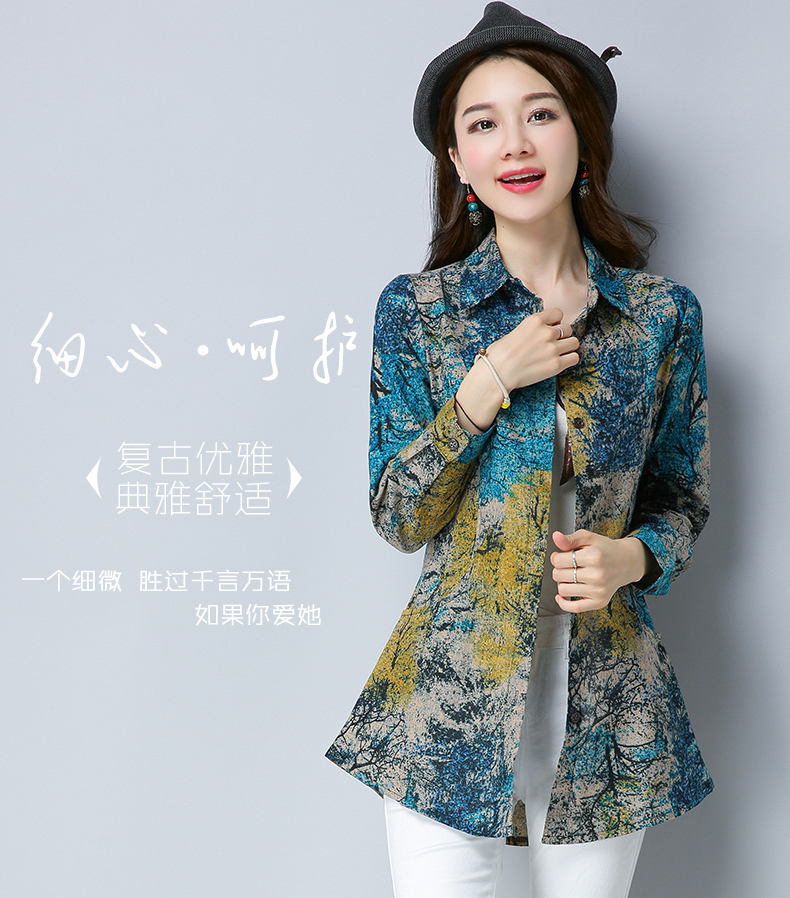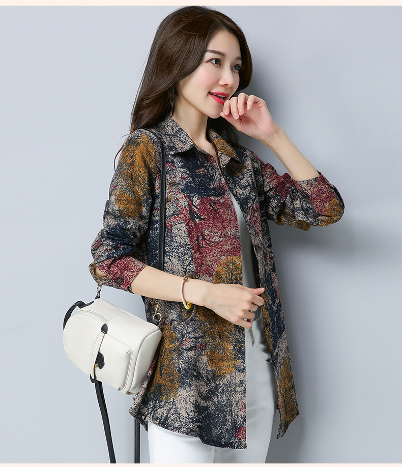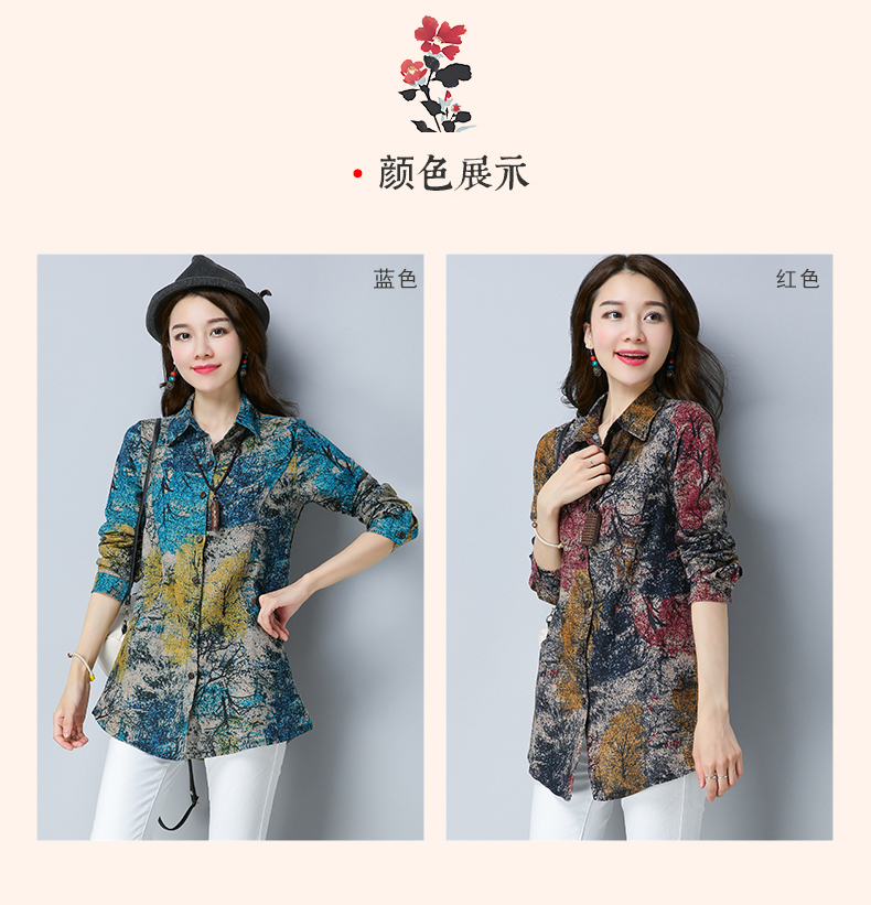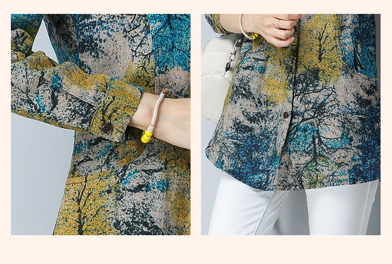 KY8524#宽松大码中年妈妈装韩版碎花长袖衬衣