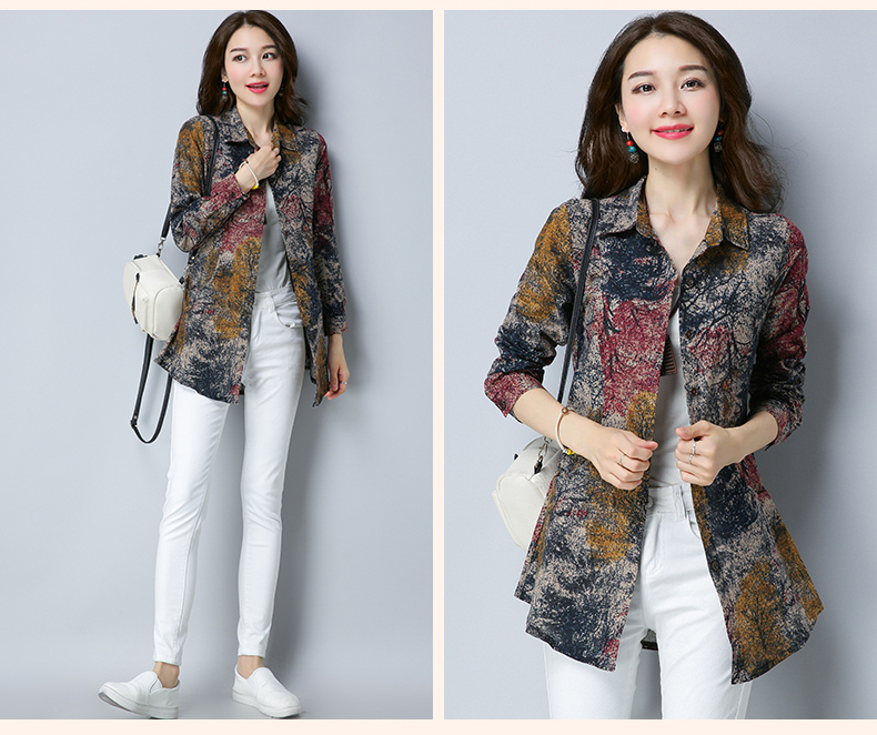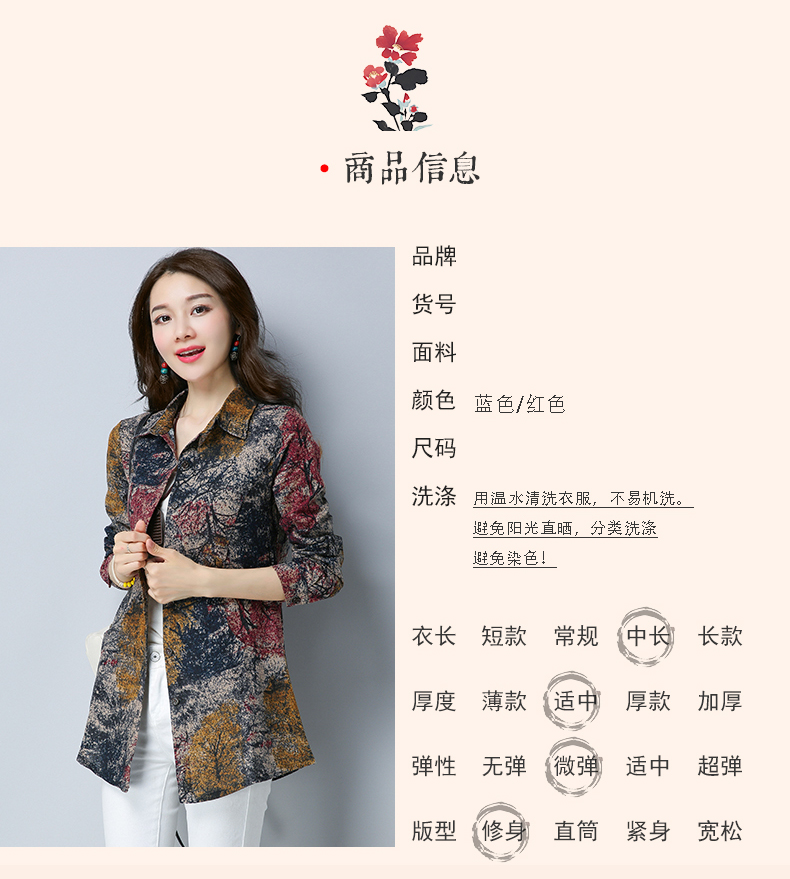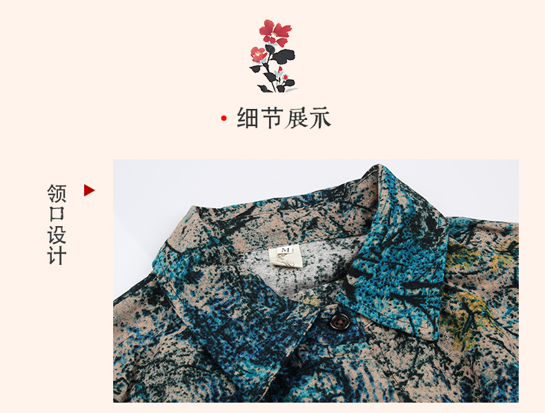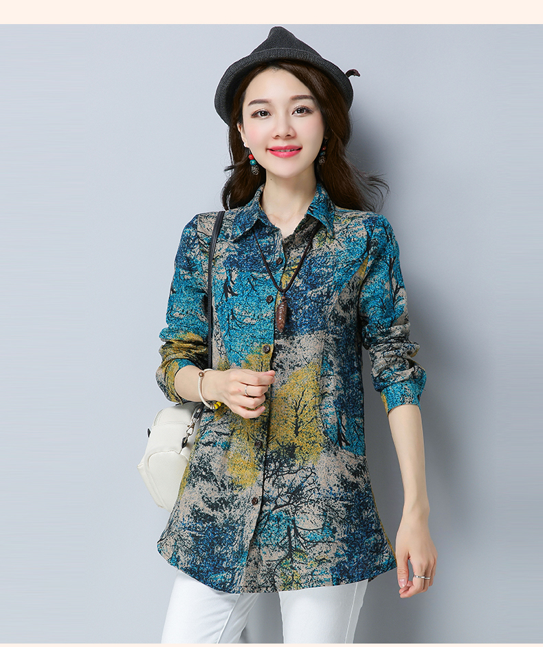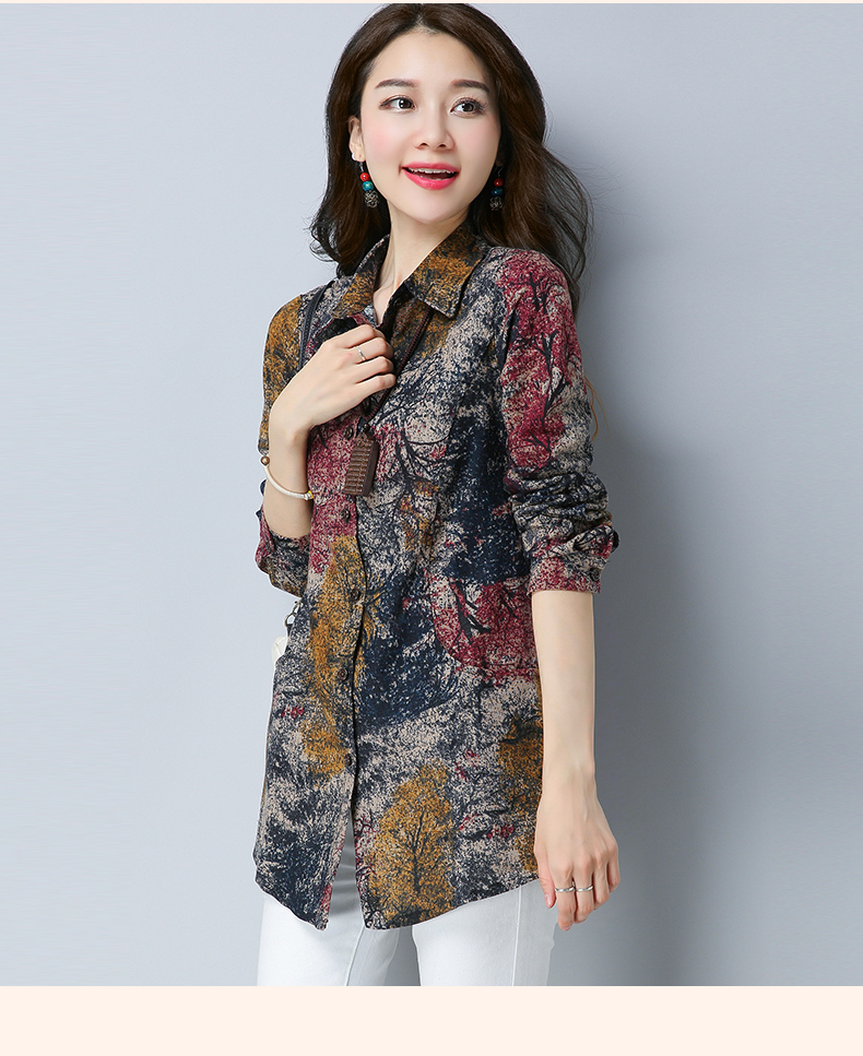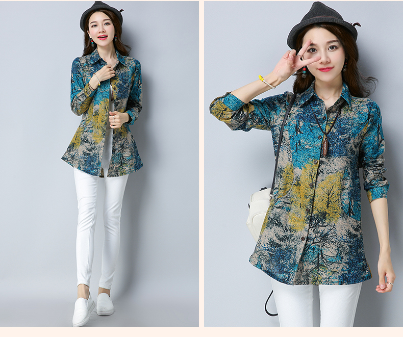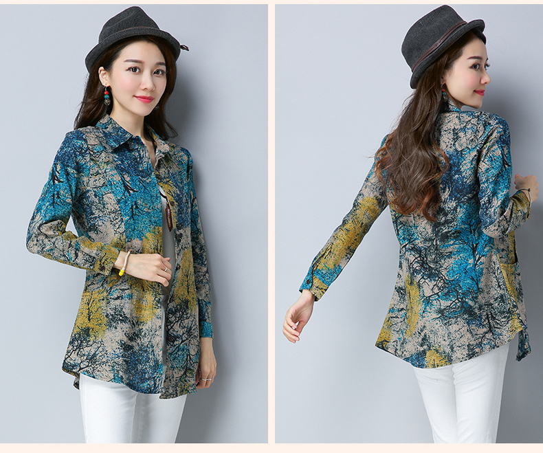 KY8524#宽松大码中年妈妈装韩版碎花长袖衬衣