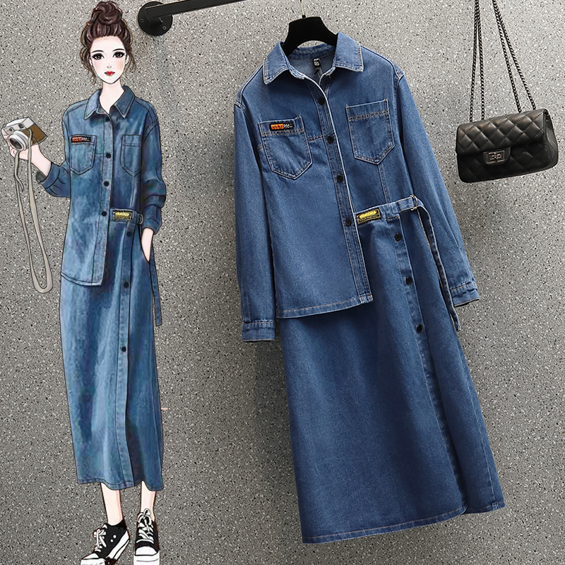 RS49134#大码女装春季新款设计感宽松洋气牛仔连衣裙气质收腰长裙