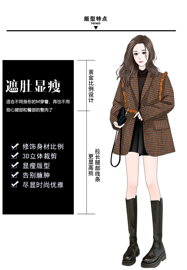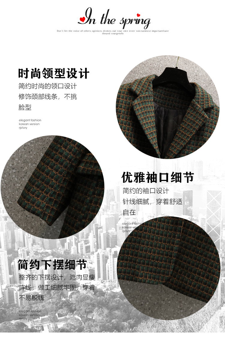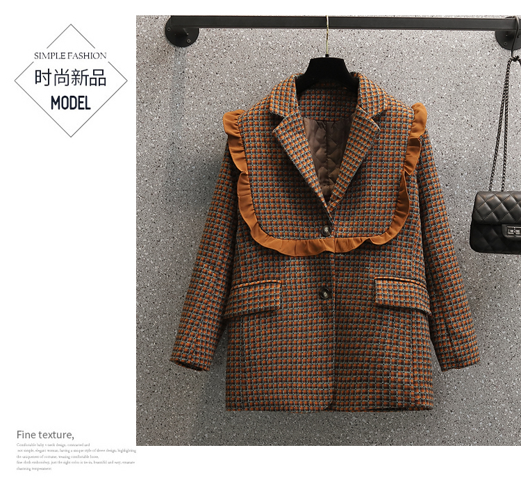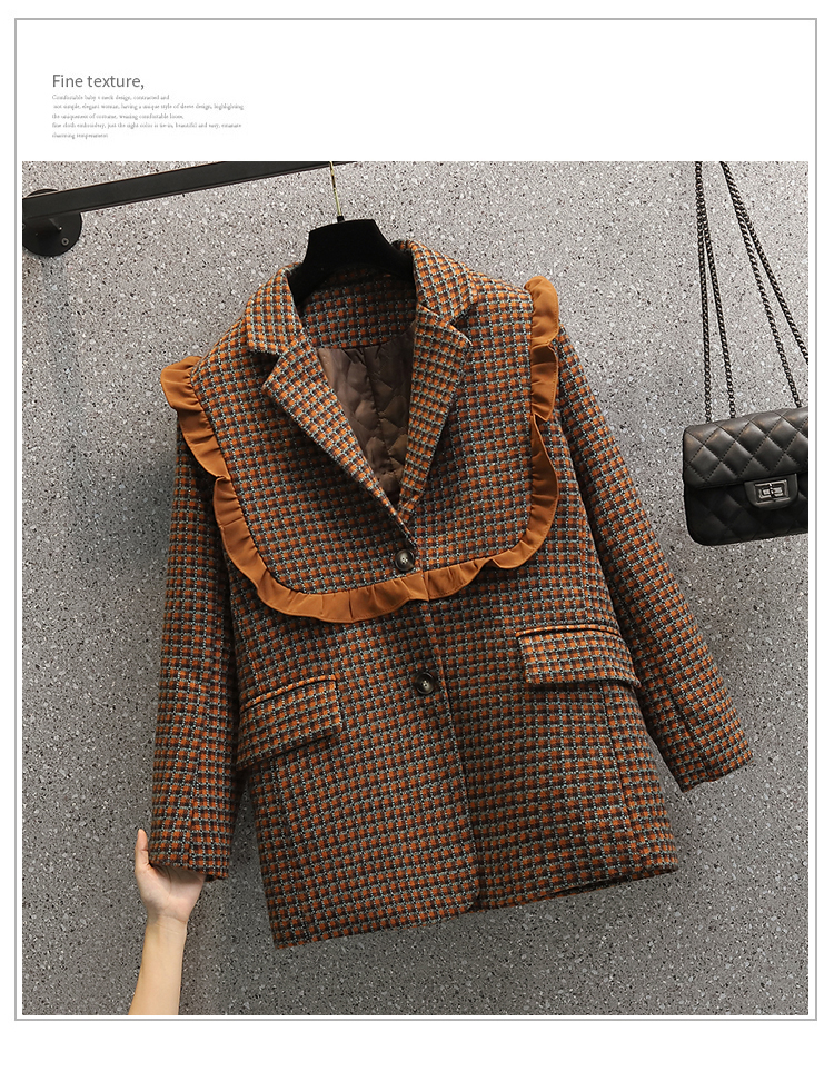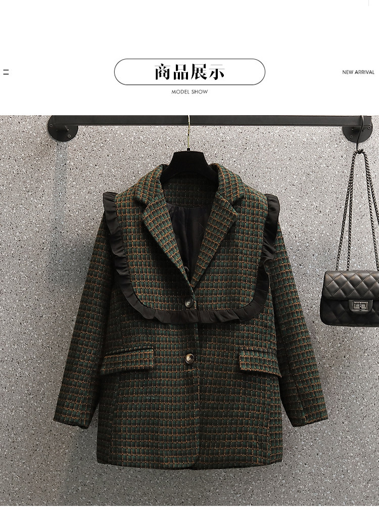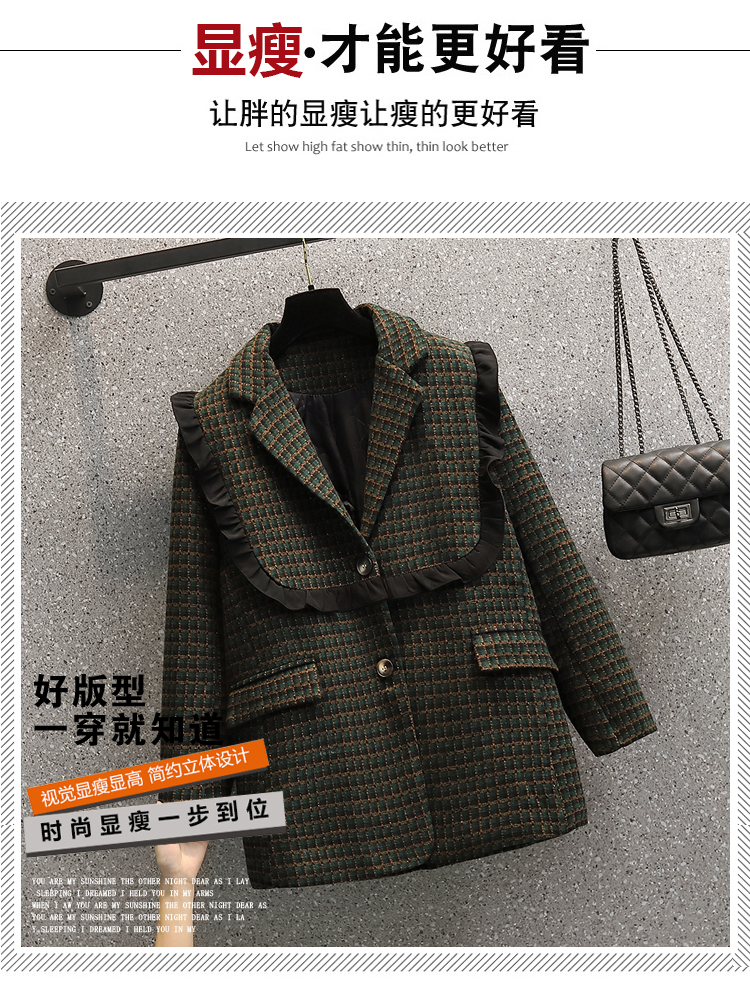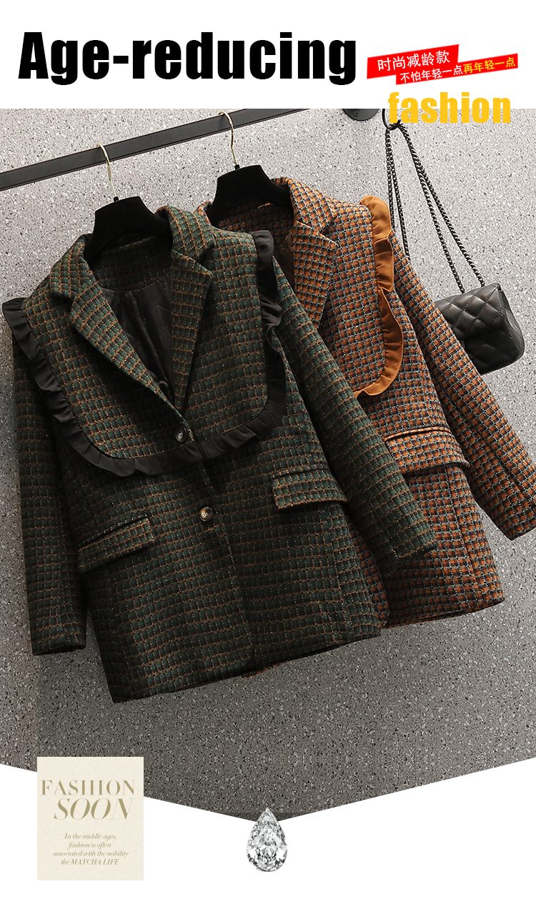 RS49144#秋冬新洋气减龄毛呢格子大码加棉加厚西装毛呢外套
