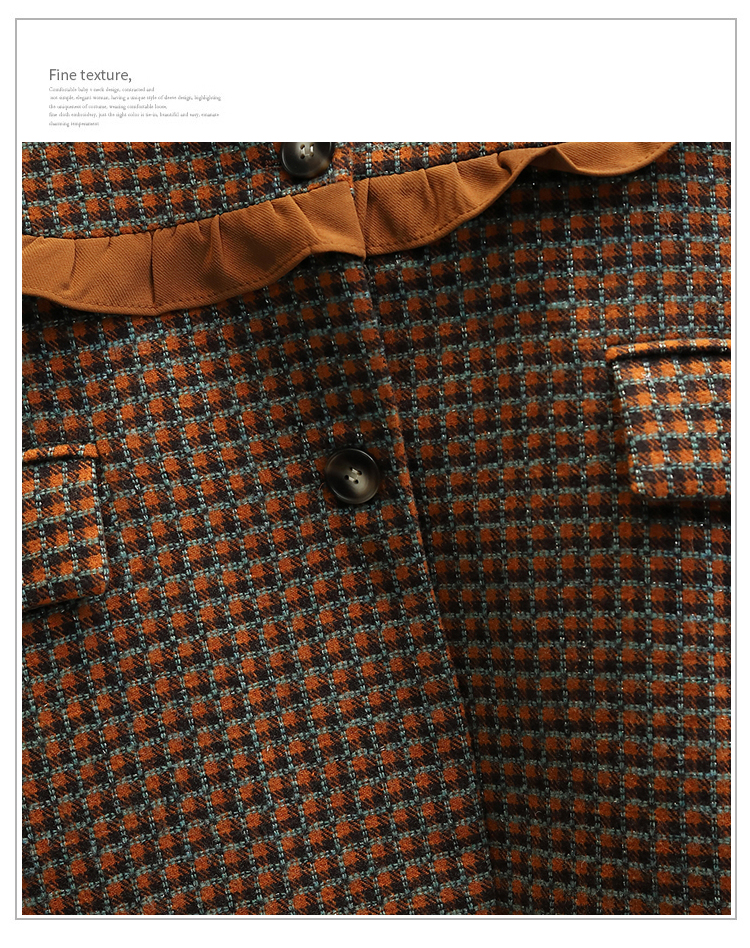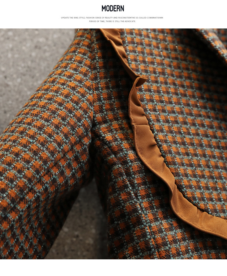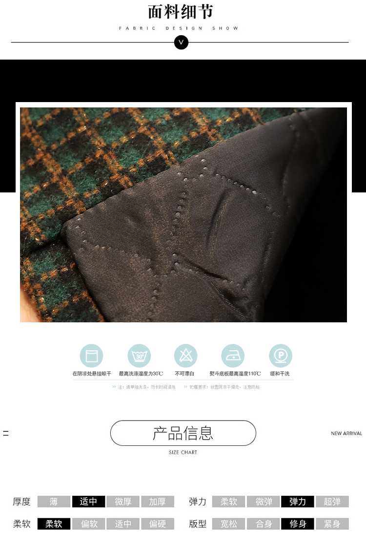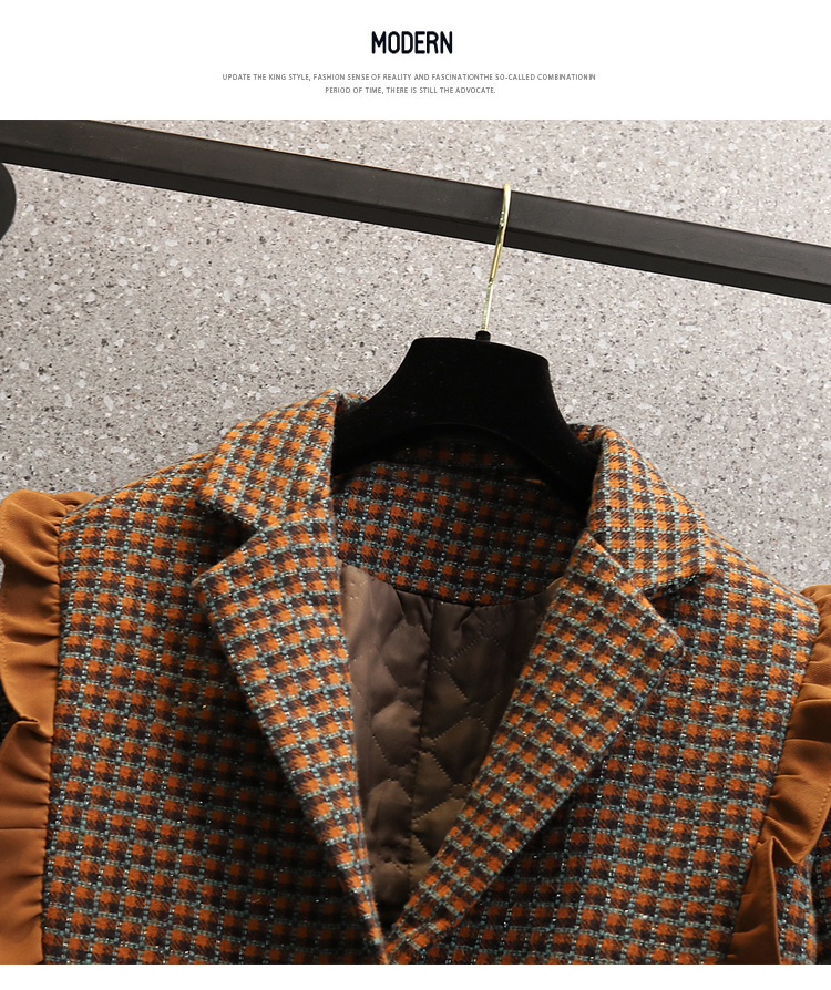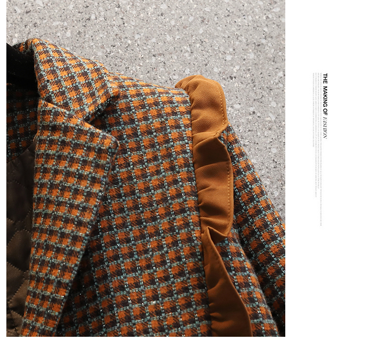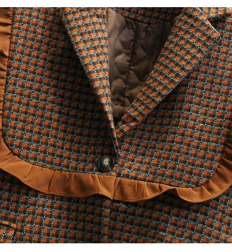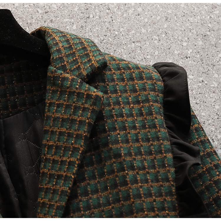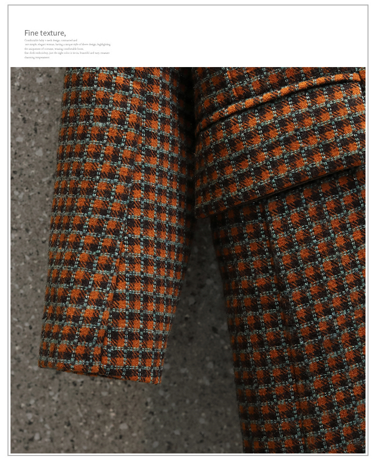 RS49144#秋冬新洋气减龄毛呢格子大码加棉加厚西装毛呢外套