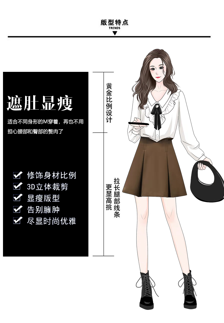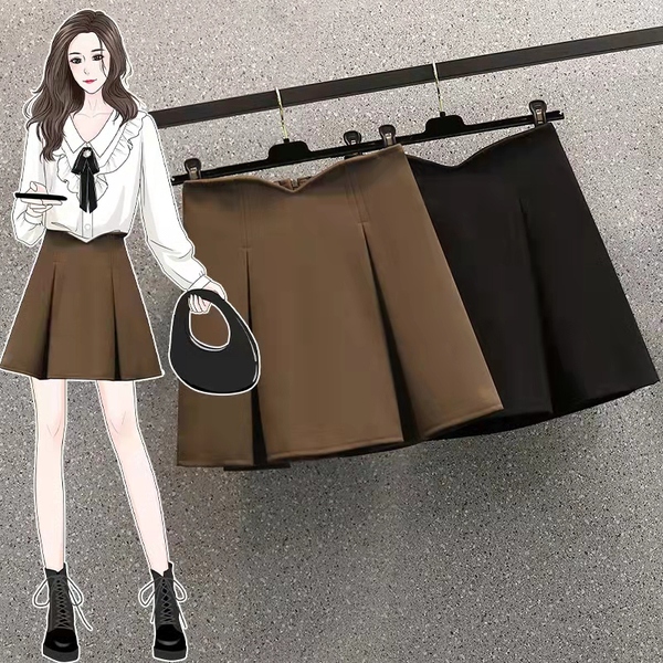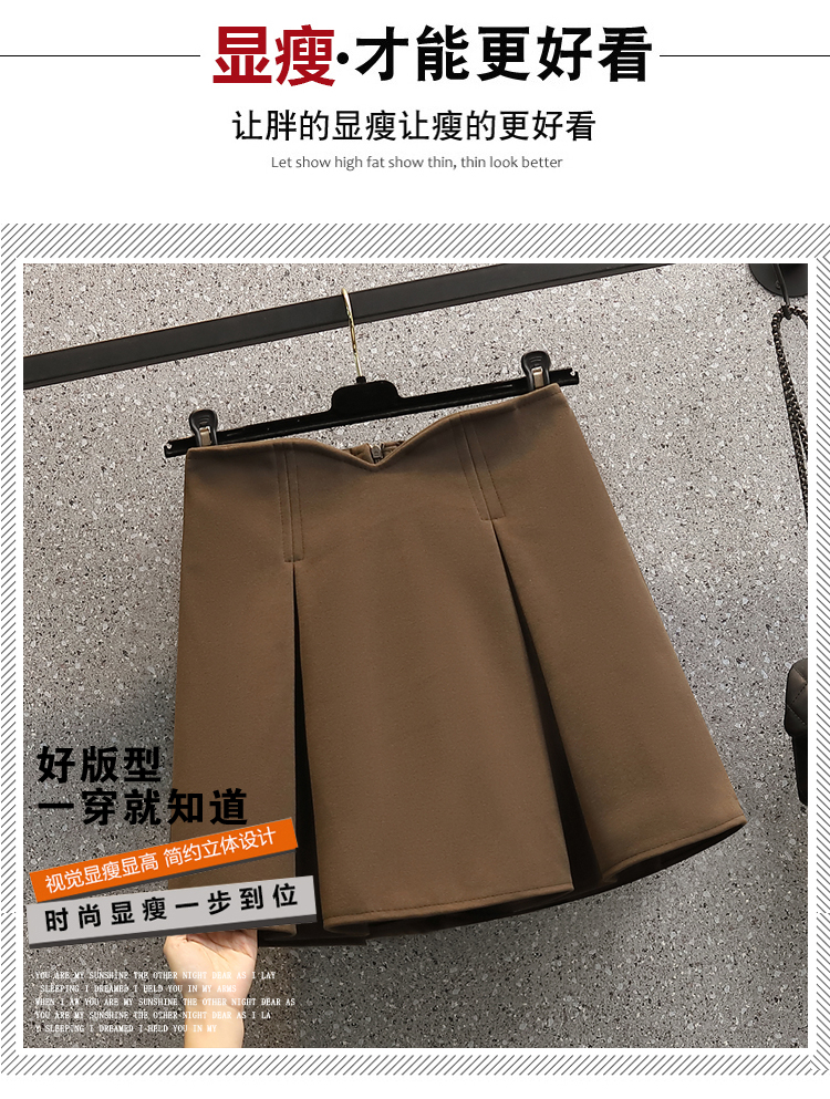 RS49147#秋冬新款胖MM收腰显瘦鱼骨小蛮腰毛呢半身裙A字裙