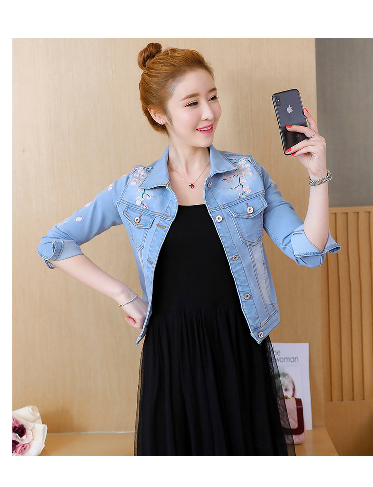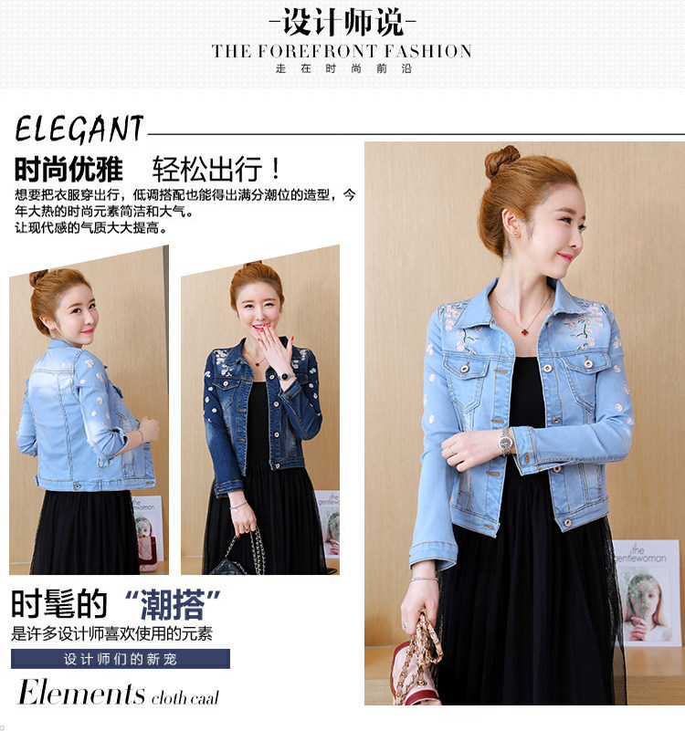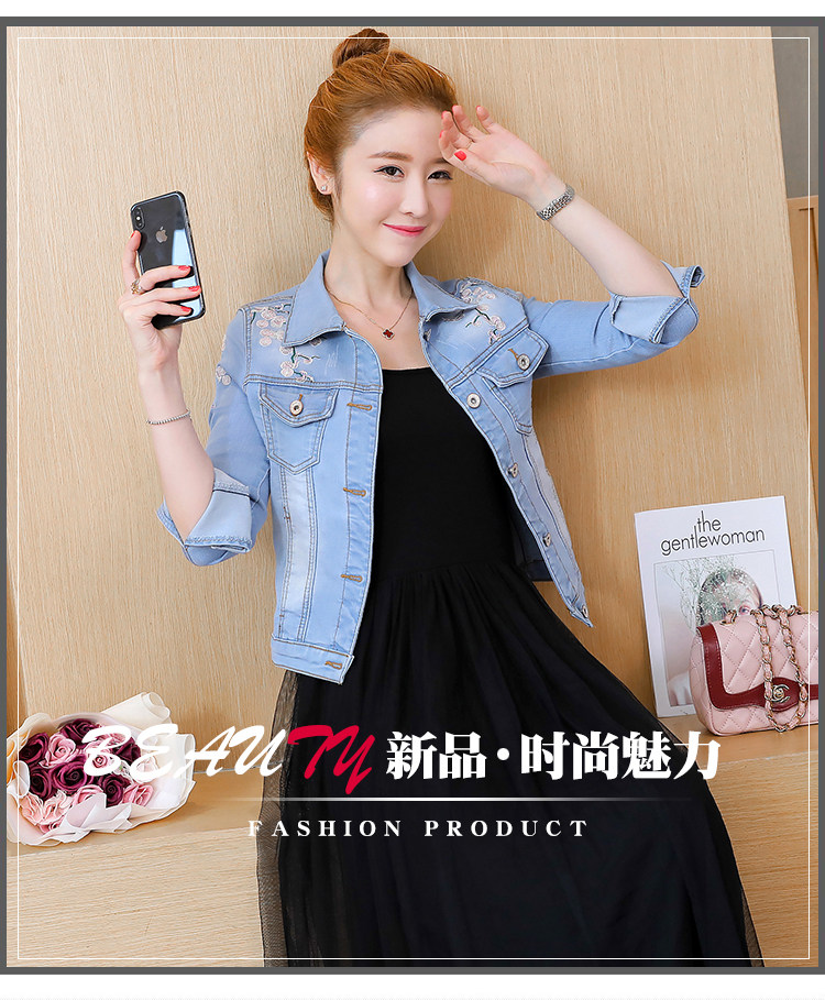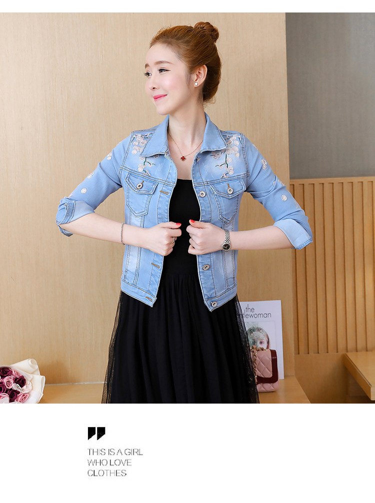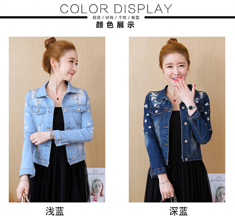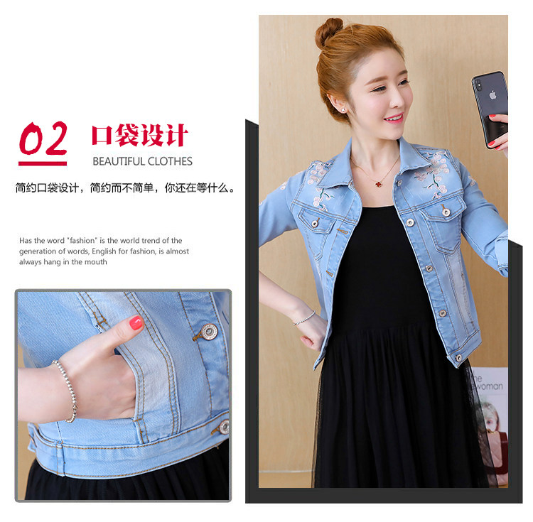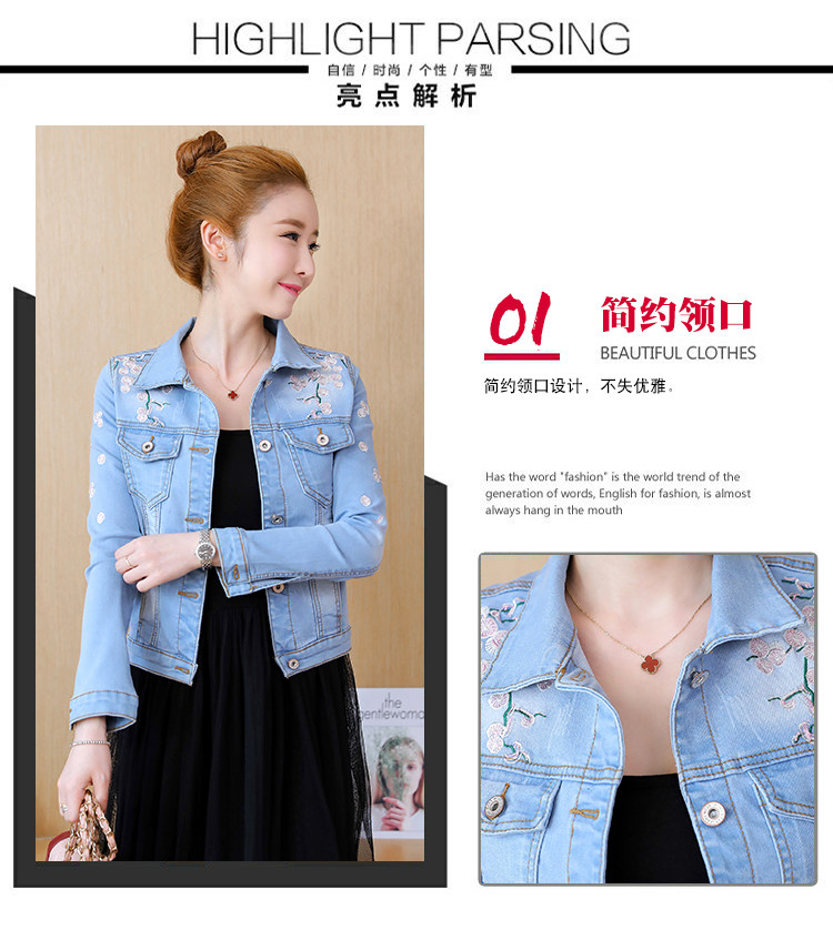 RS49169#春秋新款韩版花朵刺绣百搭牛仔外套女短款长袖上衣