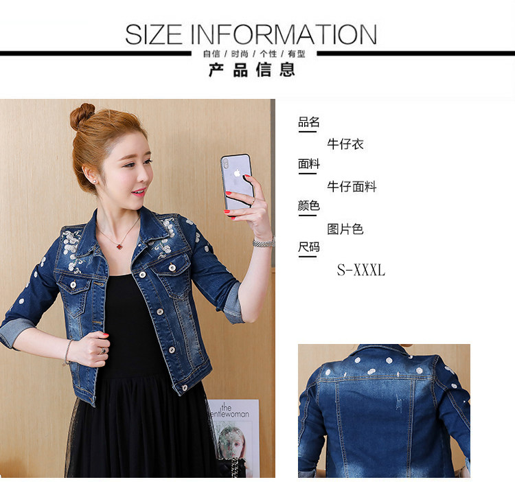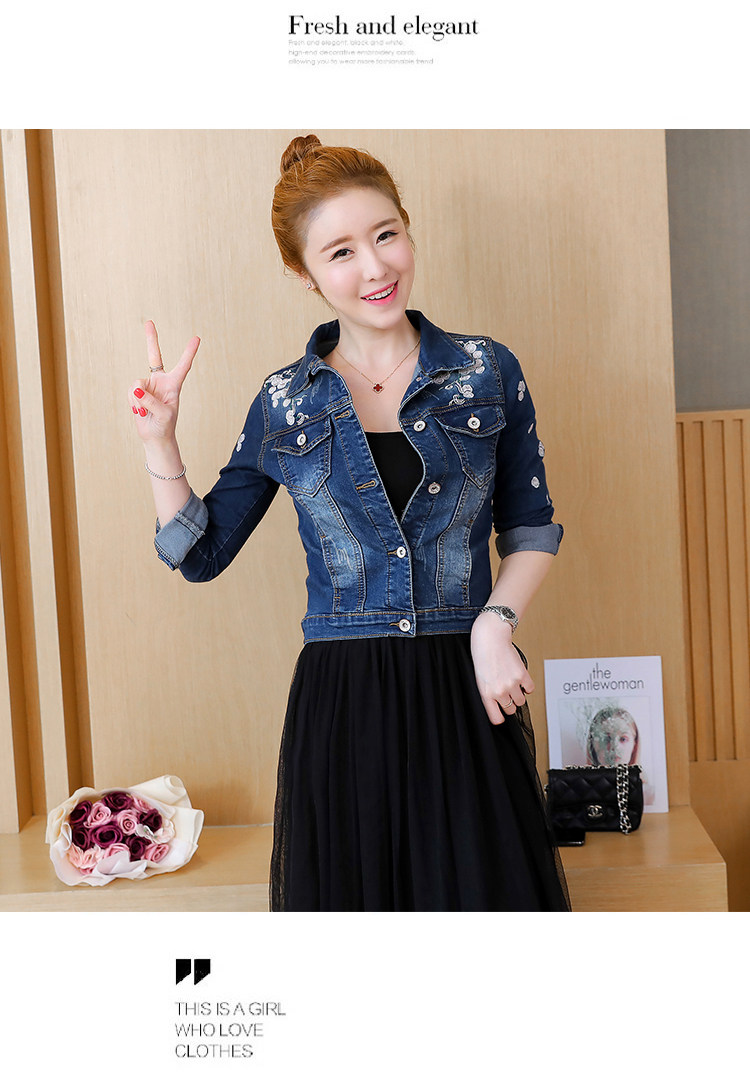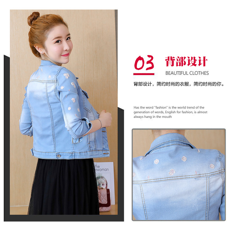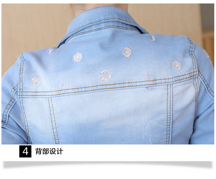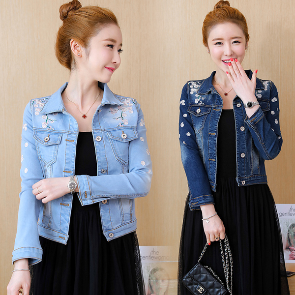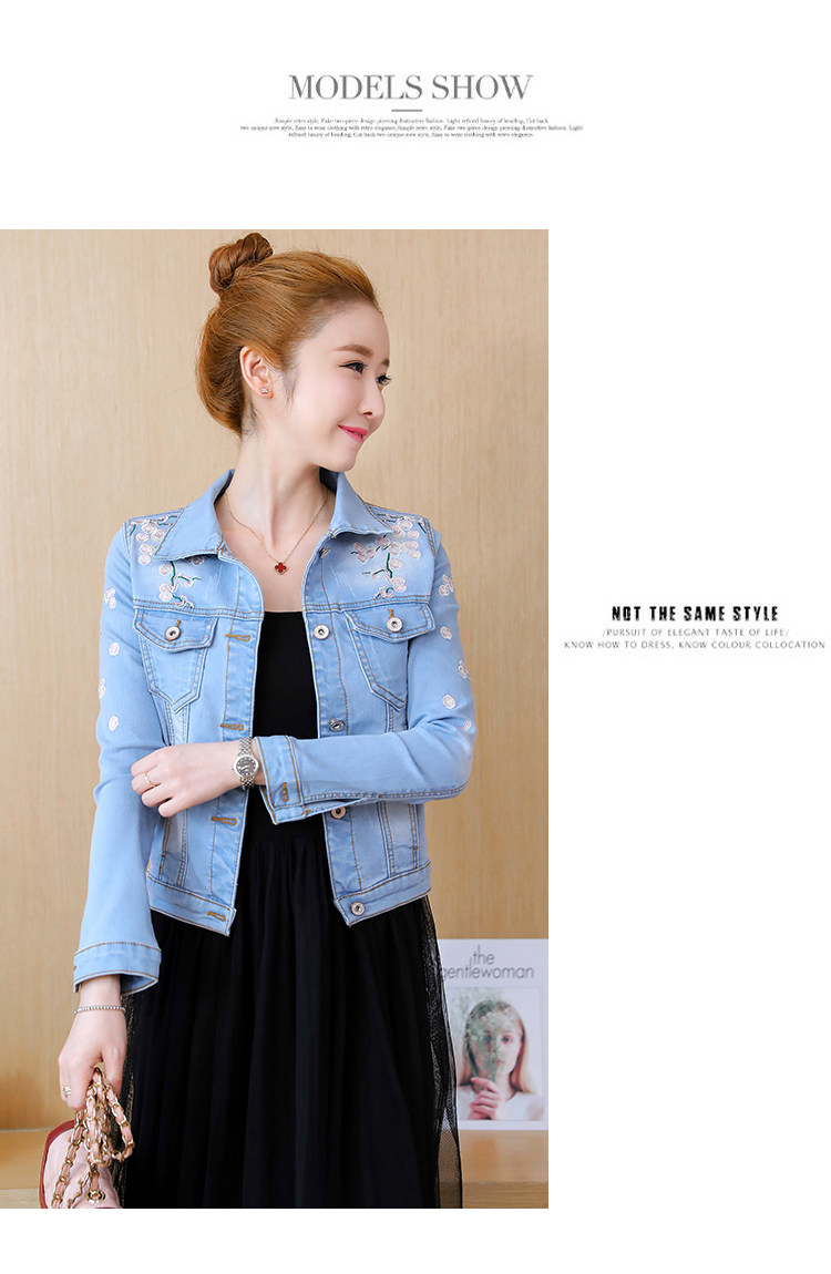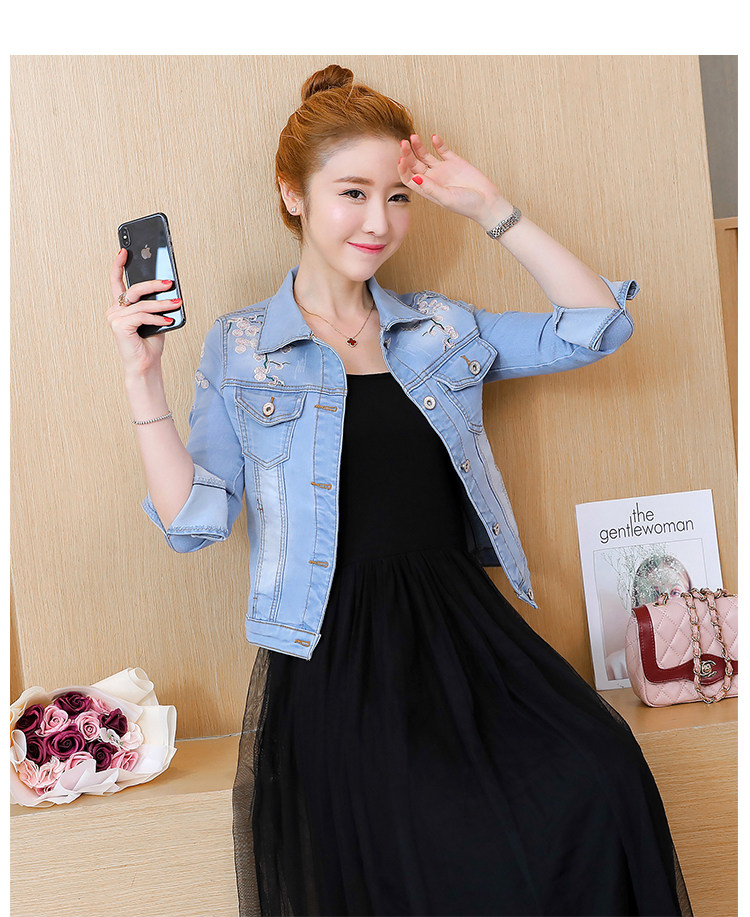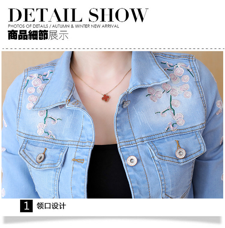 RS49169#春秋新款韩版花朵刺绣百搭牛仔外套女短款长袖上衣