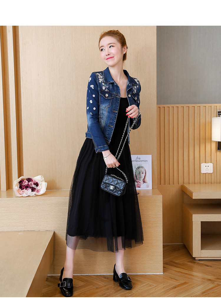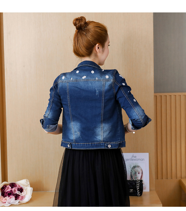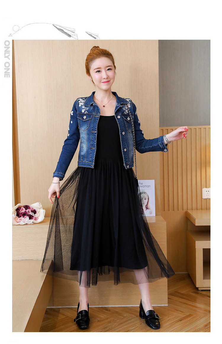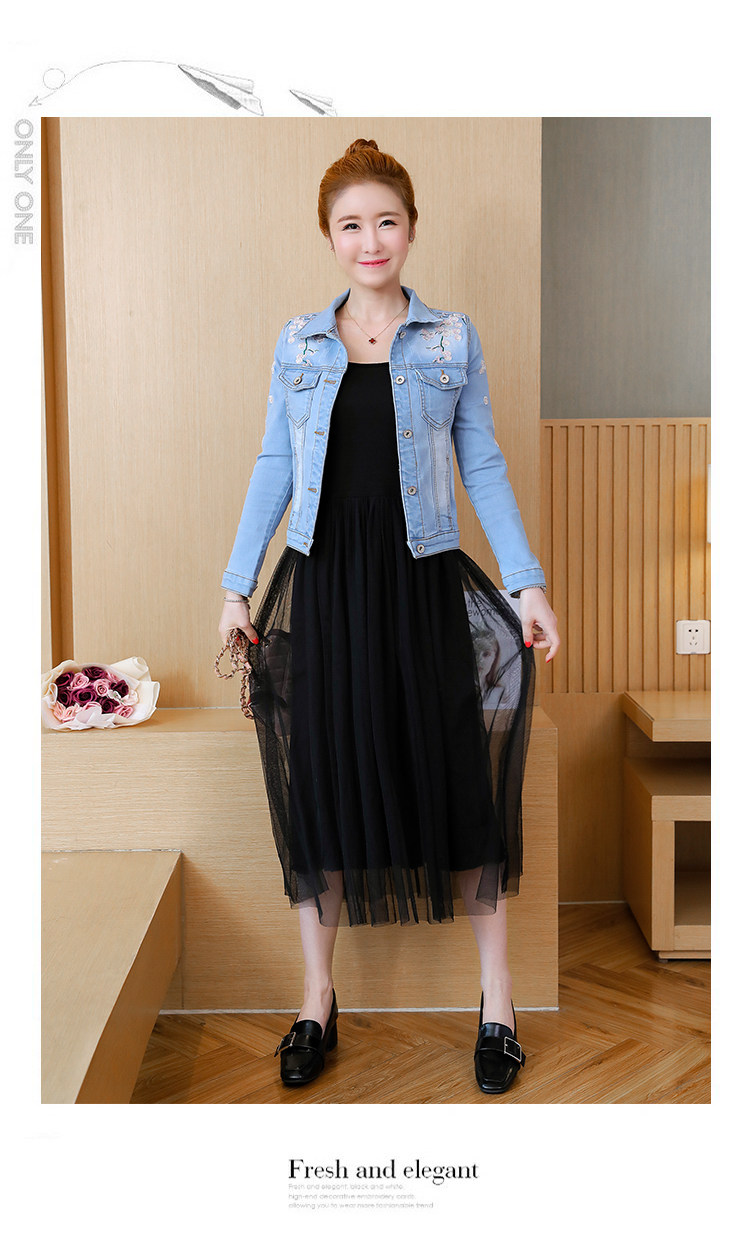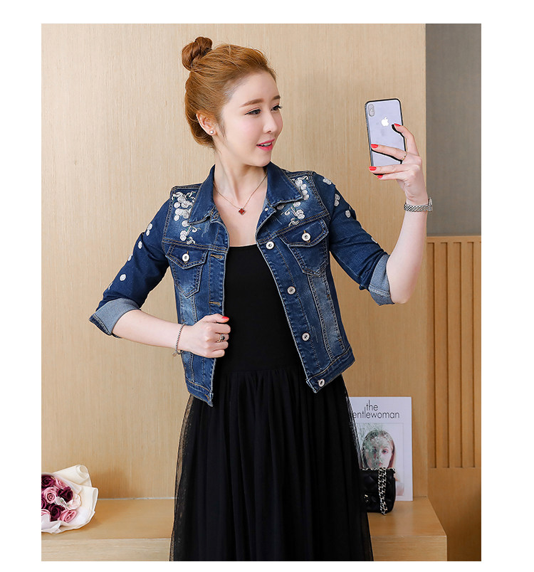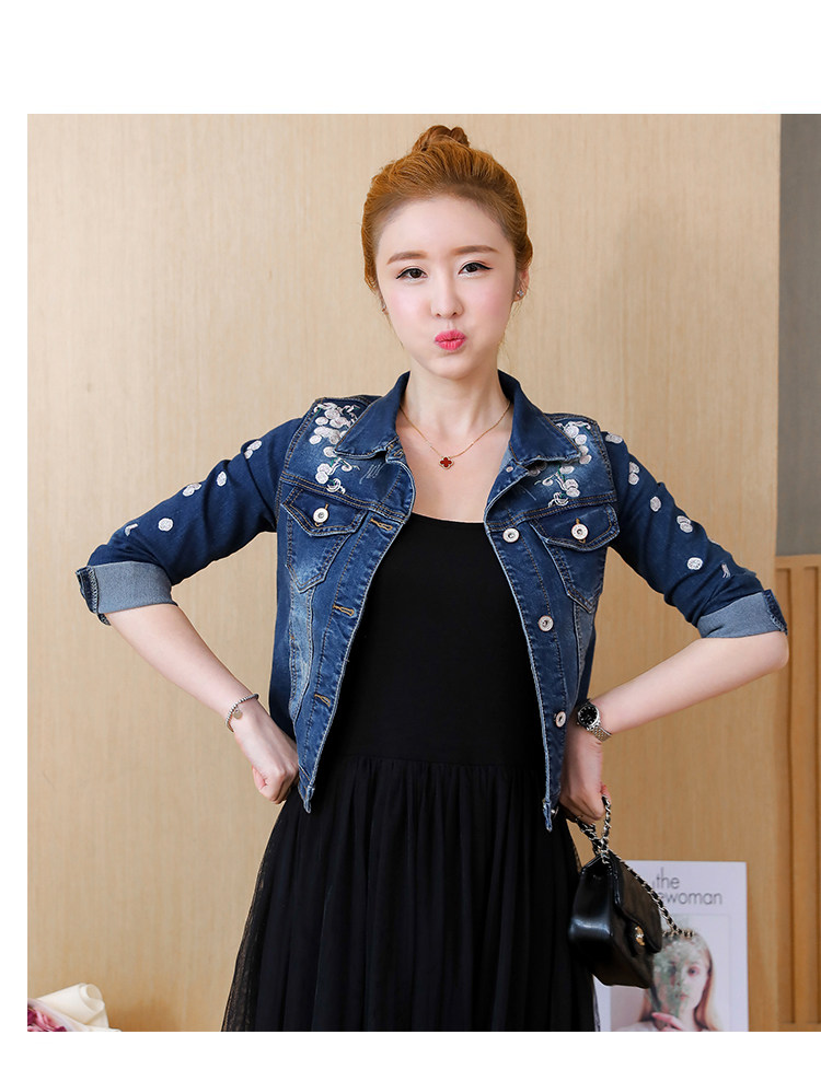 RS49169#春秋新款韩版花朵刺绣百搭牛仔外套女短款长袖上衣