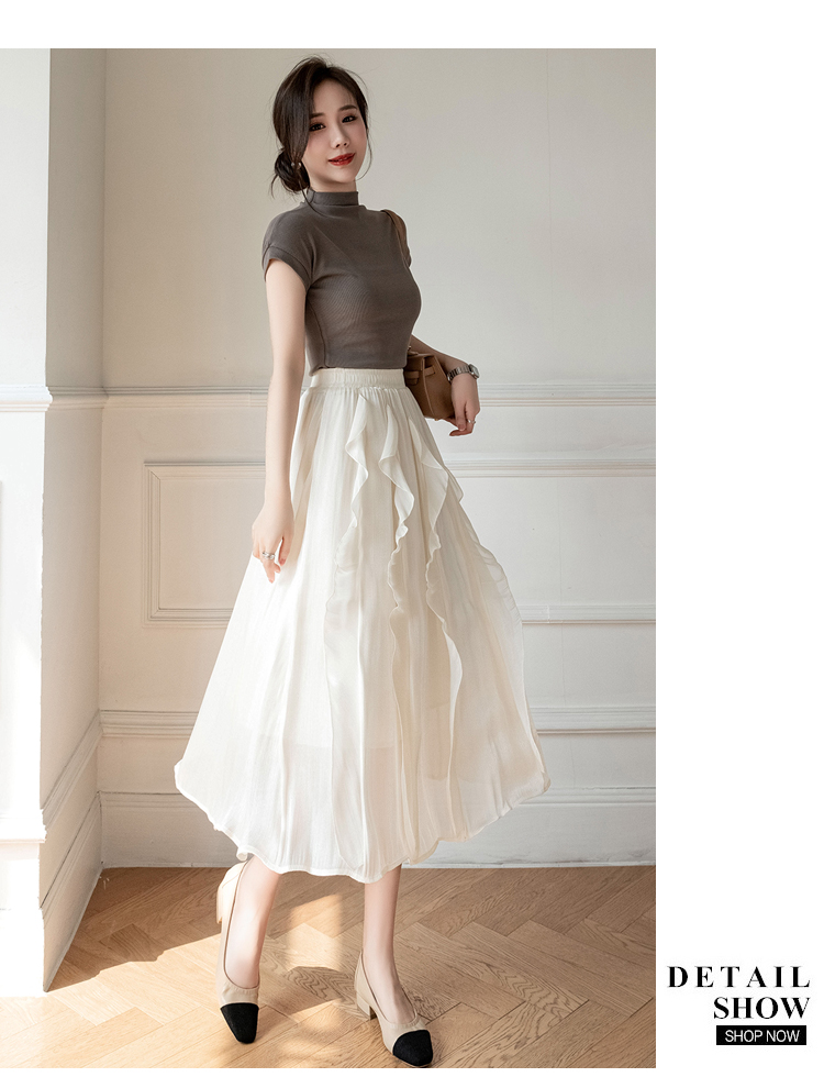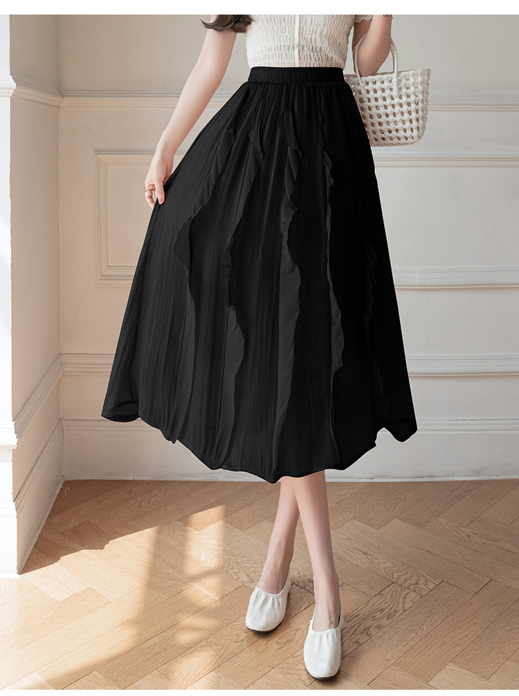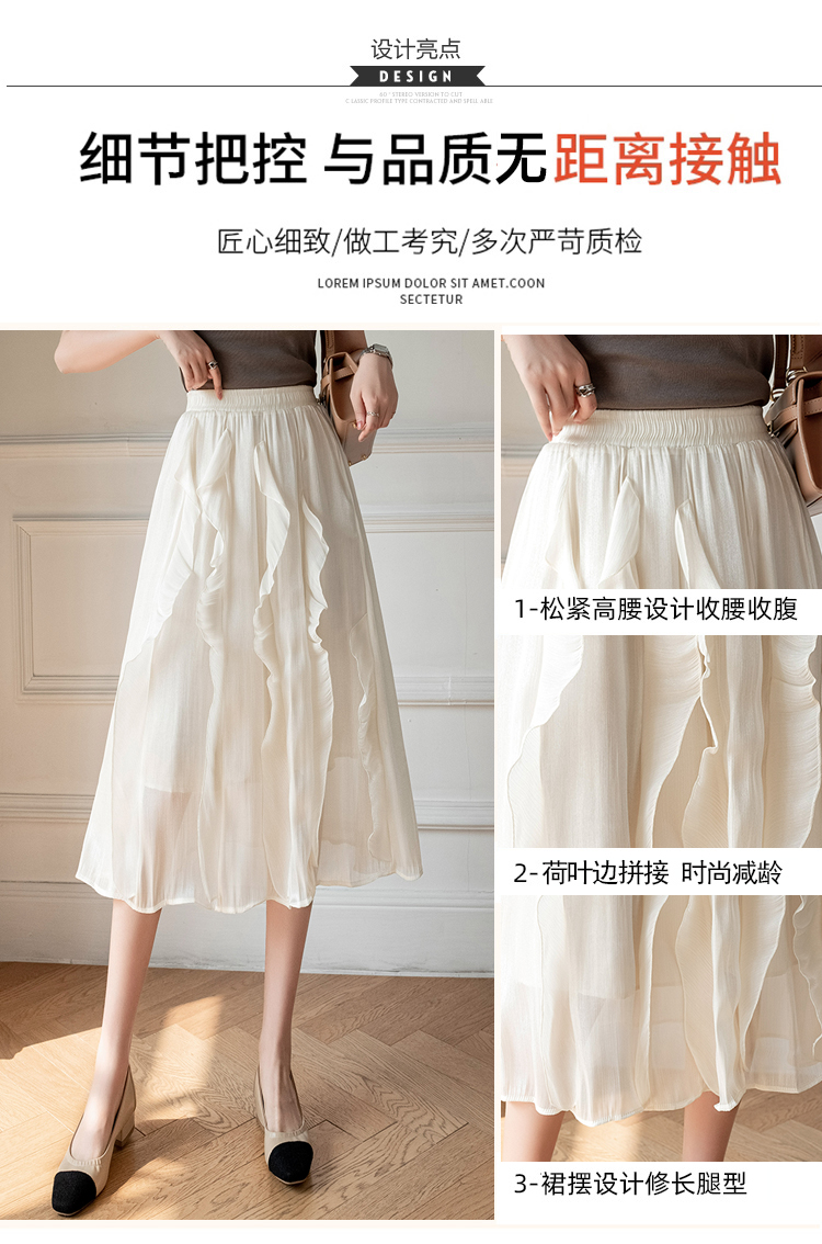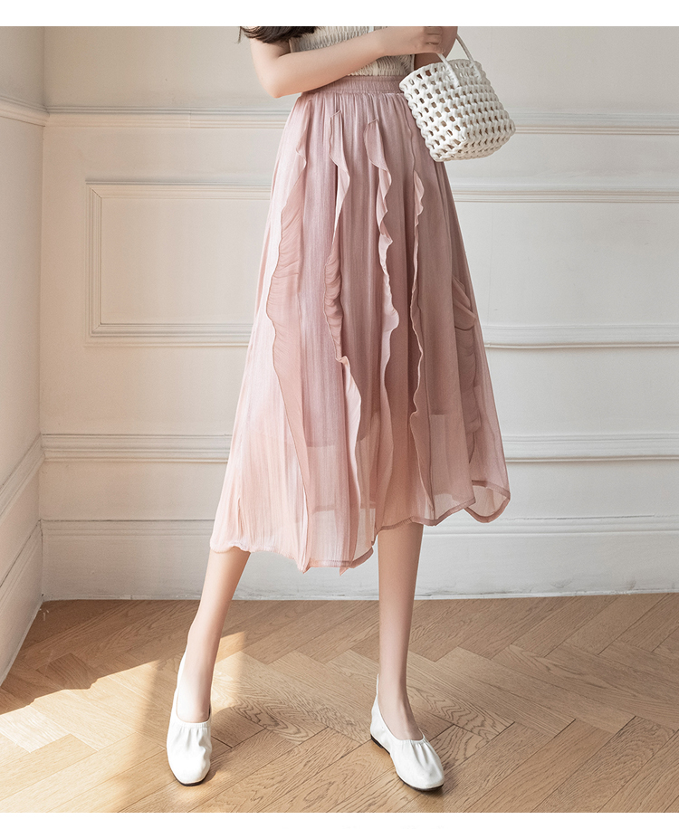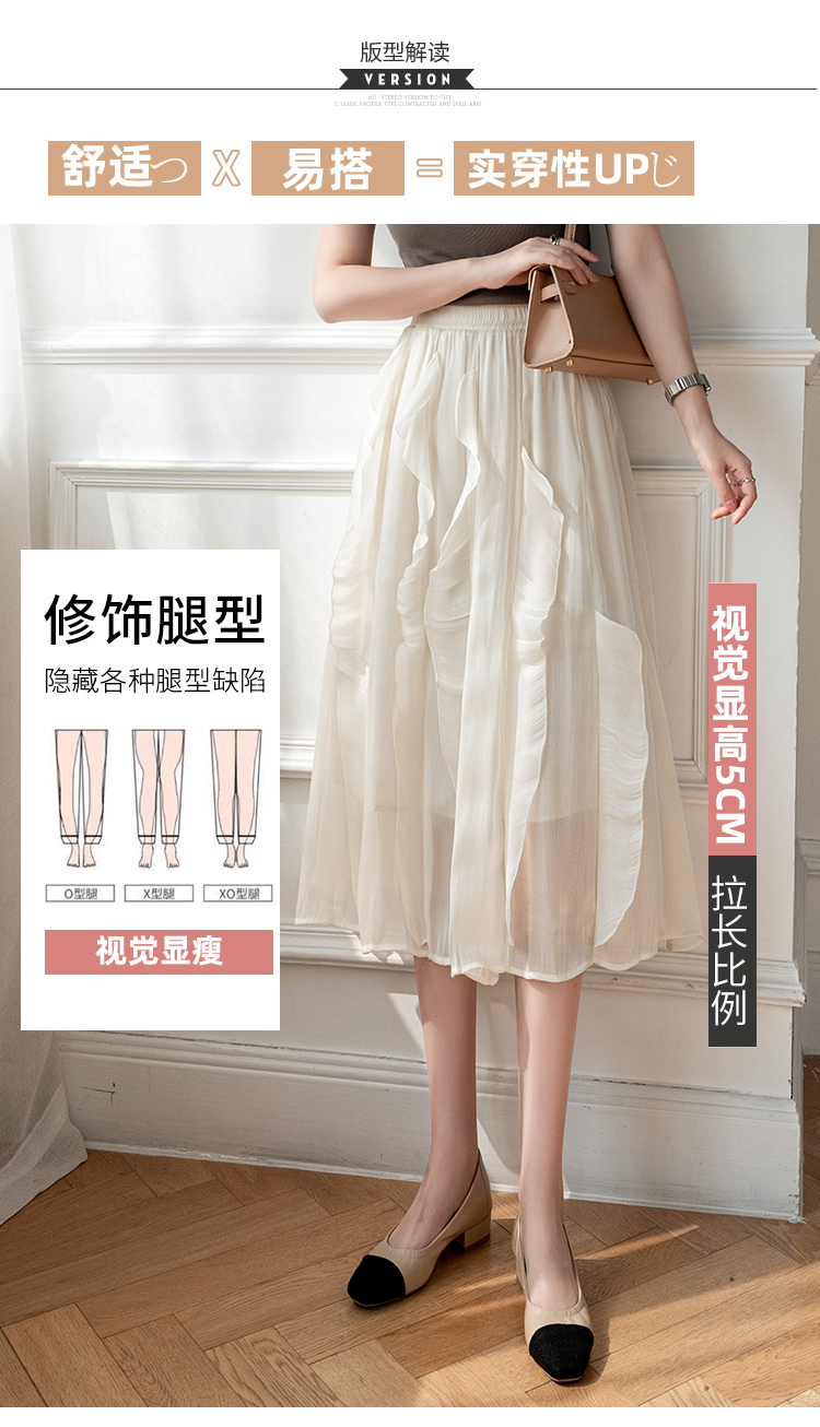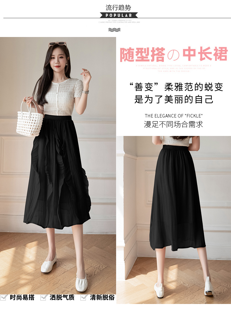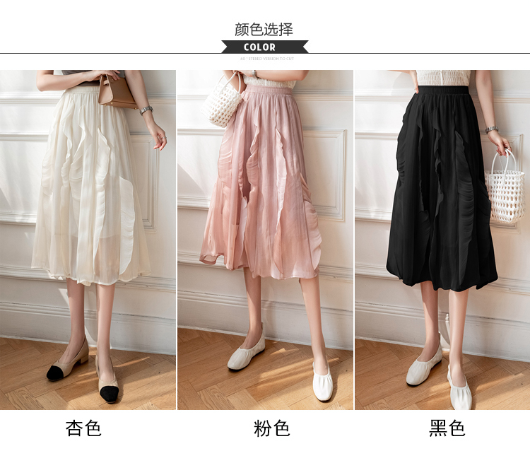 RM5299#光泽感亮丝网纱不规则荷叶边半身裙超仙层次感木耳边飘逸a字长裙
