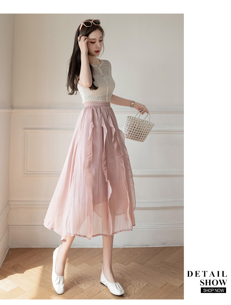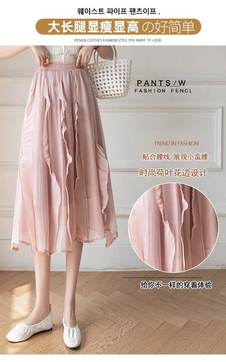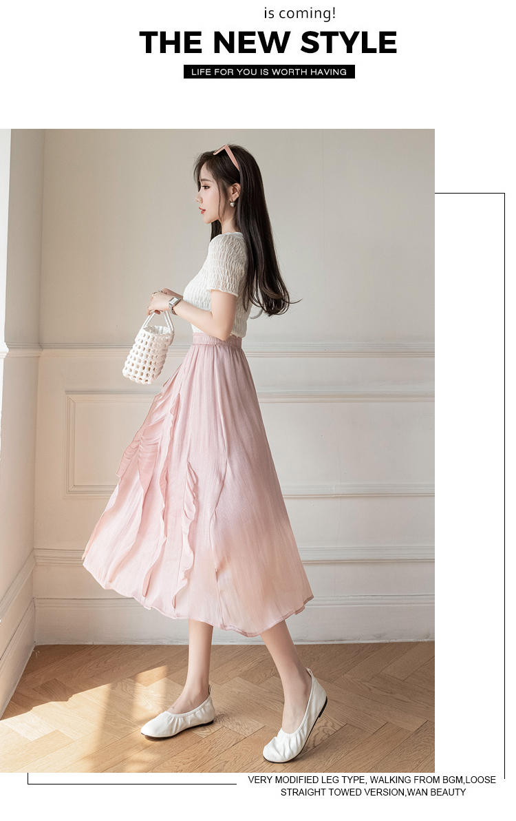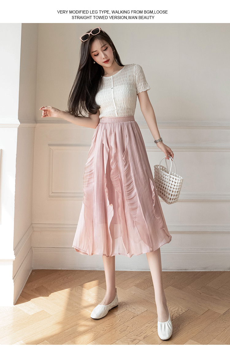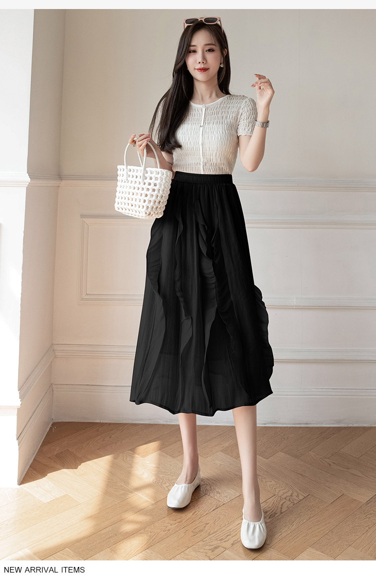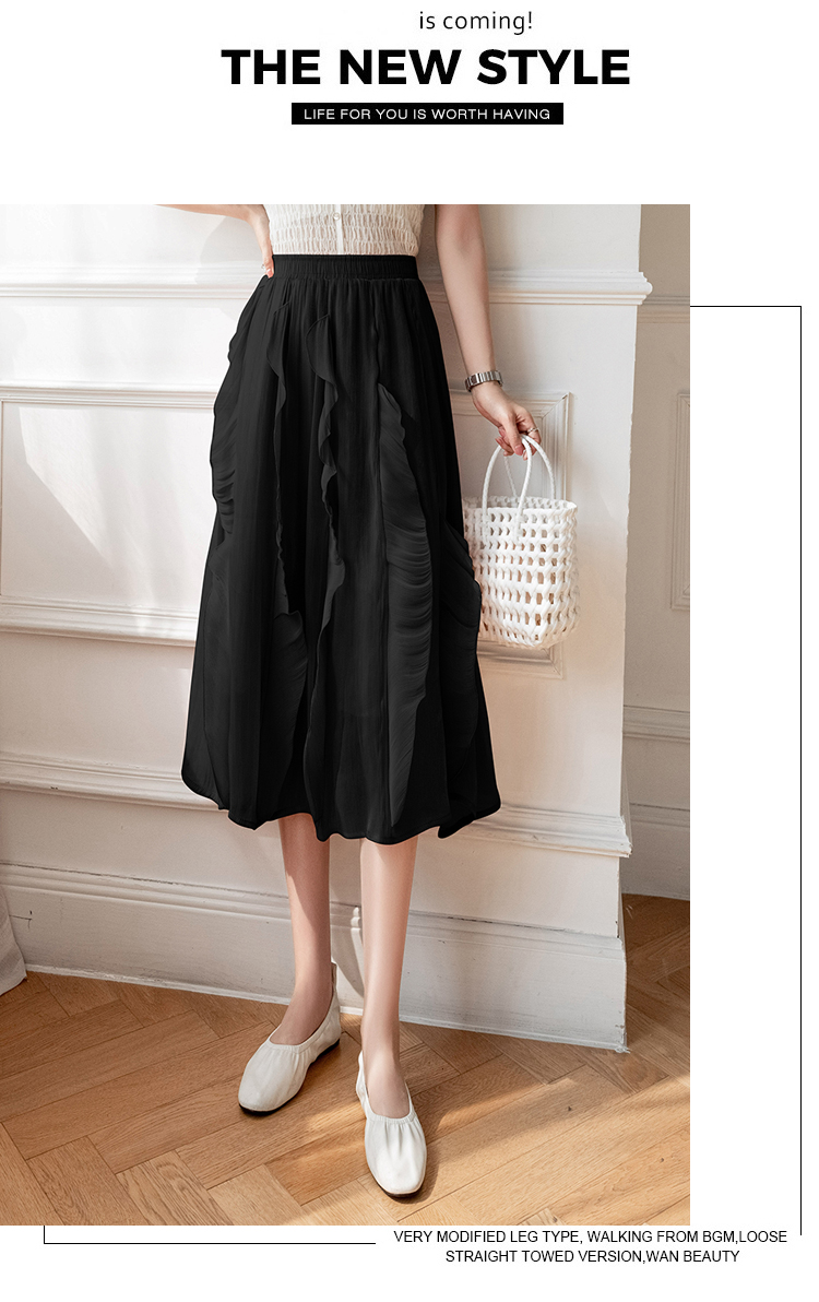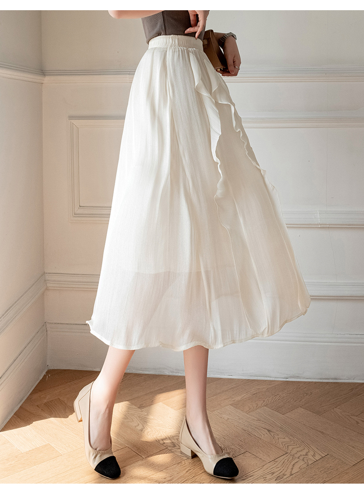 RM5299#光泽感亮丝网纱不规则荷叶边半身裙超仙层次感木耳边飘逸a字长裙